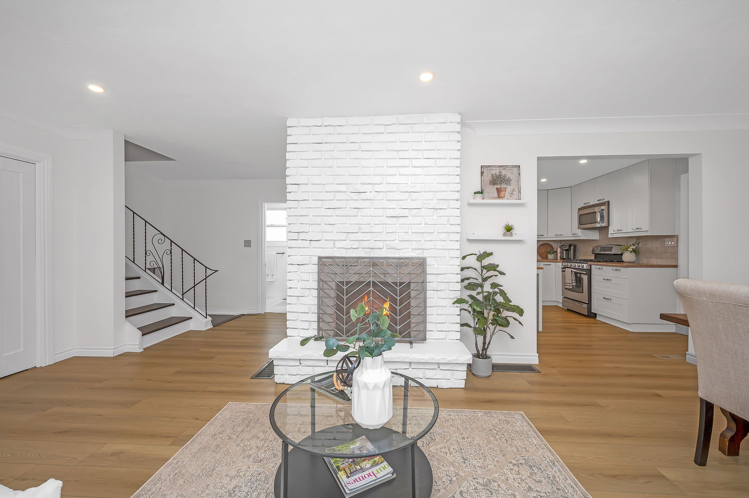 Welcome to 15 harvest lane, a beautifully updated 4-level side split in brantford's sought-after greenbrier neighbourhood. Set on a quiet, family-friendly street where kids play and neighbours connect, this home offers the kind of lifestyle buyers are searching for - walkable, welcoming, and move-in ready. With 3+1 bedrooms, 2 fully renovated bathrooms, and 3 living areas, the layout is both functional and flexible for growing families. From the moment you arrive, the stone walkway and covered front porch set the tone - polished, inviting, and easy to love. Inside, the main level feels bright and refreshed, featuring a spacious living room with a statement floor-to-ceiling wood-burning fireplace, an open dining area, and a crisp white kitchen complete with stainless steel appliances, a central island, and a walk-out to the backyard. The fully fenced yard and two-tier deck are made for spring and summer - morning coffee, weekend bbqs, and long evenings outside while kids play. Upstairs, you'll find three generous bedrooms with hardwood flooring and excellent closet space. The lower level adds even more versatility with a cozy family room and bonus flex space ideal for a playroom, home office, or teen hangout. The fully finished basement offers a stylish rec room, a spacious fourth bedroom, a modern full bathroom, and a bright, organized laundry area. Updates include new main floor flooring, california shutters, and a newer furnace, heat pump, and a/c (2024). Close to parks, schools, shopping, and quick 403 access - this is a home that delivers on lifestyle, location, and value.