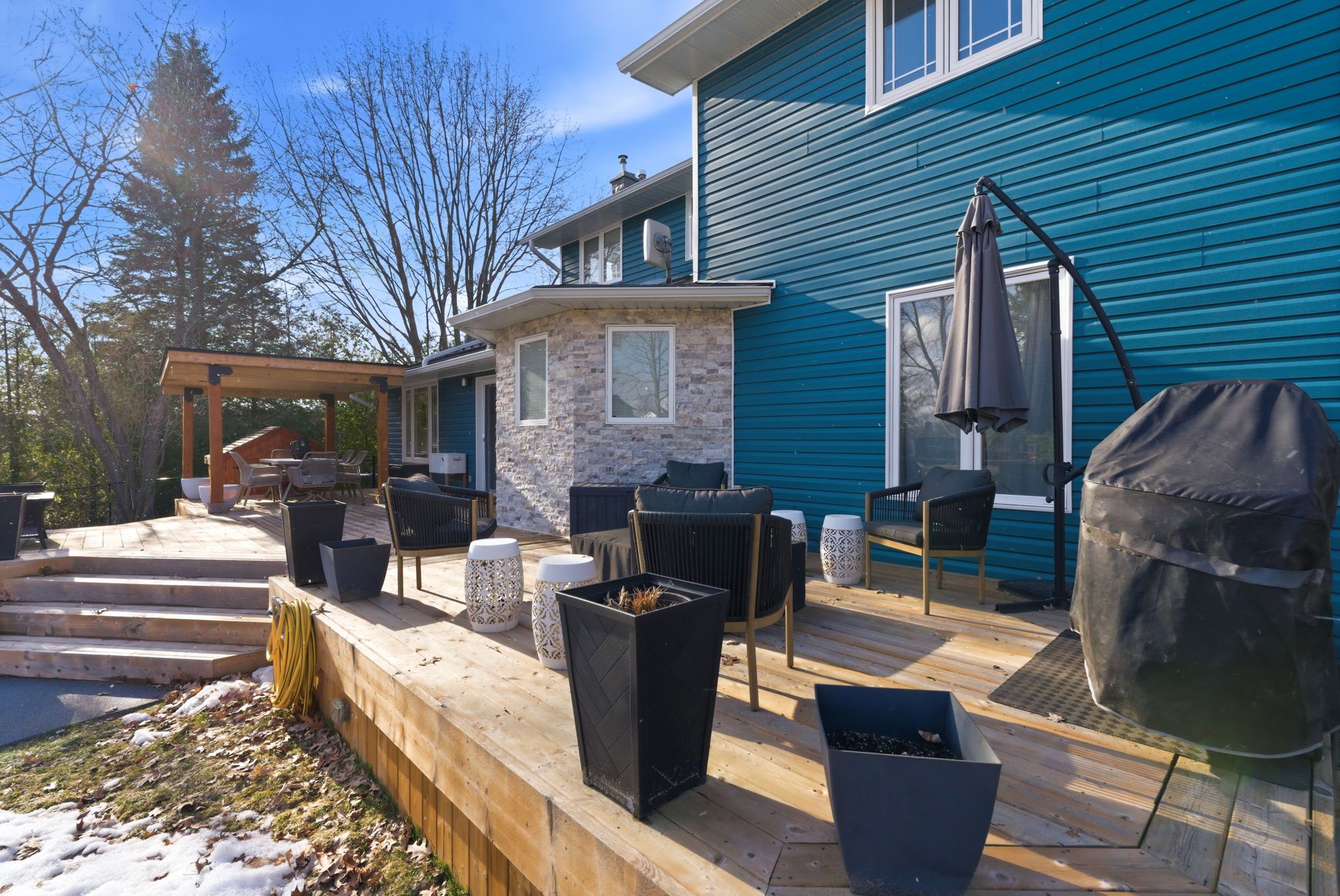 Nestled in the peaceful and picturesque hamlet of solina, this beautifully finished 5-bedroom, 4-bathroom home offers the perfect blend of luxury, comfort, and functionality. Set on just under an acre of meticulously landscaped property, this residence is ideal for families seeking space, style, and serenity. Top to bottom, every detail of this home has been thoughtfully designed and finished to perfection. The flexible floor plan offers a choice between a main-level or upper-level primary bedroom, each featuring a private ensuite bath-perfect for accommodating multi-generational living or personal preference . The heart of the home features spacious living and dining areas, a modern kitchen with premium finishes, and large windows that fill the space with natural light. The lower level is fully finished, providing additional living space ideal for recreation and comfort . Step outside to a true backyard oasis. The expansive yard features a large in-ground pool surrounded by kid-safe rubaroc surfacing, ensuring both safety and style. A generous deck with a covered sitting area, potlights, a gas bbq hookup, and a natural gas fire table creates the ultimate setting for outdoor entertaining and relaxation. This exceptional property combines rural tranquility with modern amenities, offering a rare opportunity to enjoy country living just minutes from city conveniences. A perfect retreat for those who value space, quality, and outdoor living at its finest.