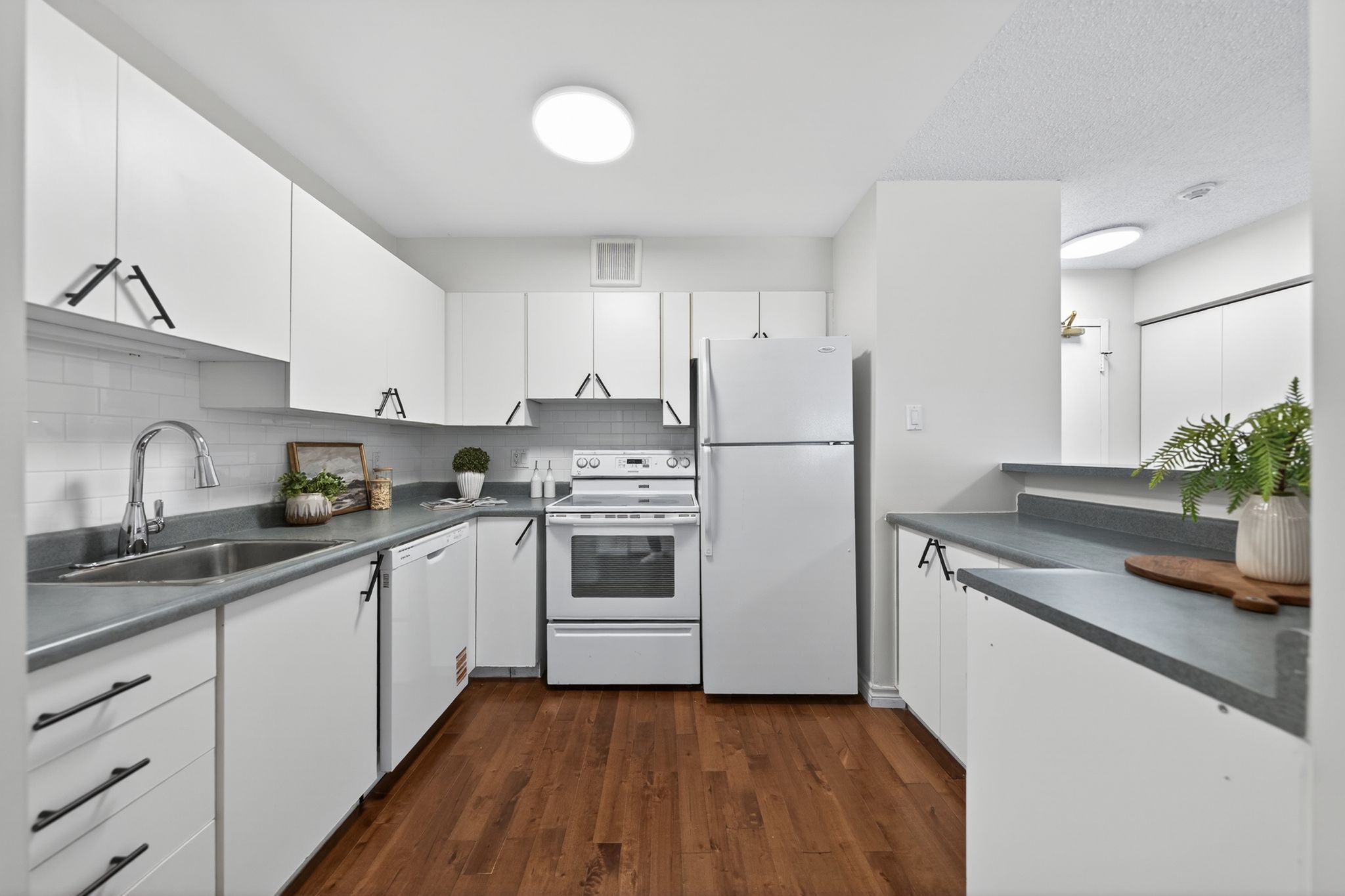 **** this unit comes with a seller credit of $20,000 **** covering the buyer's share of recent building improvements ,exceptional value with added peace of mind-. Enjoy the benefits of a well-maintained and upgraded building without the financial burden, making this an outstanding opportunity for both end-users and investors. Move in knowing the major work is already completed and paid for. Stylish and inviting top-floor corner unit condo in one of kitchener's most sought-after neighbourhoods near chicopee. Located on the back side of the building and away from the noisy main street. 2 bedroom, 2 updated bathroom. Thoughtfully designed living space, this home combines comfort, convenience, and modern style in perfect harmony. Step inside and be greeted by a bright open-concept layout where the living and dining areas flow effortlessly together-ideal for relaxing evenings or entertaining guests. The private balcony invites you to unwind and enjoy the fresh air and peaceful surroundings. Everything you need for effortless everyday living. The spacious bedroom provides a calm retreat, while the modern bathroom. This well-maintained building offers secure entry, an assigned parking space (#54), with quick access to highway 8, the expressway, and all the amenities of kitchener-shopping, restaurants, trails, and green spaces-you'll love how easy it is to stay connected while still enjoying a sense of tranquility. ***** major exterior upgrades :new siding, windows, balcony, and balcony door to be complete by june 2026 *****