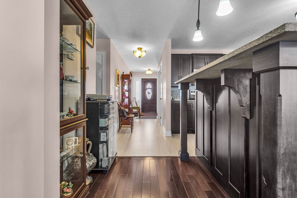 Welcome home to effortless bungalow living at its finest. This beautifully finished 2+1 bedroom home is designed for comfort, style, and everyday functionality-perfect for main-floor living with thoughtful upgrades throughout. Step inside to a gourmet dark maple kitchen featuring granite countertops, a large island, walk-in pantry, and glass-tiled backsplash, all flowing seamlessly over stunning asian walnut hardwood floors. The open layout is ideal for both entertaining and daily living, complete with main floor laundry and access to a bright new 3-season sunroom-the perfect spot to relax and unwind. The spacious primary suite is a true retreat, offering a huge walk-in closet and a luxurious en-suite bath, a corner triangular soaker tub, and a custom walk-in tiled shower. Additional highlights include a full-size 1. 5 garage and quality finishes from top to bottom.