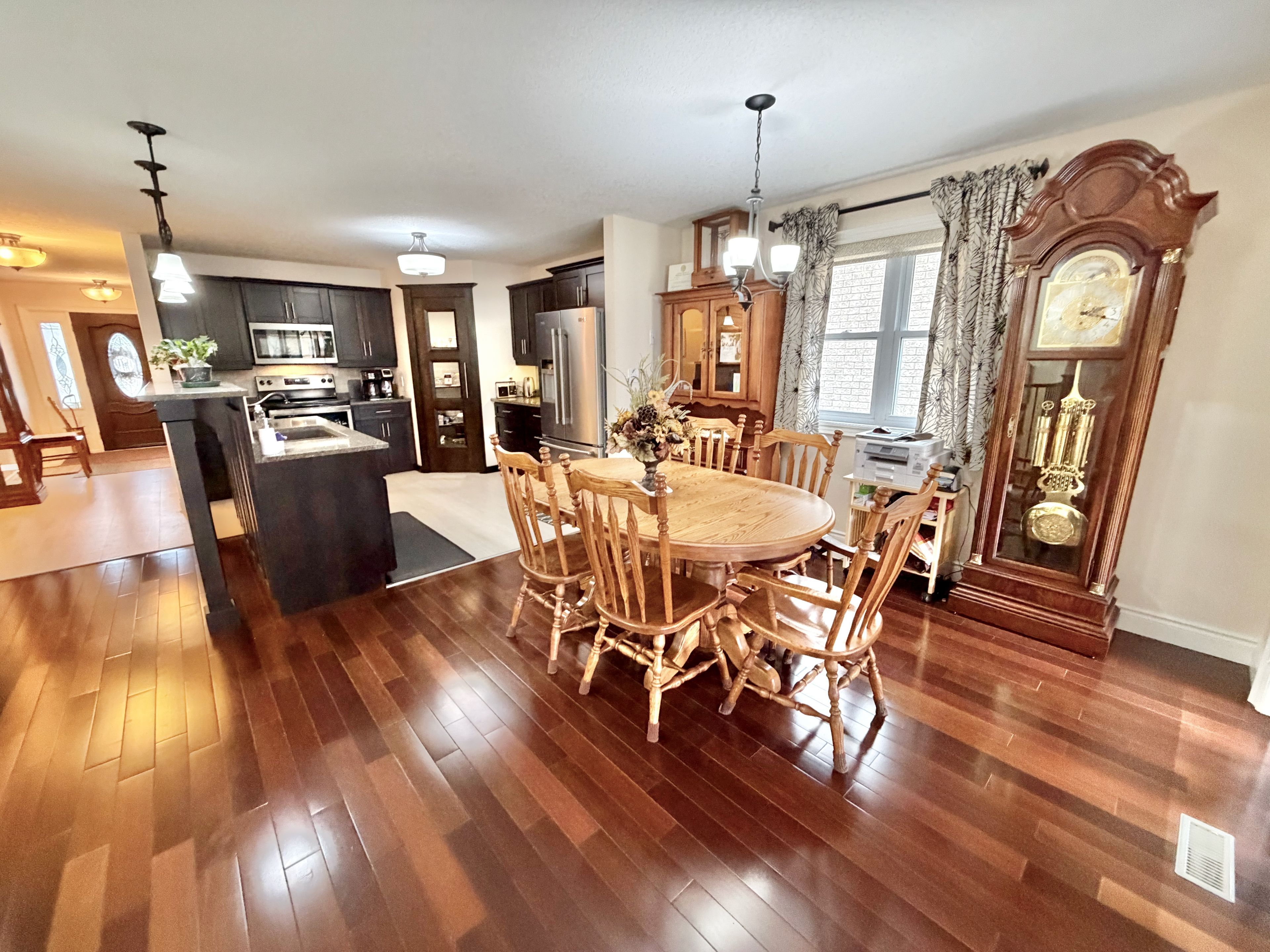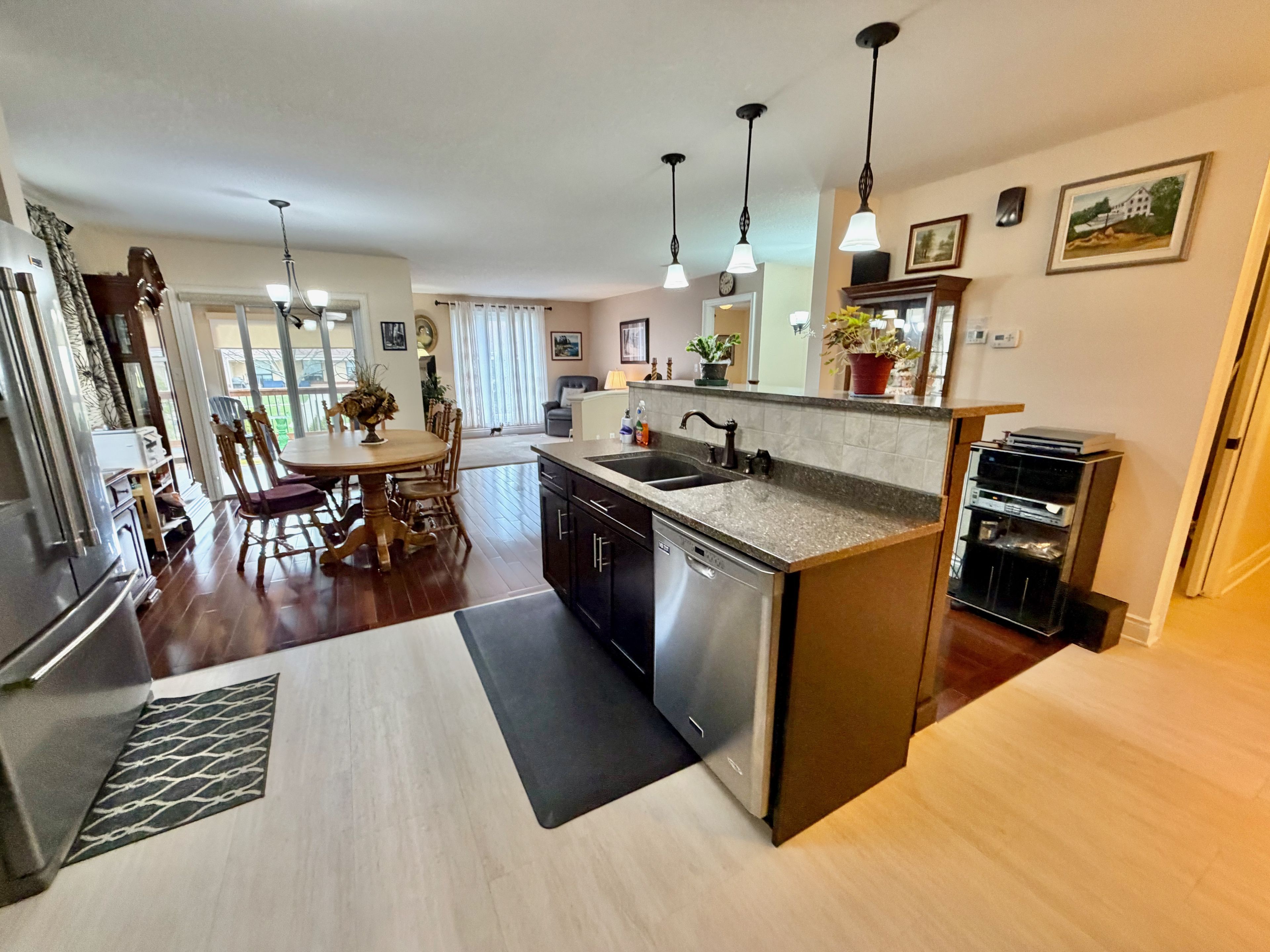 Pride of ownership shows here -this immaculate bungalow is situated in a desirable neighbourhood, boasting a one and a half car garage with auto door opener and new keyless entry on the side door, rubberized paved driveway over a concrete base, fibreglass roof shingles, a 12kw briggs & stratton standby generator (2023), and a 3-season sunroom (2025). As you enter through the elegant fibreglass front door, you will find a well-designed open concept layout featuring nine-foot ceilings, gleaming hardwood floors, and luxury plank flooring. The main level offers a generous sized kitchen with granite countertops, ceramic backsplash, otr microwave, breakfast bar/island and walk-in pantry, the dining area with sliding doors to the sunroom, the living room, and the primary bedroom with walk-in closet and large 4-pc ensuite featuring soaker tub and separate walk-in shower. A second bedroom, main 4-pc bathroom, and laundry room complete the main level. A beautiful open staircase leads you to the basement level which offers a spacious family room, a third bedroom, an office, a hobby/games room, a 2-pc bathroom, utility/storage room, and cold room. Water heater is owned (2021), jet pump back-up system in cold room, erv system (2025) put this one on your list - you must see to appreciate!