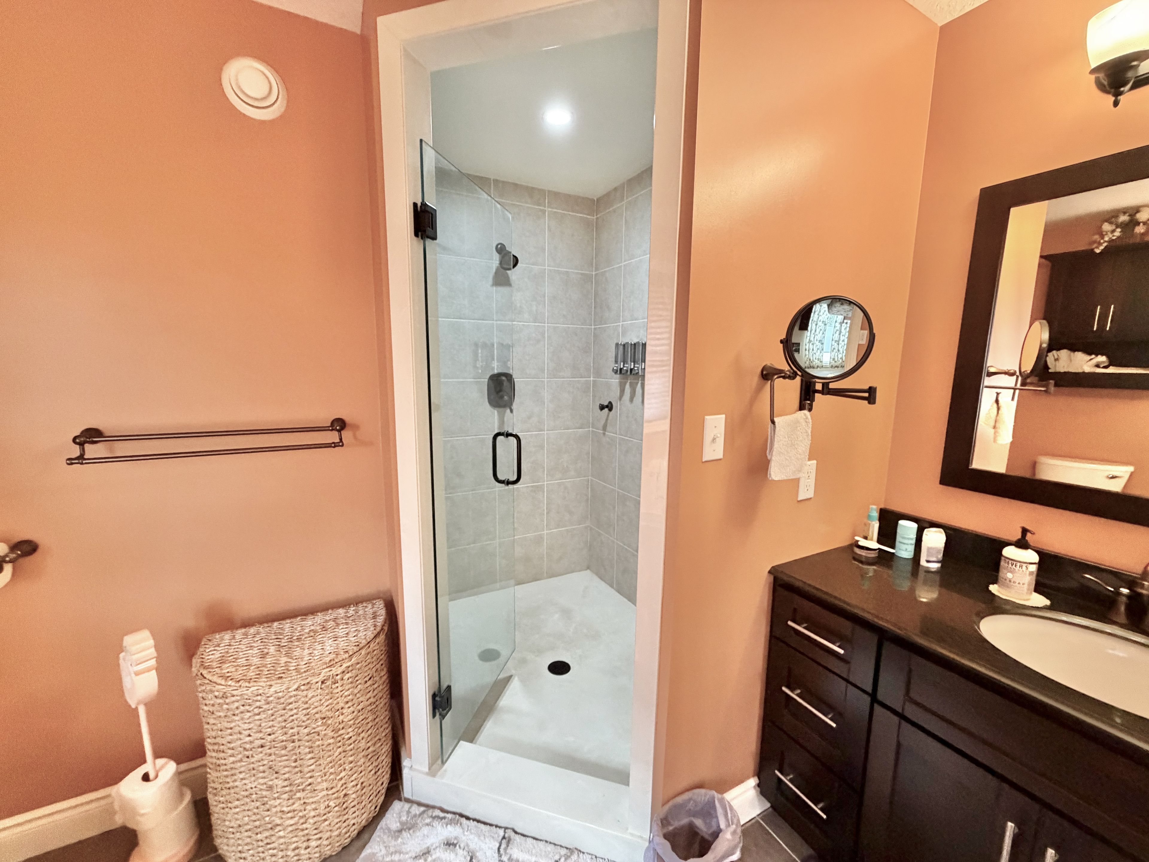 • Spacious kitchen with granite countertops and walk-in pantry.