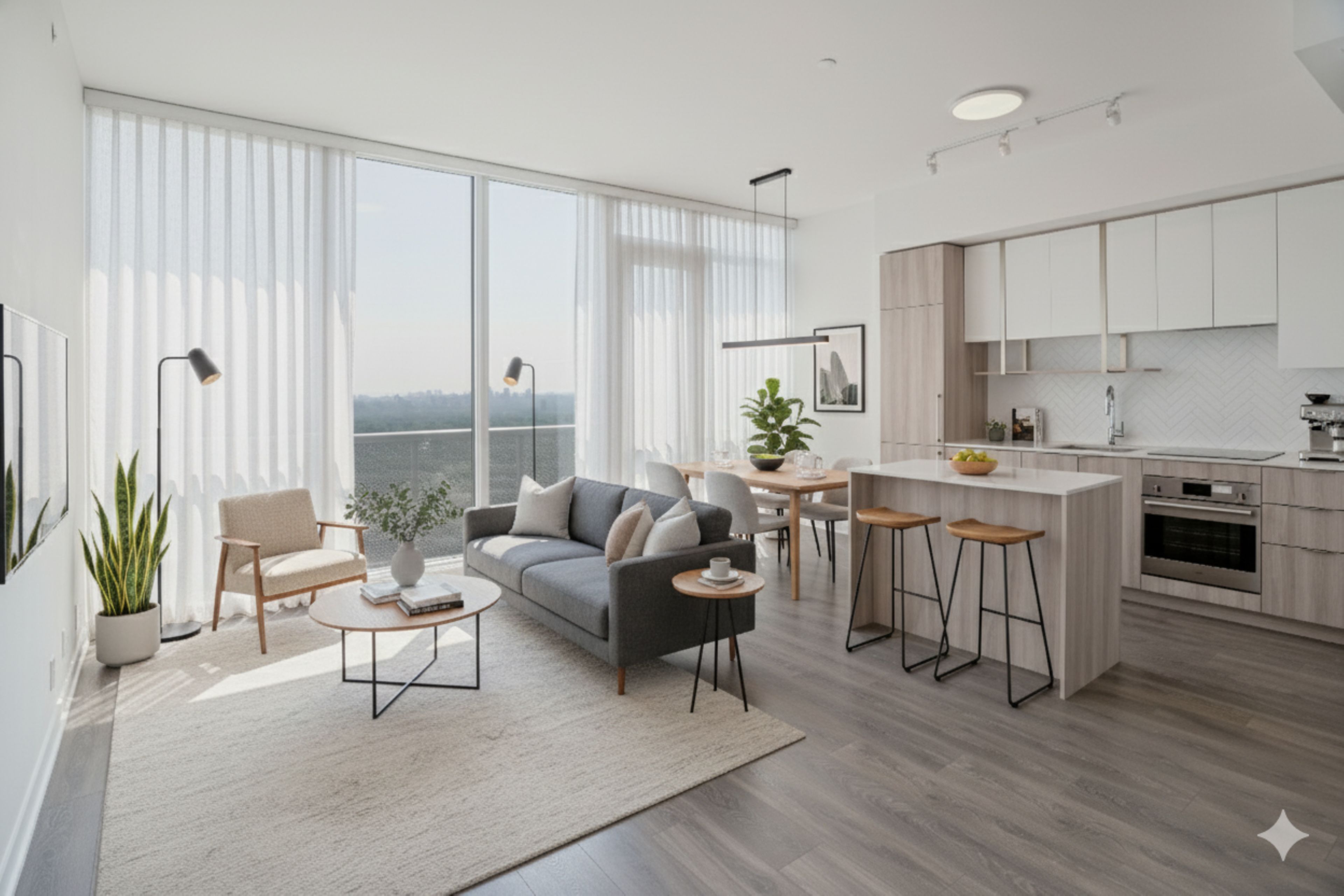 • Bright open-concept layout with floor-to-ceiling windows for natural light.