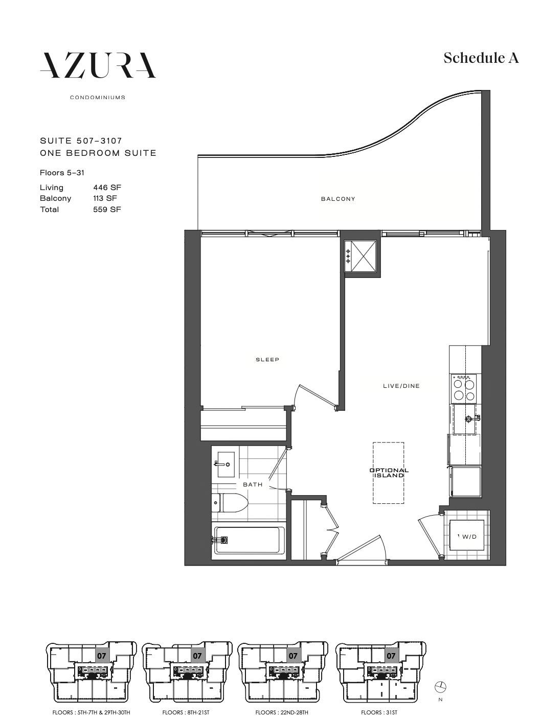 • 1-bedroom unit with floor-to-ceiling windows and a large balcony.