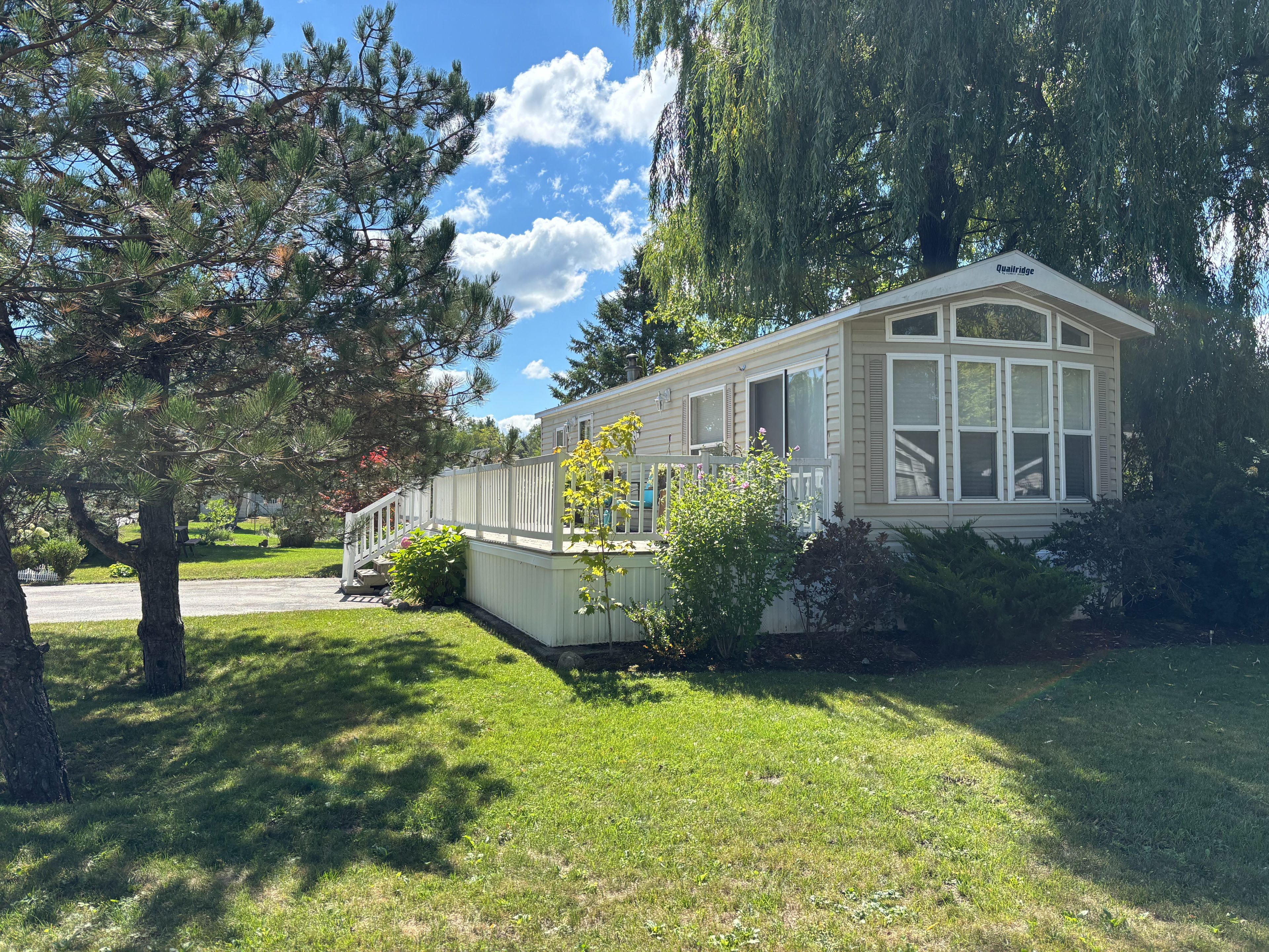 Seasonal retreat in popular countrylife resort. (7 months aril 26thst-nov 16th). Short walk to the beach! Immaculately maintained 2004 quailridge features a 12 x 40 deck, 2 bedrooms and is situated on a centrally located landscaped lot. Waterfront site very close to the sandy shores of georgian bay this cottage offers you privacy, location and low maintenance exterior with parking for two cars. Landscaped yard with plenty of private outdoor living space. This cottage is ready for your family to start enjoying the summer! Resort features pools, splash pad, clubhouse, tennis court, pickle ball, play grounds, mini golf and short walk to the beach. Gated resort w/security. This unit has been very well maintained and is a pleasure to show! Seasonal site fees for 2026 are $6,740 plus hst.