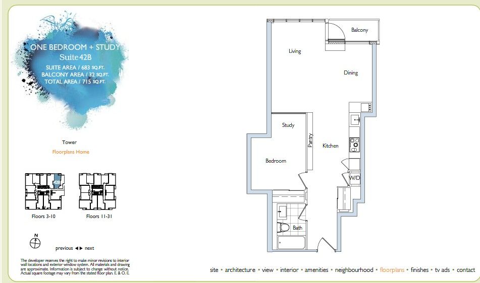 • Functional 683 sq ft layout with an additional 32 sq ft balcony.