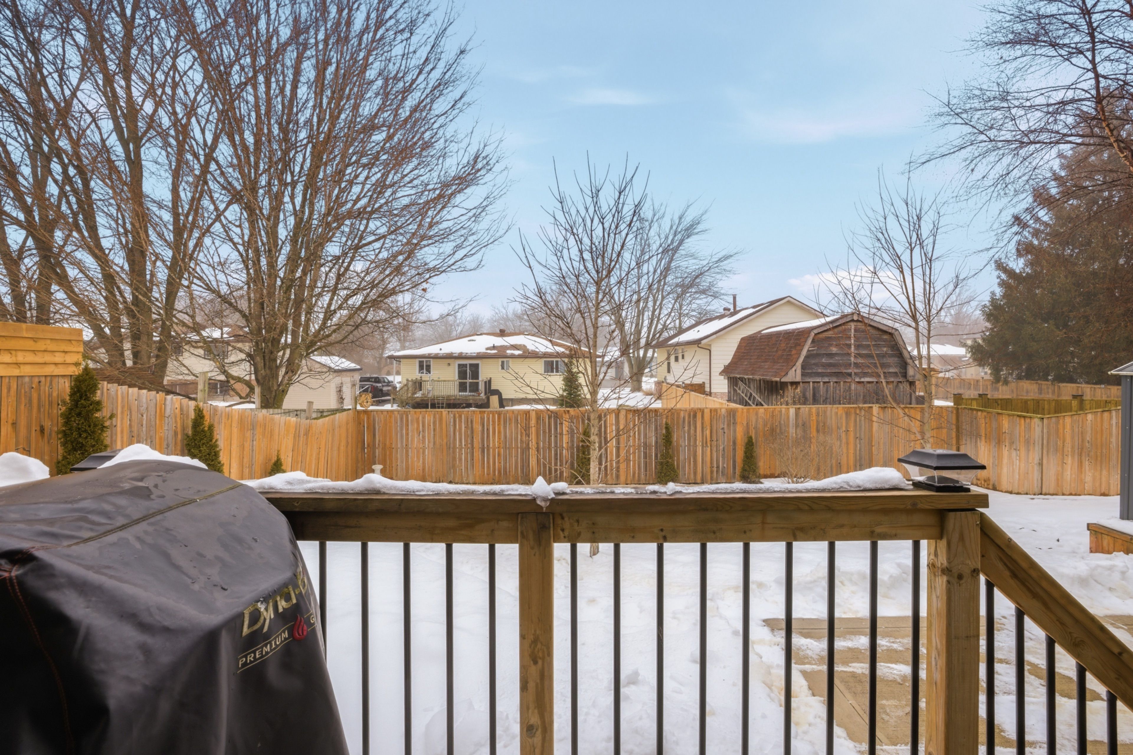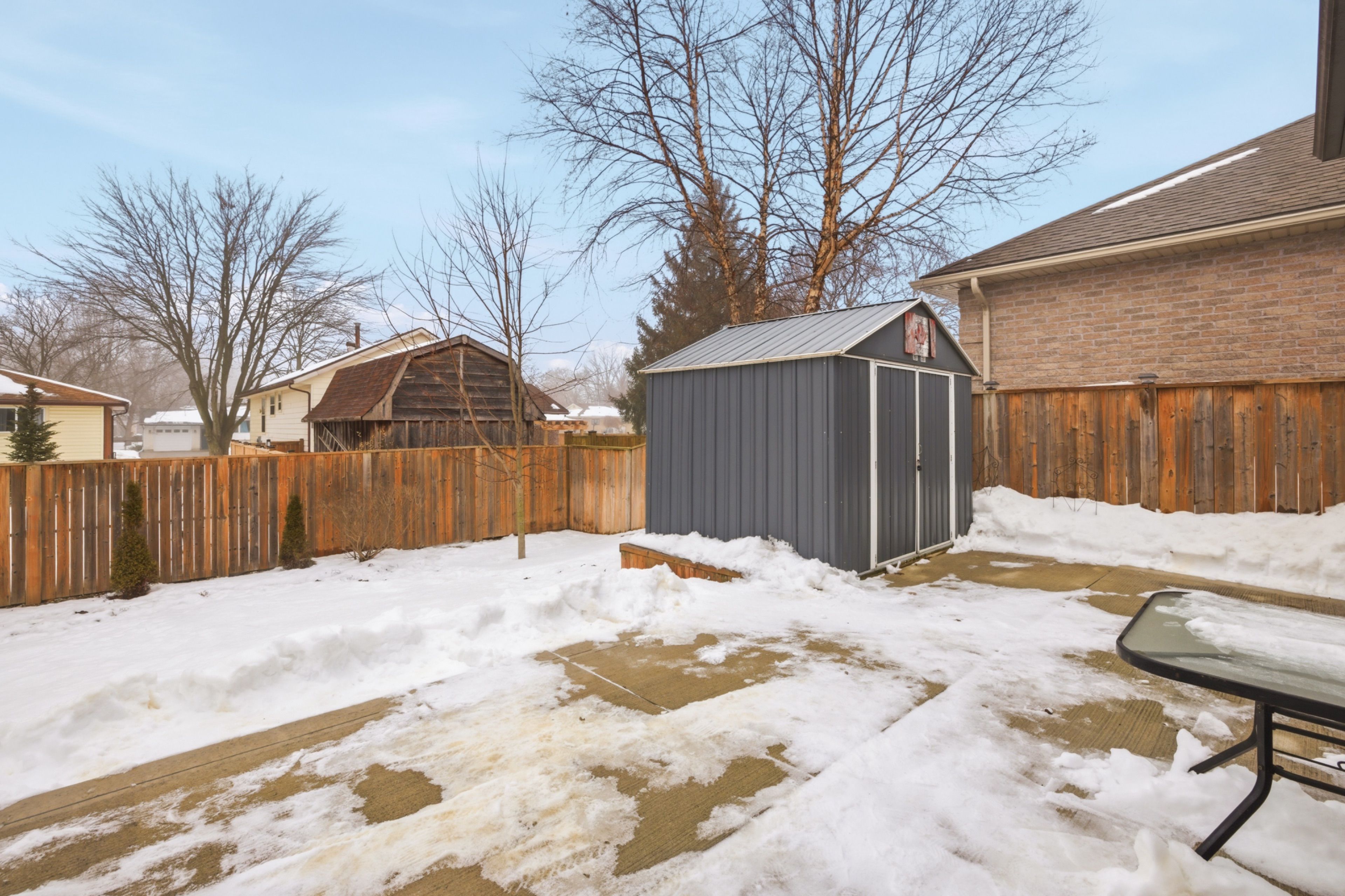 • Fully fenced backyard and in-ground sprinkler system for convenience.