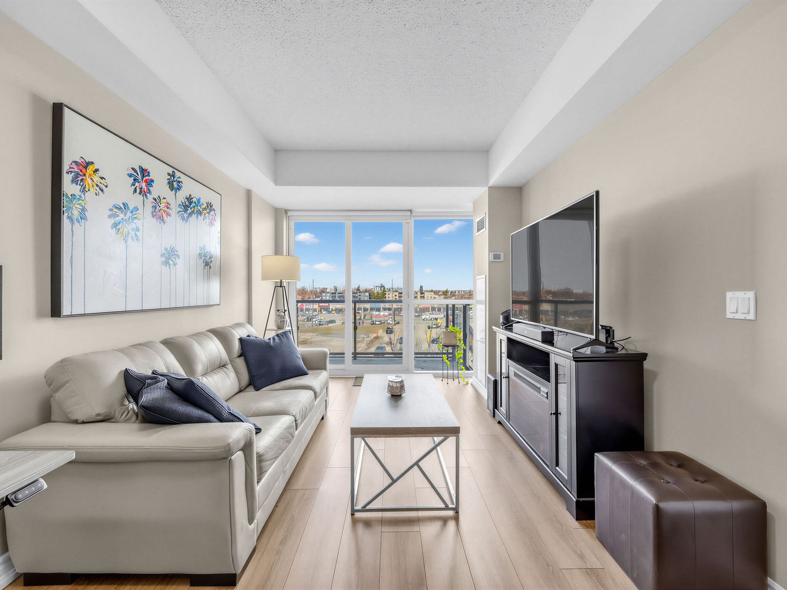 Bright and spacious, gorgeous one-bedroom condo (approx. 600sf + balcony) with a parking space and a locker, featuring unobstructed views, low maintenance fees, and conveniently located at keele st. & hwy 401. The ideal floor plan features a large modern open concept kitchen with granite counters, full-sized stainless steel appliances and a breakfast bar. The spacious living room and dining room area includes lots of wall space for your living room furniture, great space for your dining room or home office space, and a walk-out to the private balcony. The huge master bedroom, which can easily accommodate a king-sized bed, features a large picture window and a double-door closet. The front foyer includes a coat closet, a laundry closet and a beautiful 4-piece bathroom. The condo has been freshly painted and features new laminate floors (2025). The luxurious amenities include a 24/7 concierge, a large modern gym, a party room, a cozy theatre, a guest suite, an outdoor terrace with seating and bbqs and lots of visitor parking on the 3rd floor (20 visitor spots). All the amenities are on the 6th floor at the other end of the hall. Steps to the ttc and close to the wilson subway station, which offers quick access to downtown. Short drive to highway 401. Enjoy the convenience of the many great neighbourhood grocery stores, coffee shops and restaurants. Near humber river regional hospital, yorkdale mall and york university. Floor plan attached.