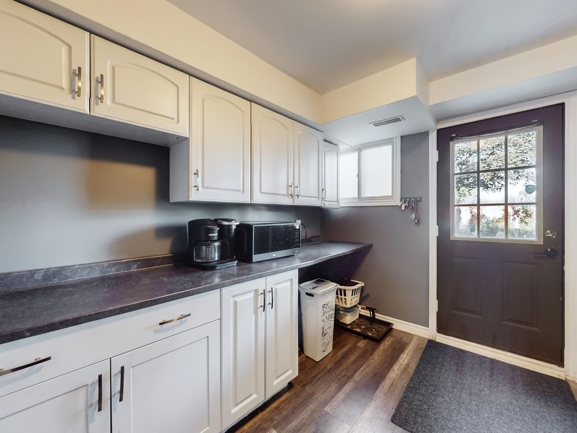 Set within a quiet, established pocket of ballantrae, this exceptional 3+1 bedroom home offers a rare combination of privacy, thoughtful design, and flexible living space. Surrounded by mature trees and lush landscaping, the property feels peaceful and secluded while remaining close to everything the community has to offer. The interior is bright, welcoming, and effortlessly functional. Hardwood floors flow through the main living areas, where large windows fill the space with natural light and create an inviting environment for everyday living and entertaining. The kitchen is both stylish and practical, featuring quartz surfaces, stainless steel appliances, and ample storage-designed to support everything from busy mornings to relaxed evenings at home. Three spacious bedrooms are located on the upper level including a comfortable primary bedroom with its own ensuite bathroom. A second full bathroom serves the remaining bedrooms, offering convenience for family and guests alike. On the lower level, a warm and comfortable family room with a gas fireplace provides the perfect setting for unwinding, whether hosting movie nights or enjoying a quiet evening in. The fully finished basement adds significant value with a private, self-contained apartment and separate entrance-ideal for extended family, guests, or supplemental income. A backsplit layout enhances the home's sense of separation and flow, creating defined spaces without sacrificing connection. Direct garage access, meticulous upkeep, and a beautifully treed lot further elevate the property's appeal. Move-in ready and exceptionally well cared for, this home is suited to a variety of lifestyles-from growing families to multi-generational households or buyers seeking a peaceful, established neighbourhood. A rare opportunity to own a versatile and inviting home in one of ballantrae's most desirable settings.