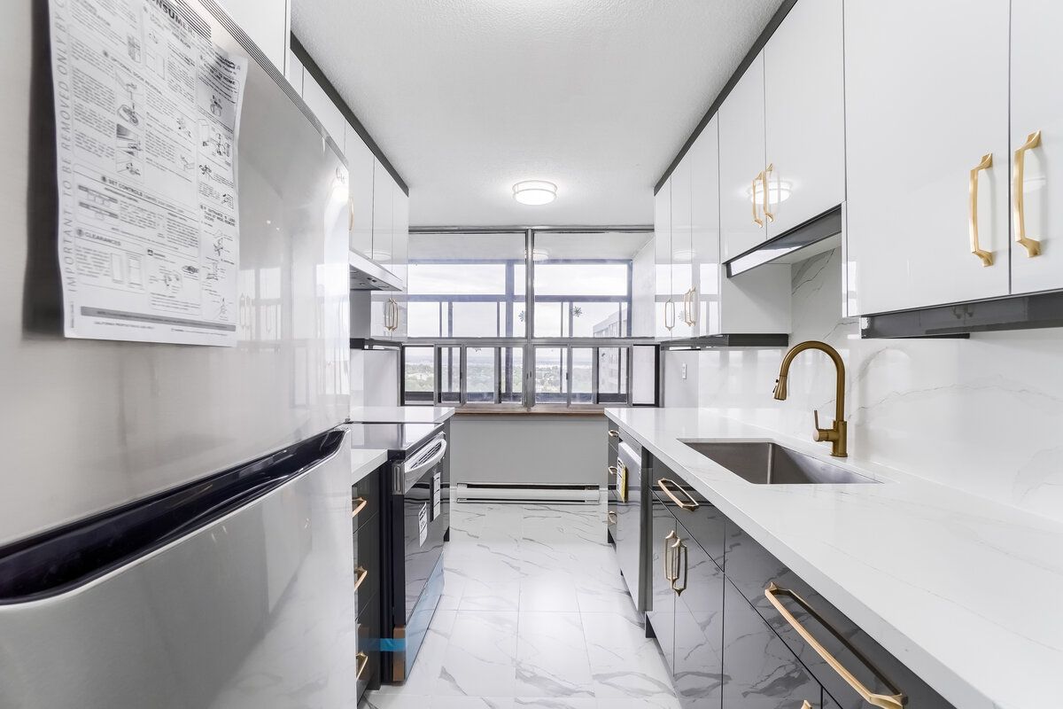 Must see! Bright and spacious 2 bedrooms unit, large balcony with gorgeous northeast view, new modern kitchen including soft-close cabinets, upgraded bathrooms with new vanities, quartz counter tops, new appliances, freshly painted walls, open concept living/ dining rooms, and one underground parking. Just steps away from bramalea city centre, chinguacousy park, hwy 410, medical centers & library, parks, and public transport.