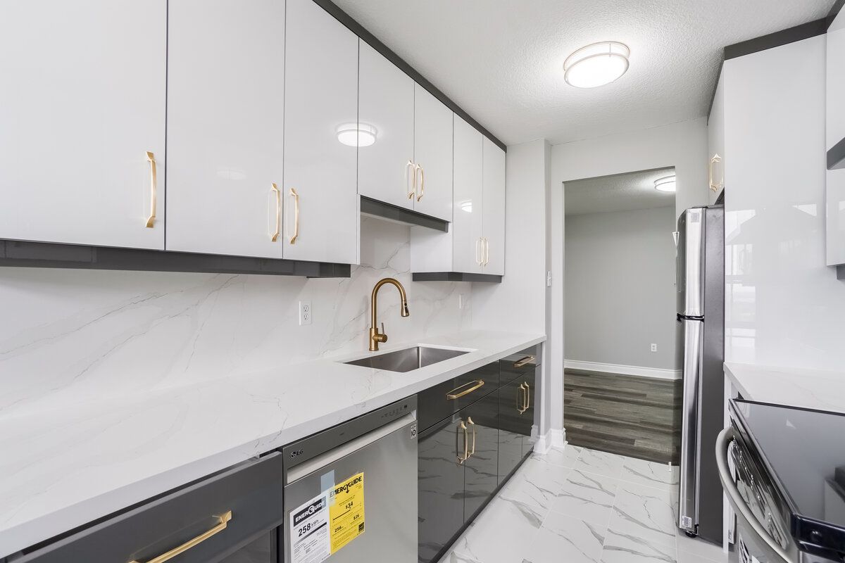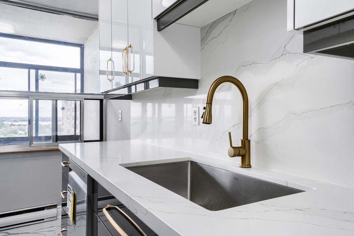 • Upgraded bathrooms with stylish new vanities and quartz countertops.