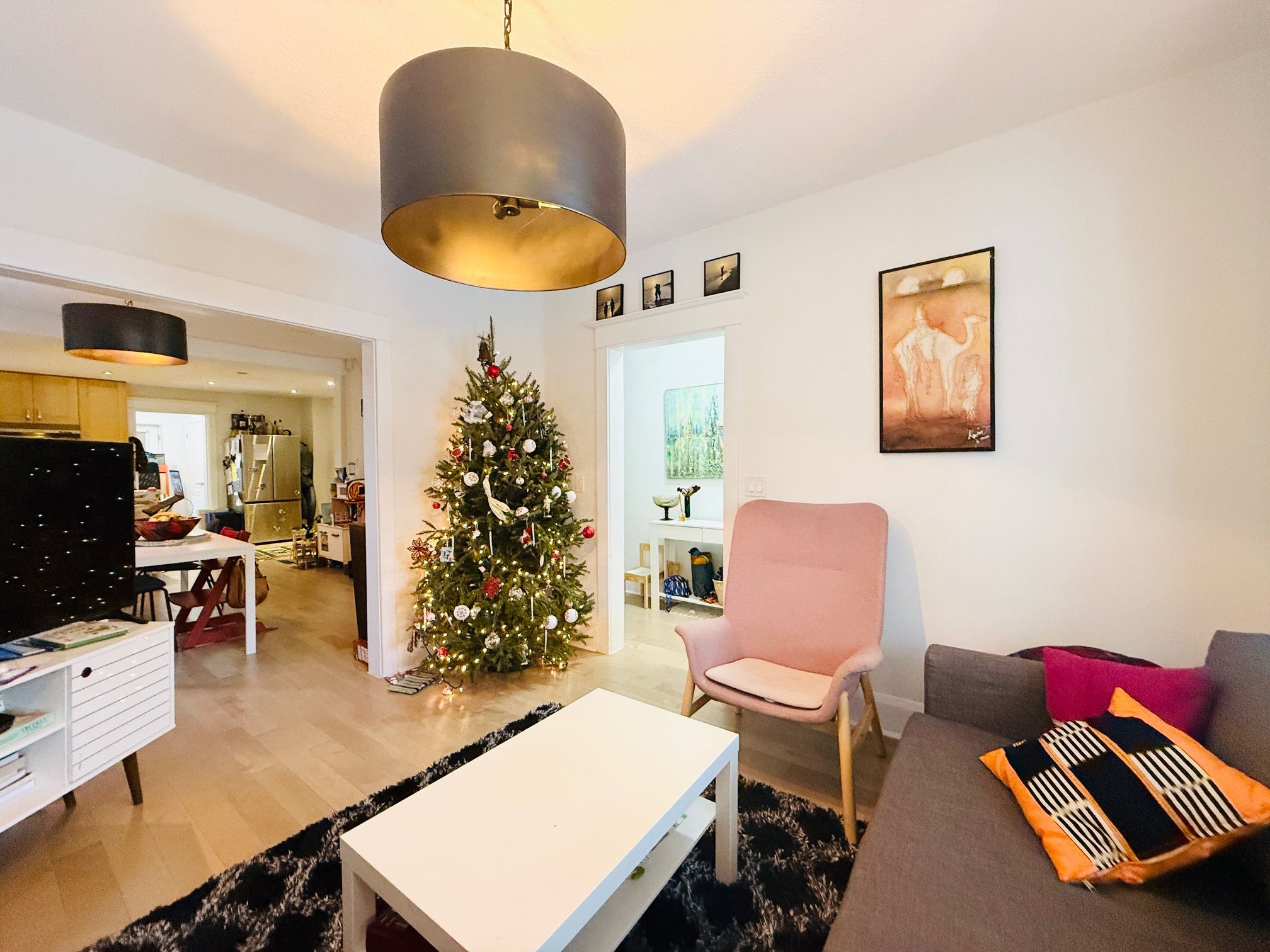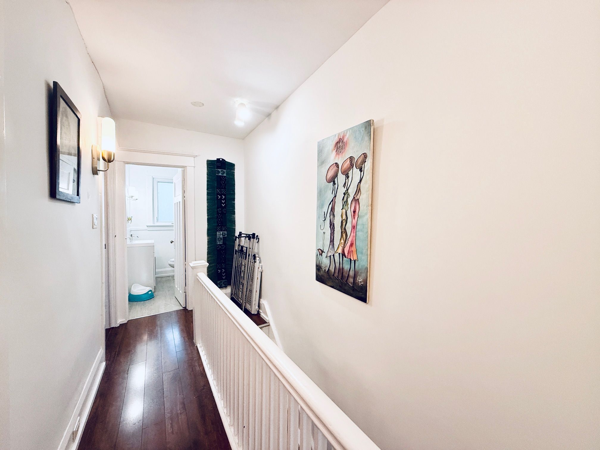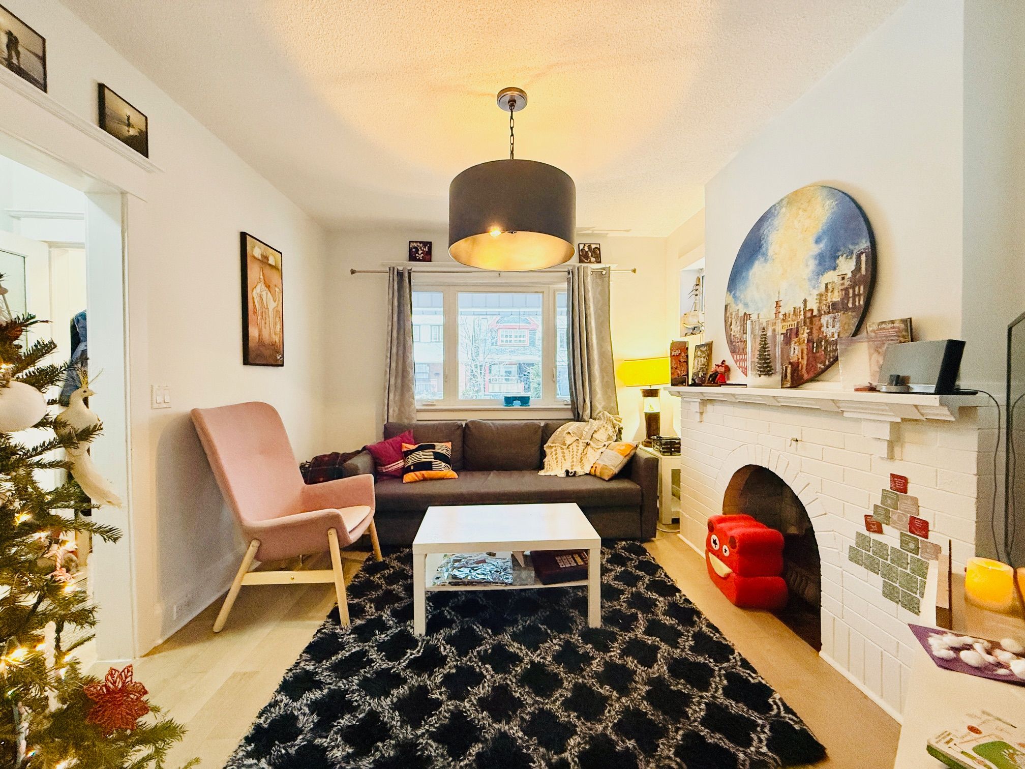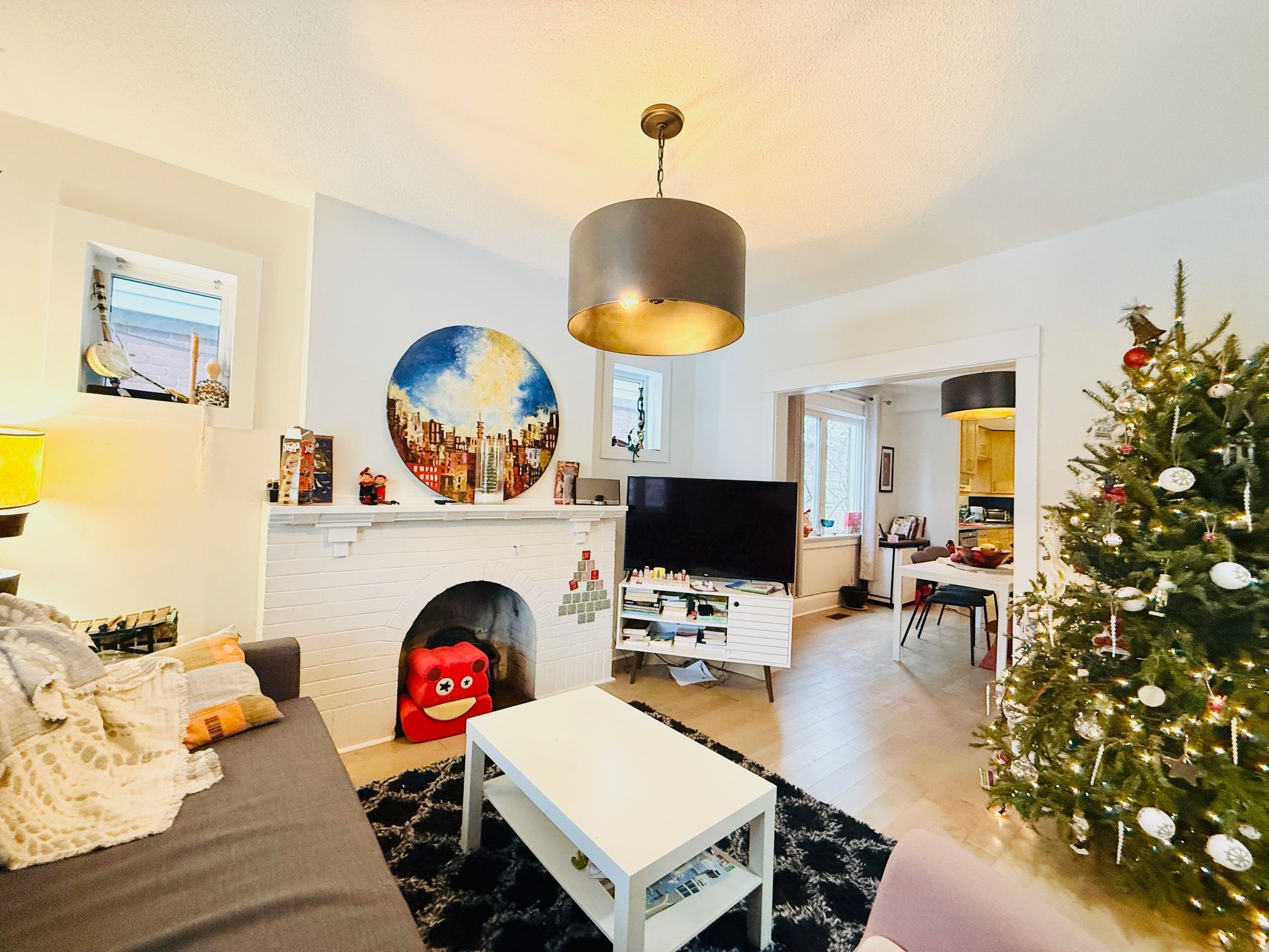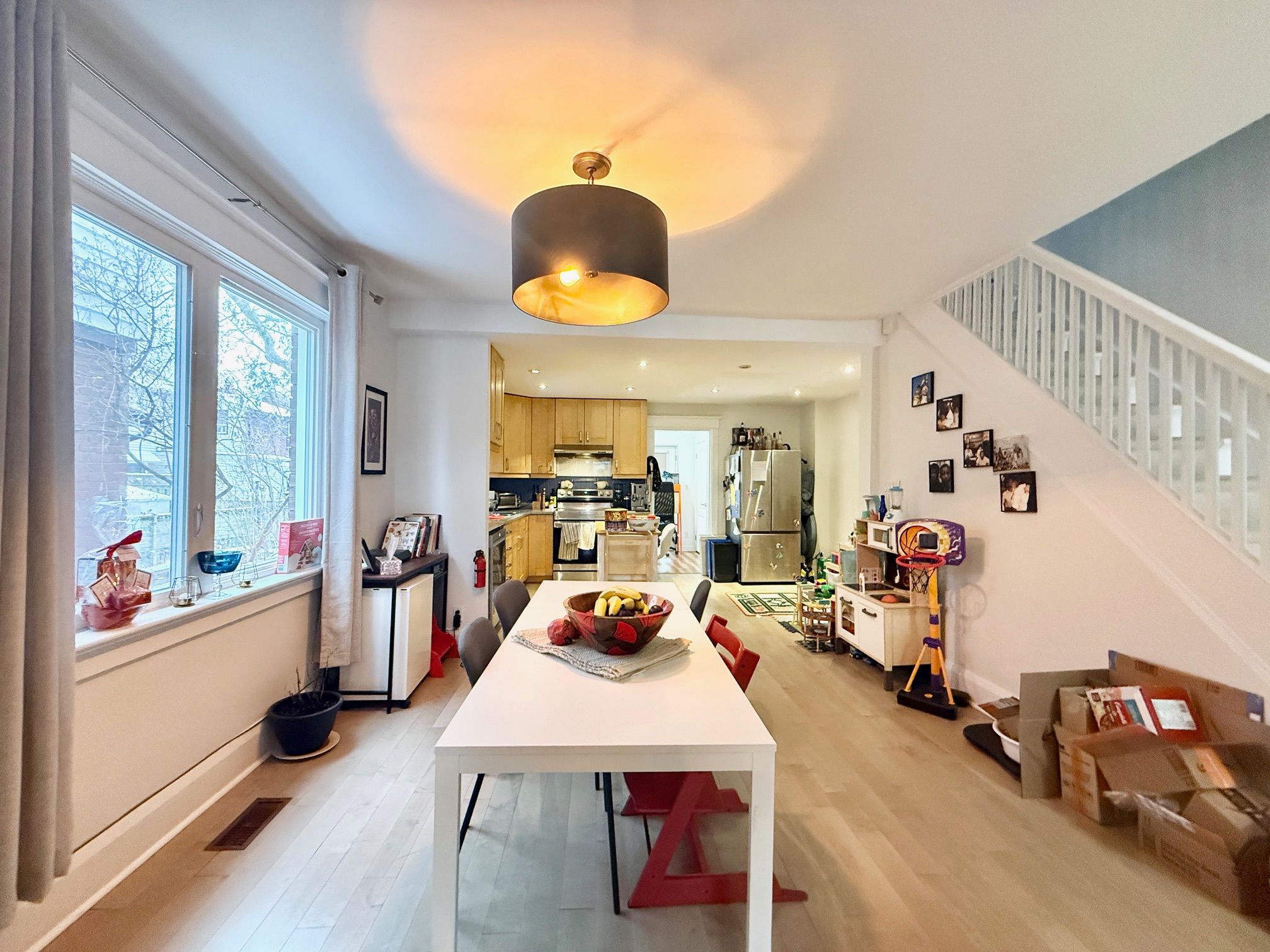 • Spacious main floor living area with hardwood floors and high ceilings.