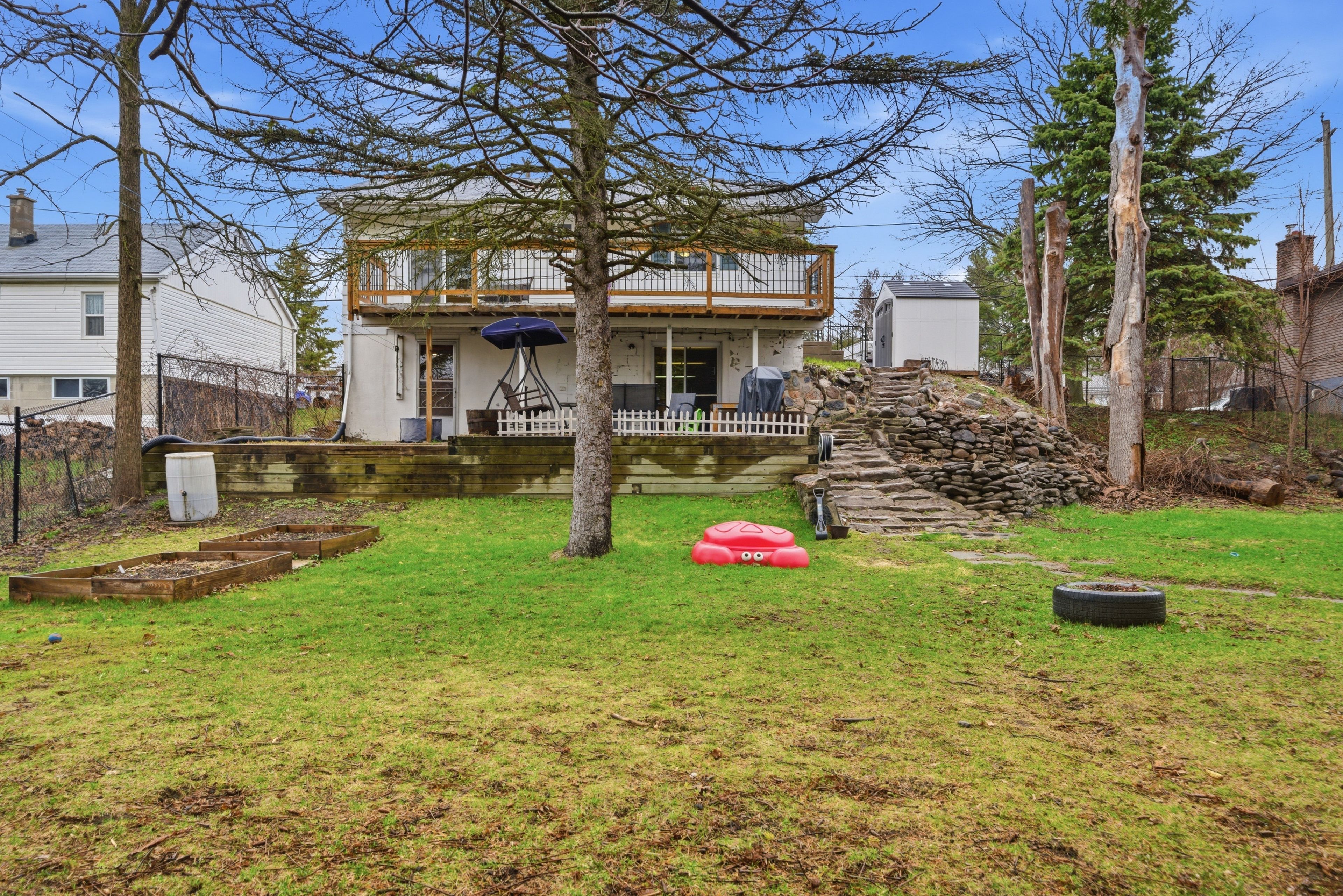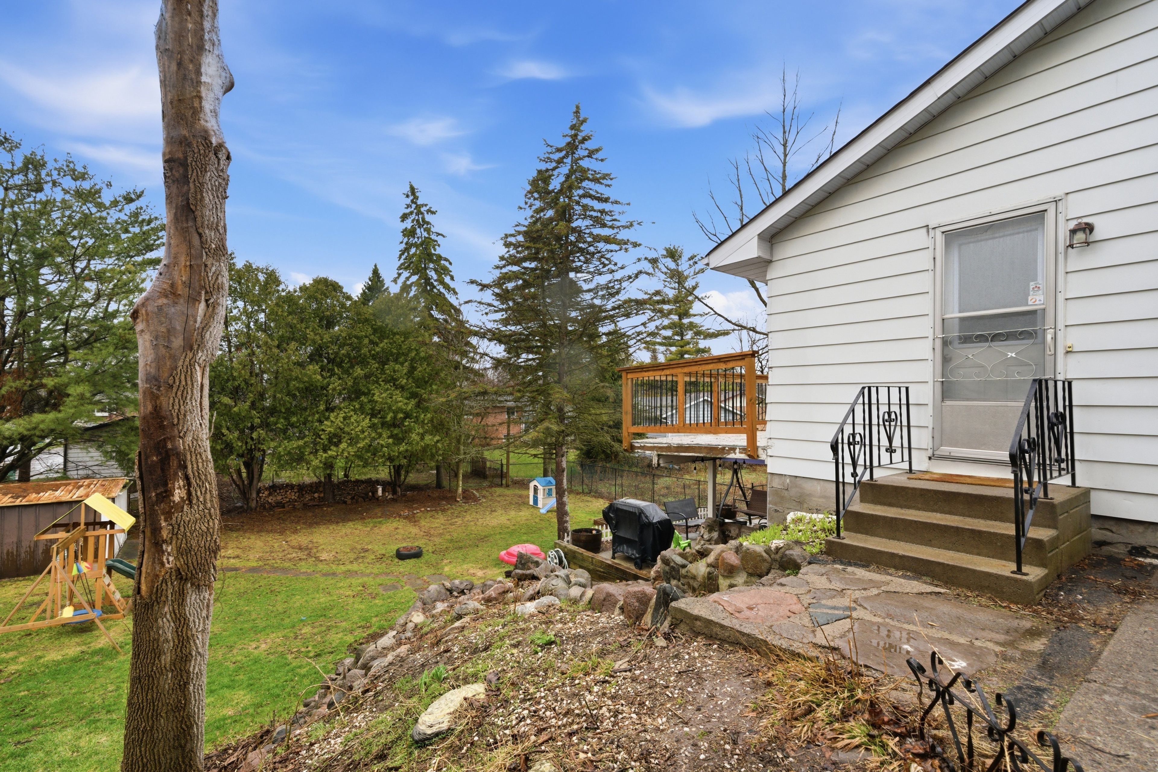 Welcome/bienvenue to 15 kidd avenue! This charming bungalow sits on a spacious lot that's larger than it appears and is located just minutes from cfb trenton. Inside, you'll find an open-concept living space featuring a bright living room, dining area, and kitchen. The main floor includes a refreshed 4-piece bathroom with a new window and bathtub. The generously sized bedroom is currently used as a child's dream room, with space for everything, while the second bedroom, used as the primary bedroom, has a patio door opening onto a deck - an ideal spot to enjoy your morning coffee with a view of the backyard. The lower level offers a spacious rec room with a walkout to the backyard, a laundry area, a 2-piece bathroom (with a rough-in for a shower), and ample additional space for flexibility. A storage room could easily be converted into an extra bedroom by updating the window, and a good-sized office - also with direct yard access - could serve as another bedroom if desired. The private, tree-lined, fully fenced backyard feels like your own retreat, offering ample space to create your ideal outdoor oasis. Could this be / est-ce que ca pourrait etre votre... Home sweet home?