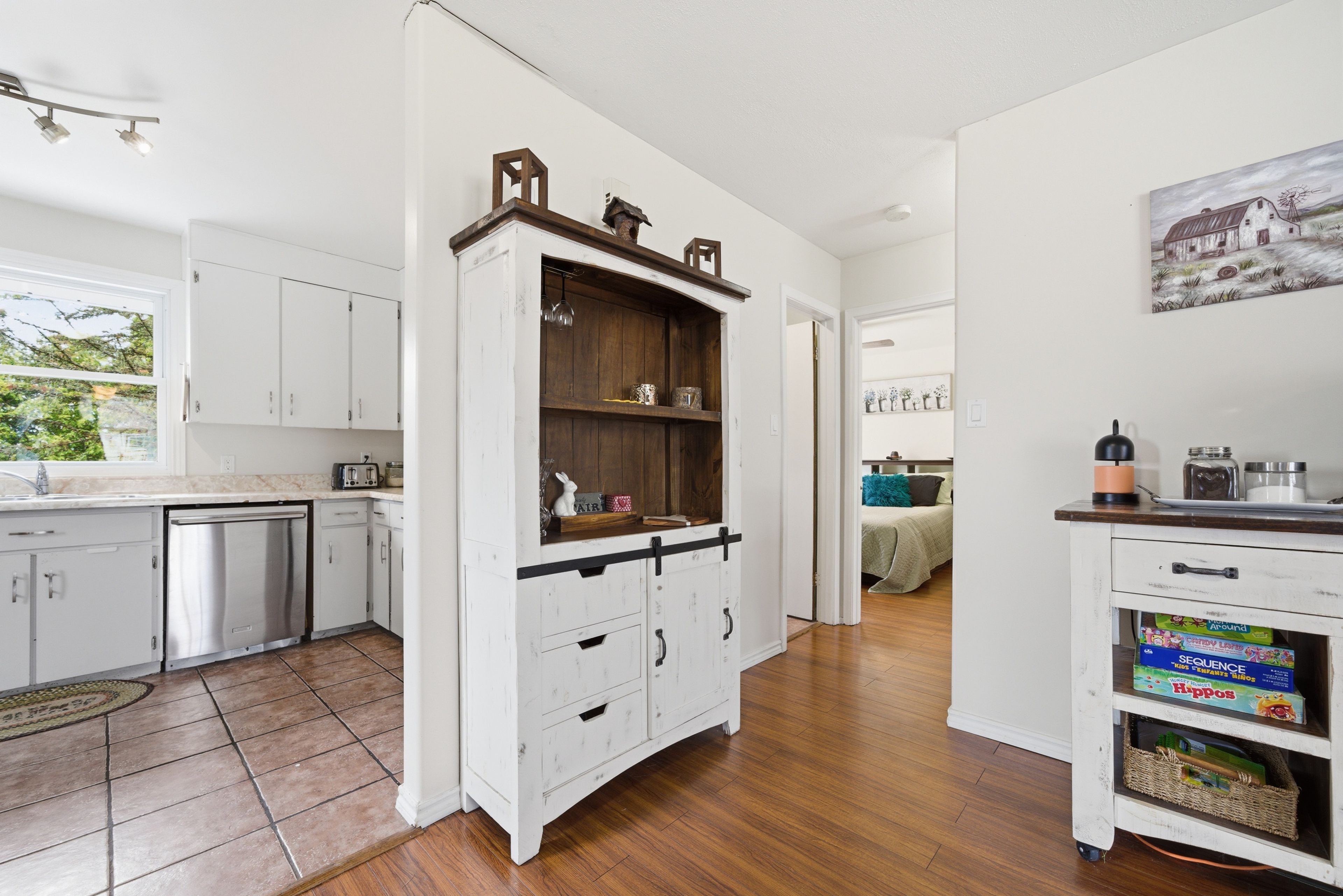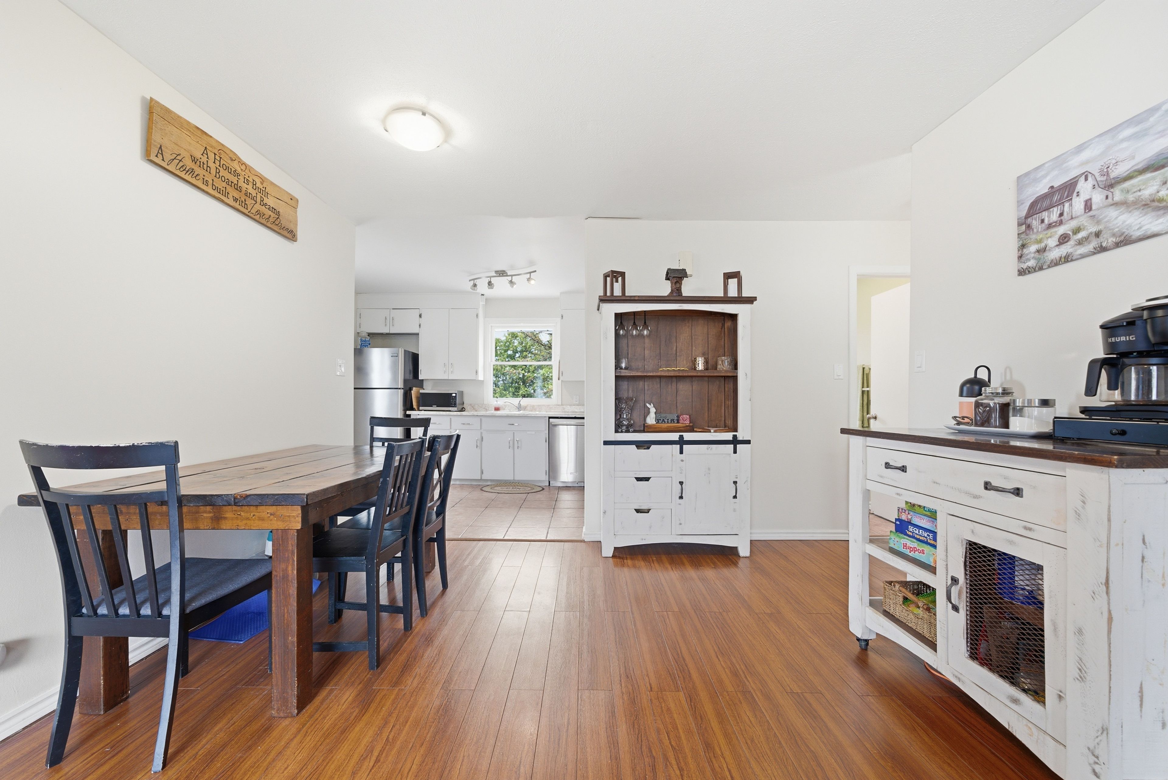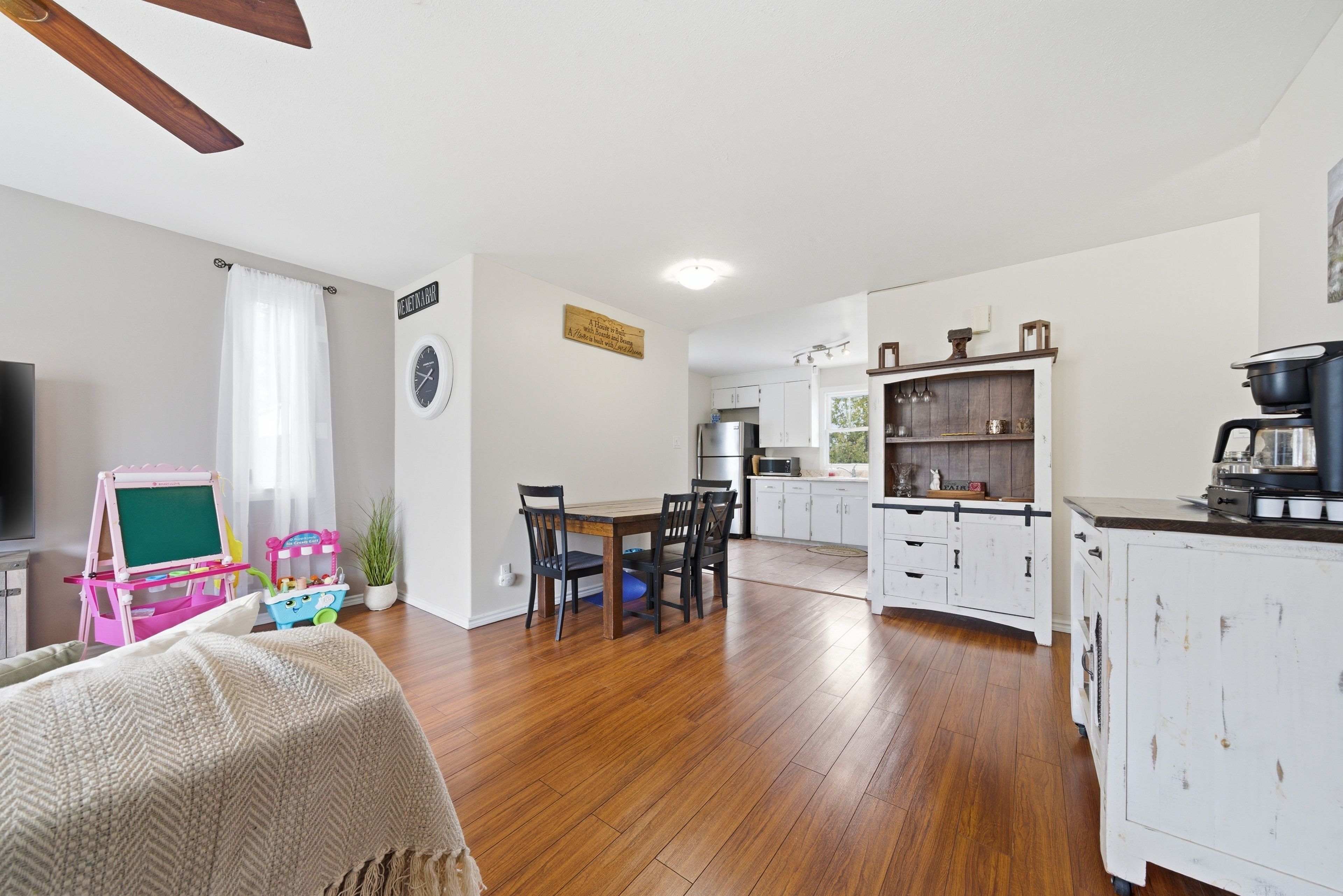 • Bright open-concept living area with a cozy living room and dining space.