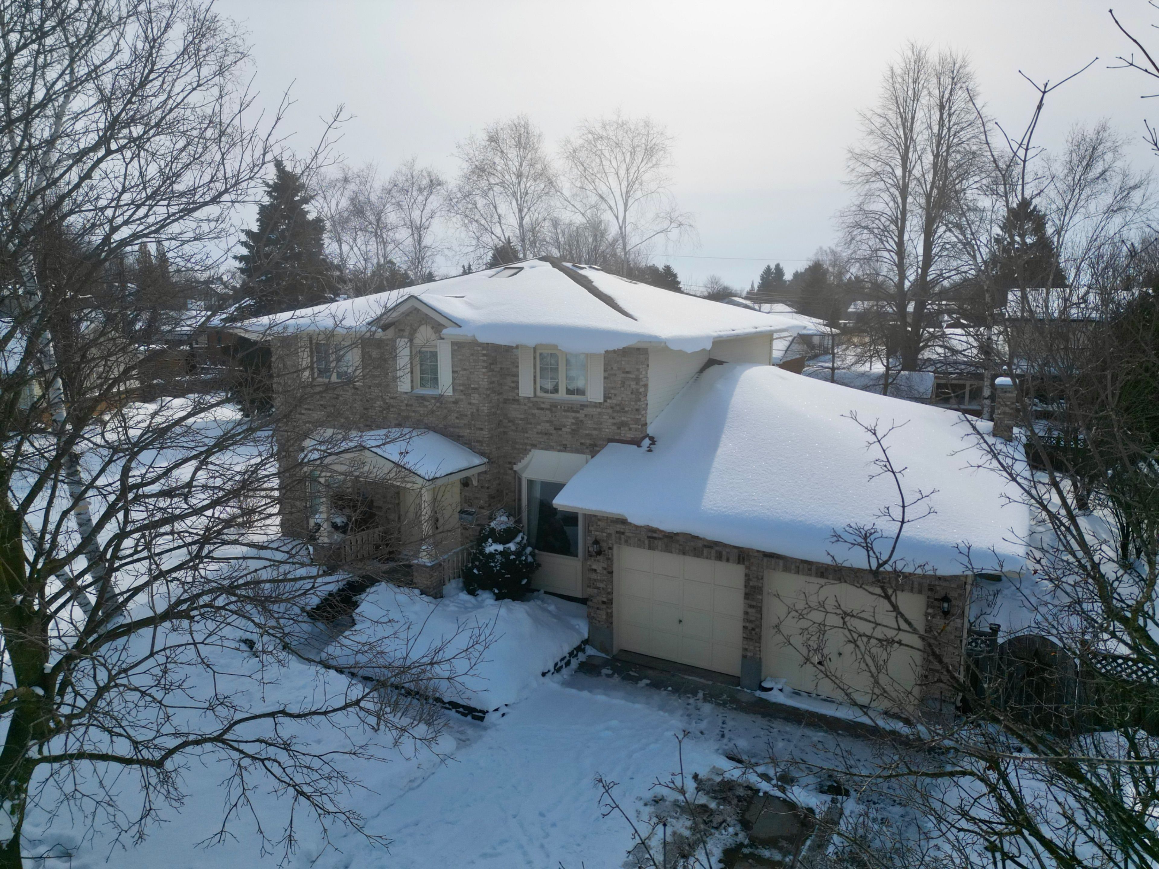 Set on a picturesque, quiet street, this well built 2 storey brick home will be a great place to raise your family. Ideally located, it is walking distance to schools, morrison trail, arena and sports fields. Entering the double front doors, you'll find yourself in a generous open foyer with an exquisite oak staircase to the second floor. The spacious front living room features a large bay window, and opens up to the formal dining room. Opposite the living room is a front den, which could be used well as a home office, playroom, or library. The kitchen overlooks the rear yard, with ample storage and workspace, featuring solid wood cabinetry, updated appliances, and newer granite countertops. Abutting the kitchen is a generous dinette with access to the rear deck and yard. Outside you'll find a private backyard, complete with an outdoor workshop (15'x9. 5'). The lovely large family room with a wood fireplace feature, and doors leading to the lower deck. Rounding out the main floor is a handy 2 piece bathroom, and a laundry room with access to the garage. Up the grand winding staircase, you'll find a spacious second floor with 4 generous sized bedrooms, including an oversized primary bedroom, featuring 2 closets (one walk in closet) and ensuite 4 piece bath. Another 4 piece bathroom rounds out the second floor. The basement level is primarily finished, with a rec room area, 3 piece bath, workshop, and ample storage. An extra practical feature are stairs leading from the basement to the double garage. This home was designed and finished by the current owners, and has been lovingly cared for since, seeing updates including roof (2023), some windows, flooring, appliances, countertops, furnace, a/c, etc. Reach out for a showing or more information on this exceptional home and property.