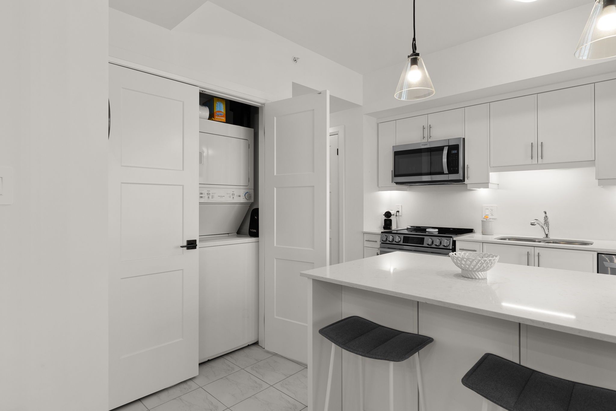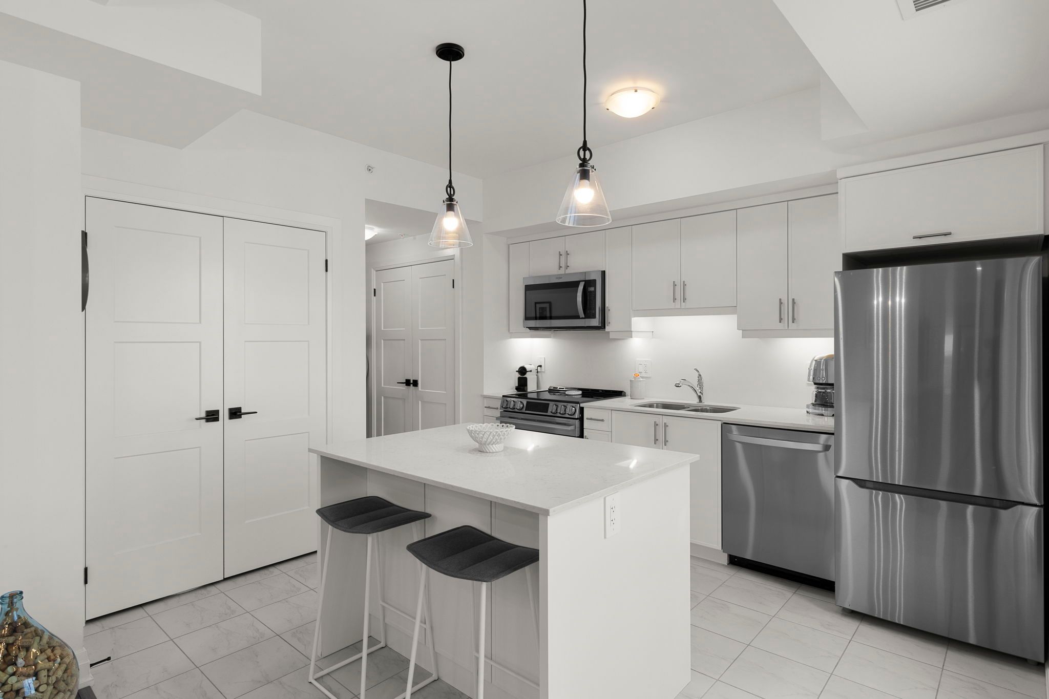 • Modern kitchen with quartz countertops and stainless steel appliances.
