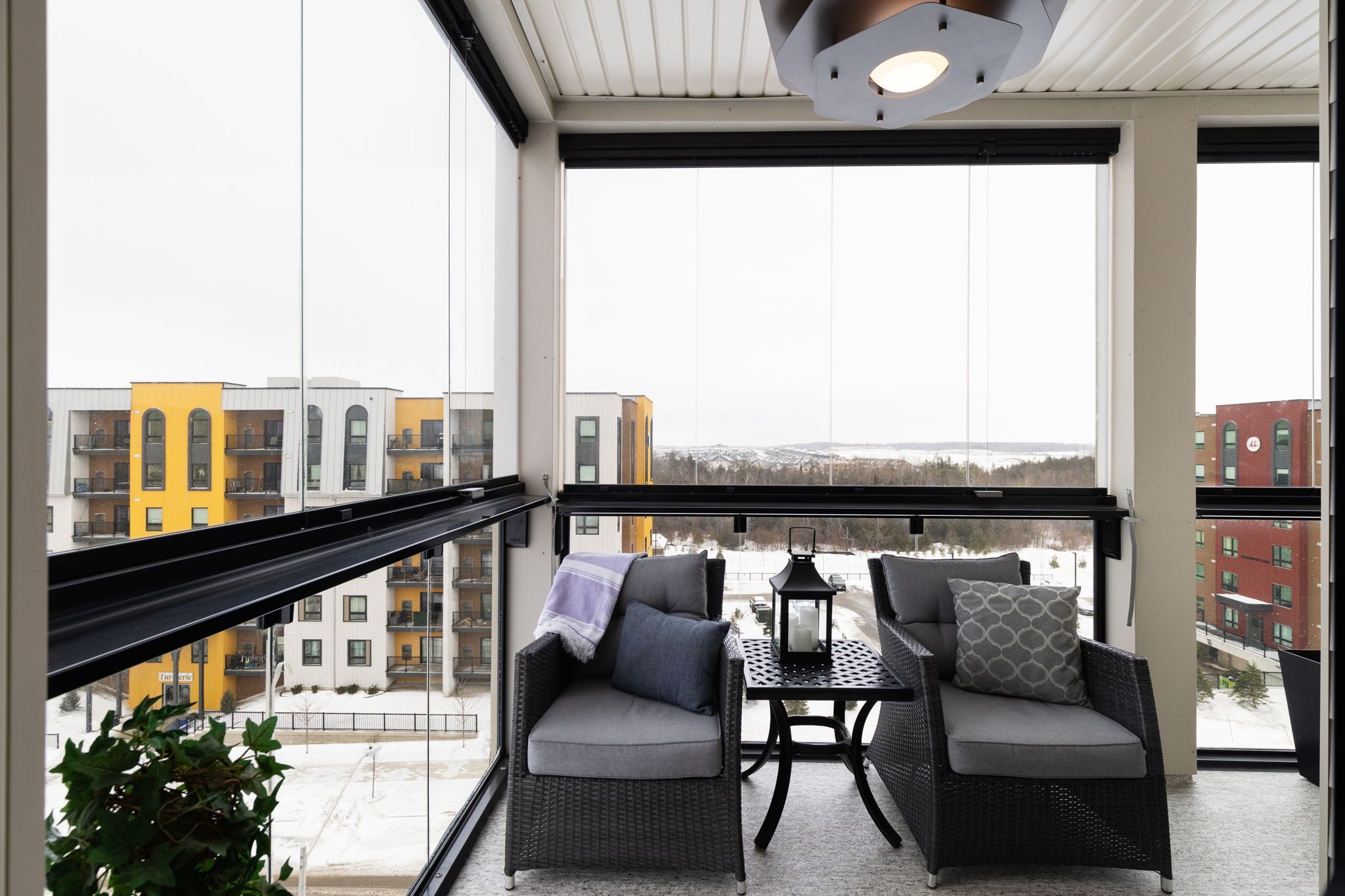 Introducing suite 511 at 15 kneeshaw drive, a bright corner 1-bedroom + den, 1-bathroom condo with underground parking, equipped with ev charging, located in the highly sought-after elements condominiums. Nestled in southeast barrie, this beautiful suite offers the perfect balance of urban convenience and peaceful living, with easy access to shopping, dining, schools, and just a short walk to the go station. Enjoy quick connections throughout the city and an easy drive to year-round outdoor recreation. As a corner suite, suite 511 is filled with natural light and features 9' smooth ceilings with pot lights and designer fixtures, creating an open, airy feel throughout. Premium high-end laminate flooring flows seamlessly across the space, enhancing the modern aesthetic. The kitchen is thoughtfully designed with quartz countertops, upgraded cabinetry with undermount lighting, and stainless steel appliances, blending style with everyday functionality. Additional custom cabinetry in the dining and living areas provides extended storage, while the enclosed glass balcony offers a versatile space for relaxing or entertaining year-round, with panels that open and close for seasonal enjoyment. Residents of elements condominiums enjoy resort-style amenities including waterfall and firepit lounge areas, a cardio room, ev charging stations, an outdoor jogging track with fitness stations, and a children's playground. Living here truly feels like a luxury 5-star hotel experience, offering comfort, convenience, and lifestyle all in one. Don't miss your opportunity to call suite 511 home.