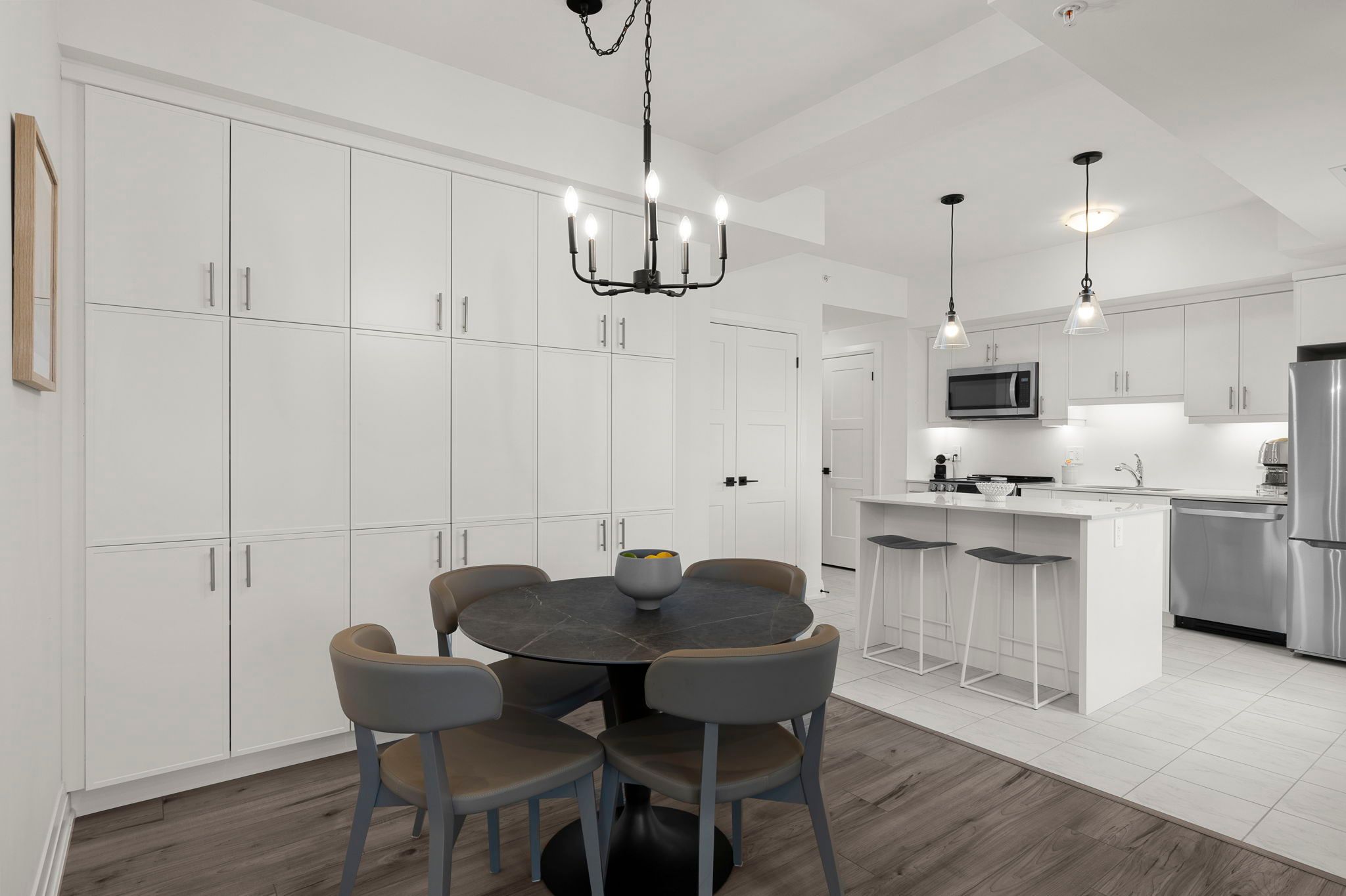 Available april 1st. Introducing suite 511 at 15 kneeshaw drive, a bright corner 1-bedroom + den, 1-bathroom condo with underground parking, equipped with ev charging, located in the highly sought-after elements condominiums. Nestled in southeast barrie, this beautiful suite offers the perfect balance of urban convenience and peaceful living, with easy access to shopping, dining, schools, and just a short walk to the go station. Enjoy quick connections throughout the city and an easy drive to year-round outdoor recreation. As a corner suite, suite 511 is filled with natural light and features 9' smooth ceilings with pot lights and designer fixtures, creating an open, airy feel throughout. Premium high-end laminate flooring flows seamlessly across the space, enhancing the modern aesthetic. The kitchen is thoughtfully designed with quartz countertops, upgraded cabinetry with undermount lighting, and stainless steel appliances, blending style with everyday functionality. Additional custom cabinetry in the dining and living areas provides extended storage, while the enclosed glass balcony offers a versatile space for relaxing or entertaining year-round, with panels that open and close for seasonal enjoyment. Residents of elements condominiums enjoy resort-style amenities including waterfall and firepit lounge areas, a cardio room, ev charging stations, an outdoor jogging track with fitness stations, and a children's playground. Living here truly feels like a luxury 5-star hotel experience, offering comfort, convenience, and lifestyle all in one. Don't miss your opportunity to call suite 511 home.