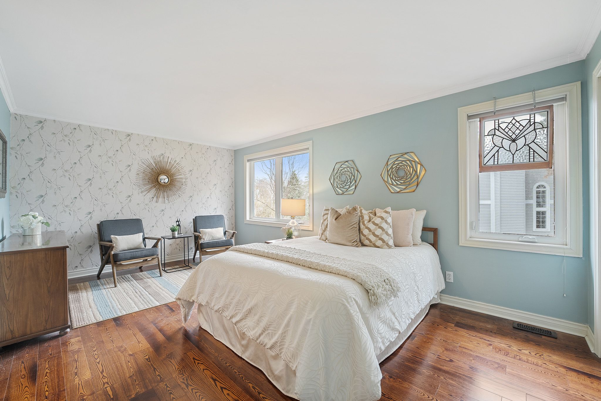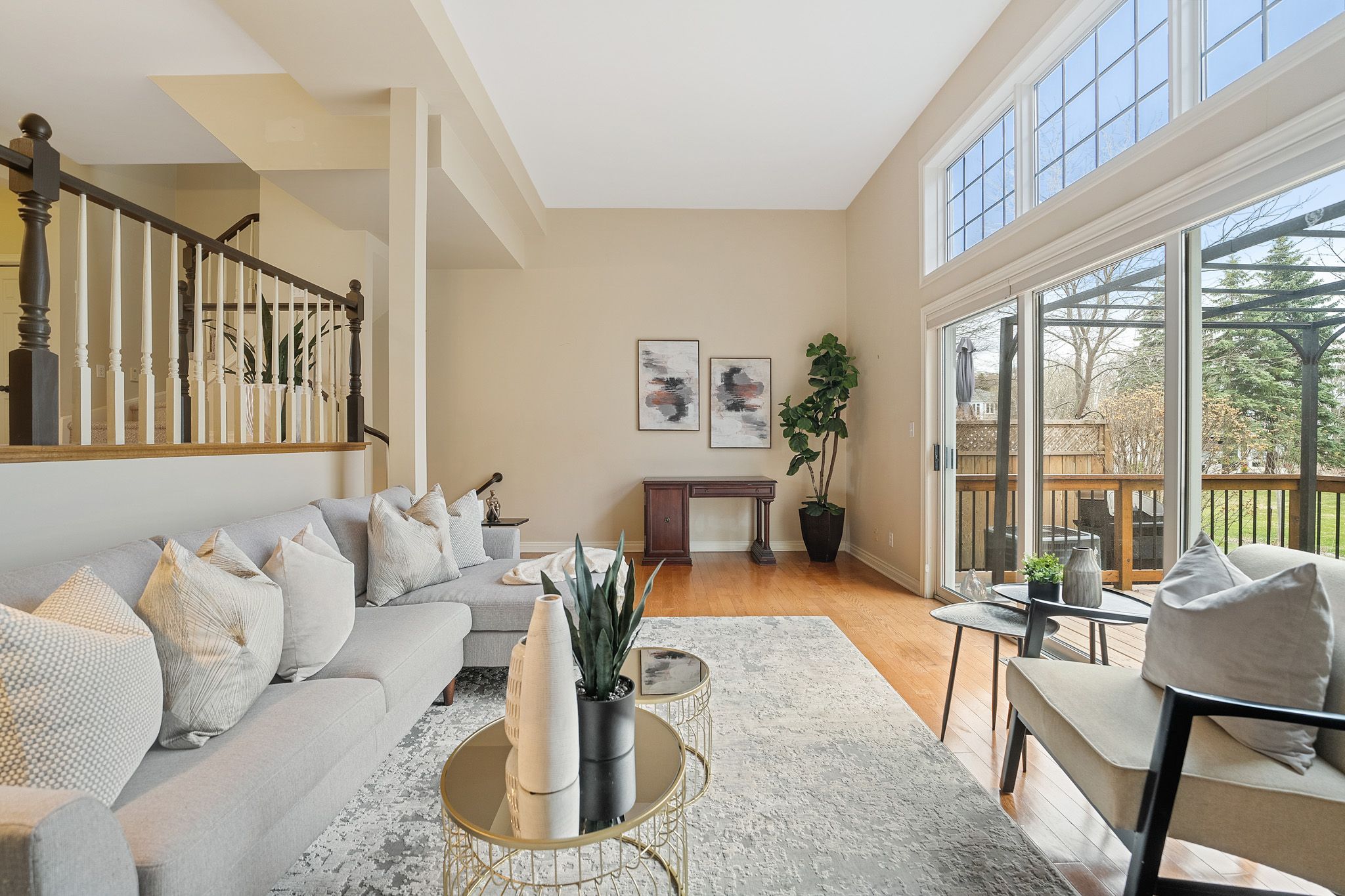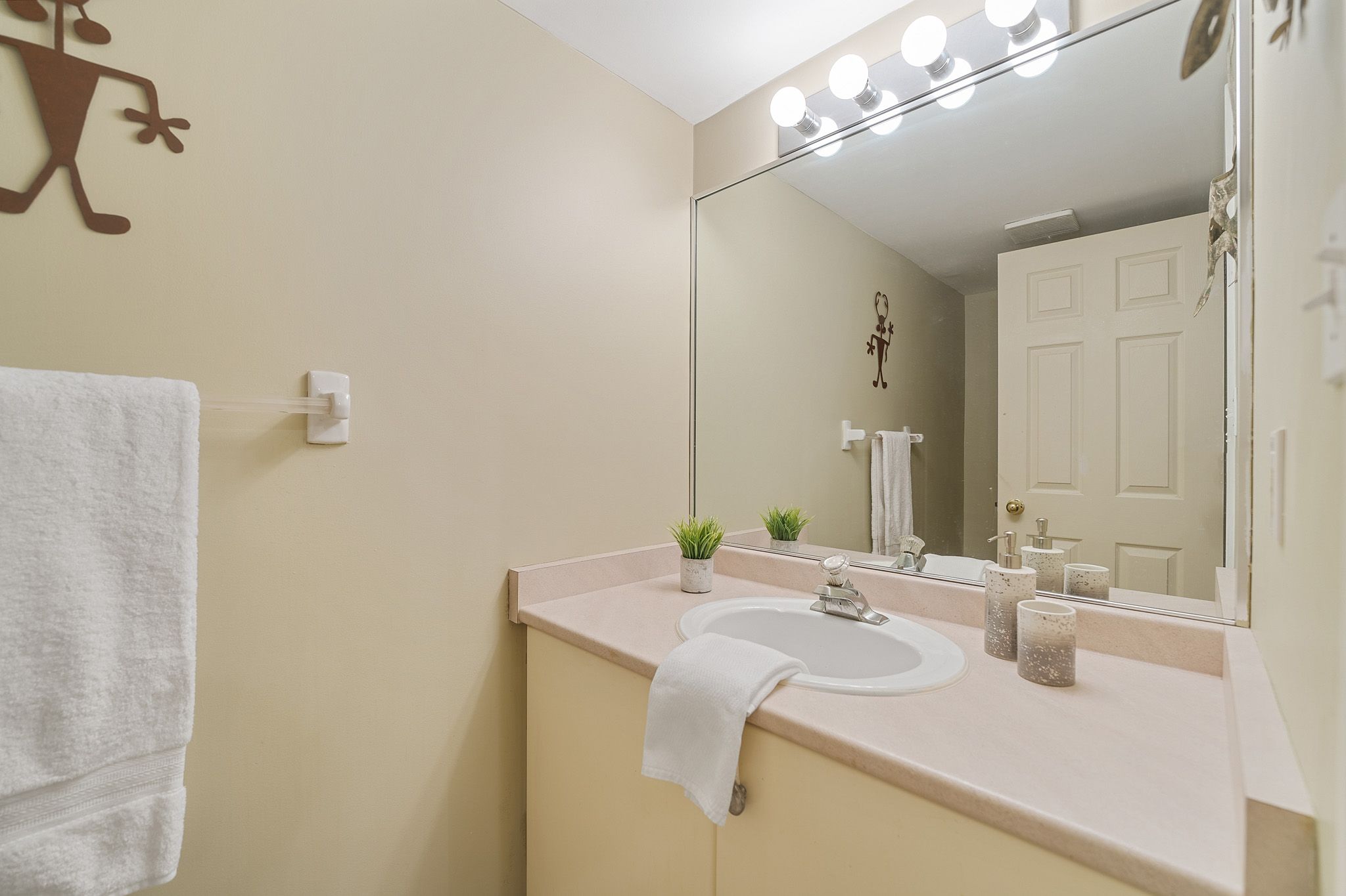 Discover maintenance-free lakeside living in beautiful port weller, with wonderful lake views and nestled in a gorgeous neighborhood, this community combines luxurious living with an affordable price. Located steps away from jones beach and lake ontario, this 2-storey townhouse boasts 2 bedrooms, 3 bathrooms and 1,575 square feet of finished living space, making this a true hidden gem. As you enter, you'll be greeted by a bright and inviting home, thanks to the large windows that flood the space with natural light. The luminous kitchen boasts ample cupboard and countertop space for meal prepping and offers gorgeous lakeside views. Enjoy meals in the eat-in dining room or unwind in the cozy sunken living room with its high ceilings and walkout to your private backyard. An electric fireplace adds warmth on cool nights. Upstairs, you'll find two bedrooms, including an oversized primary bedroom with double closets for all your storage needs. Look out the window in the secondary bedroom to find unobstructed lake views, perfect to wake up to in the morning. The second floor also includes two 4-piece bathrooms with one of them having lakeside views. The basement offers additional living space with a 2-piece bathroom, an oversized rec room, and a laundry area. Step outside to a private deck in the backyard, perfect for relaxing on summer nights. This hidden gem also includes a community pool to enjoy after a long, warm day. With its blend of comfort and luxury, this townhouse is your ideal lakeside retreat.