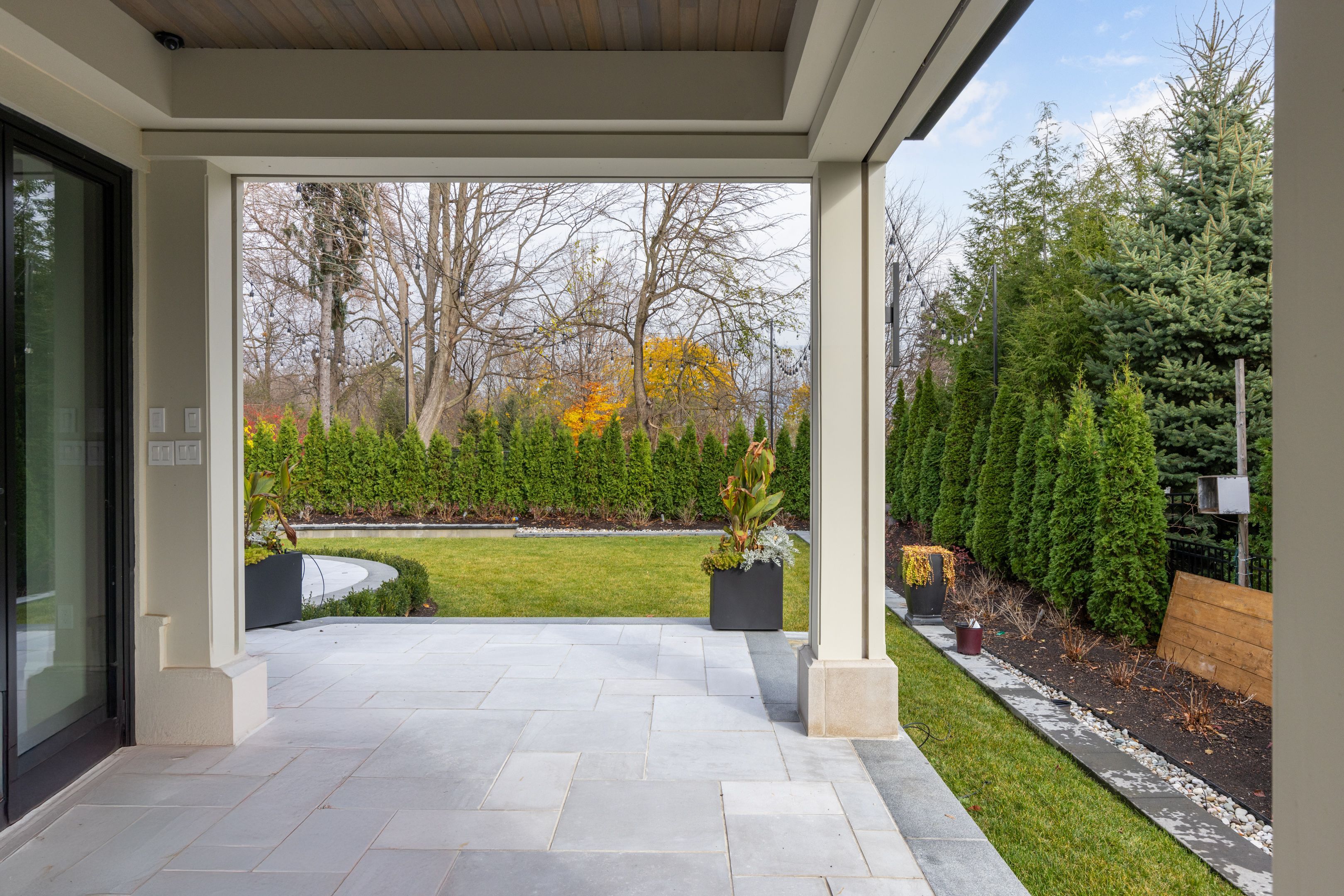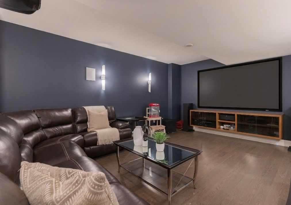 • Entertainment lower level includes gym, theatre, and recreation room.