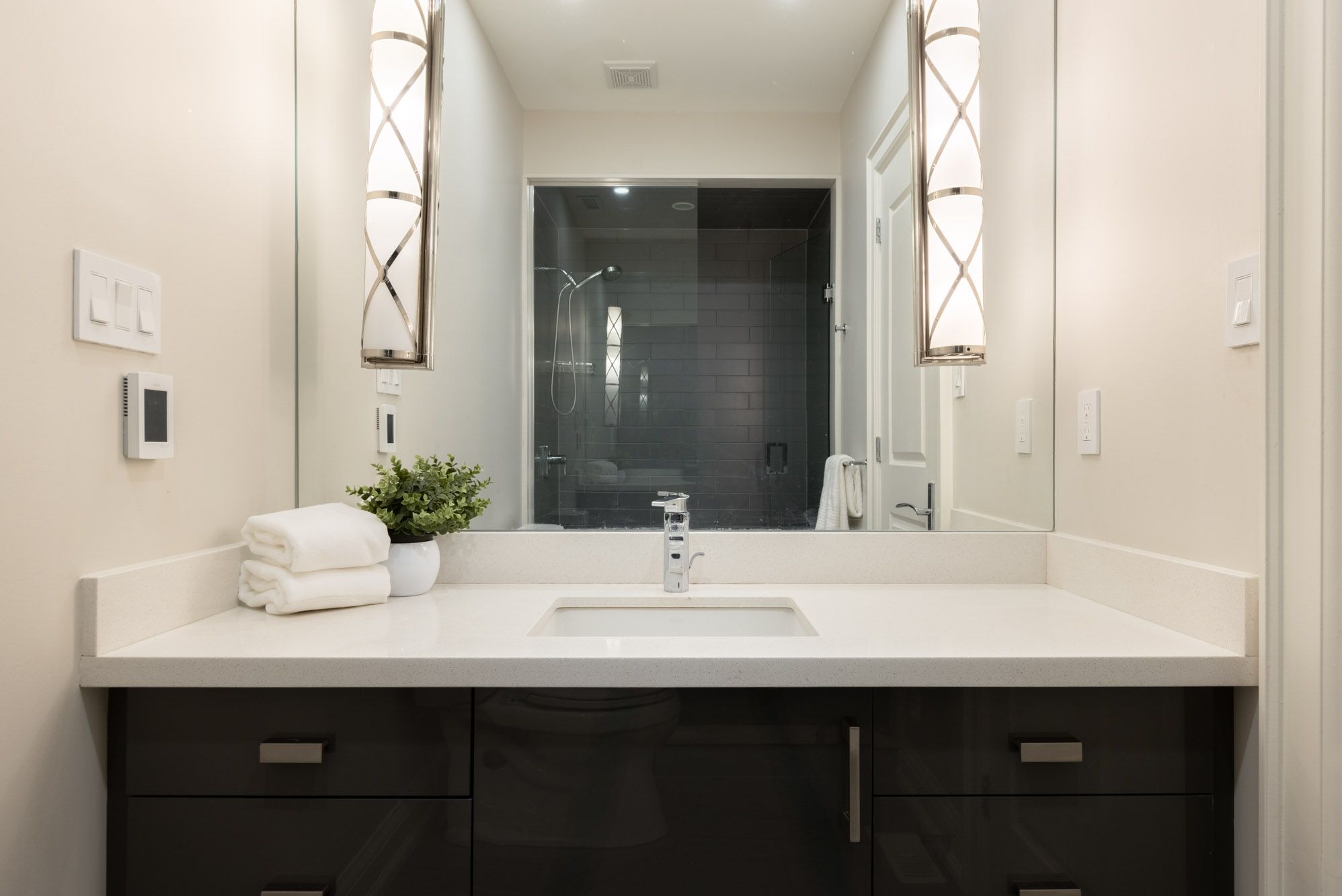 • Custom design with a stunning showcase kitchen and discreet prep area.