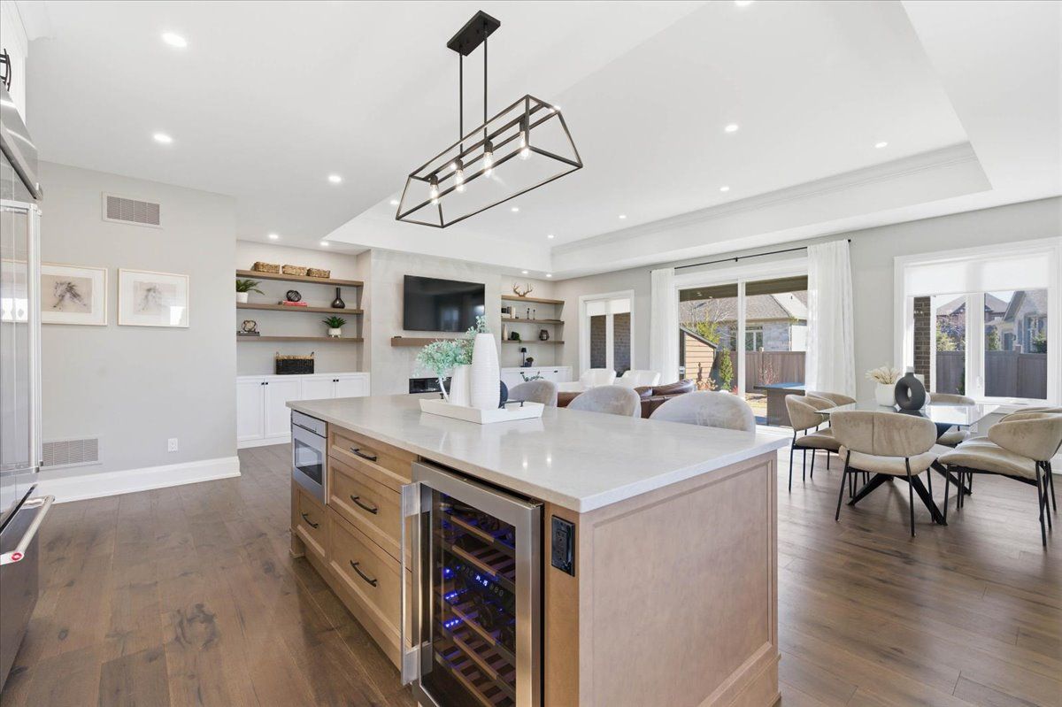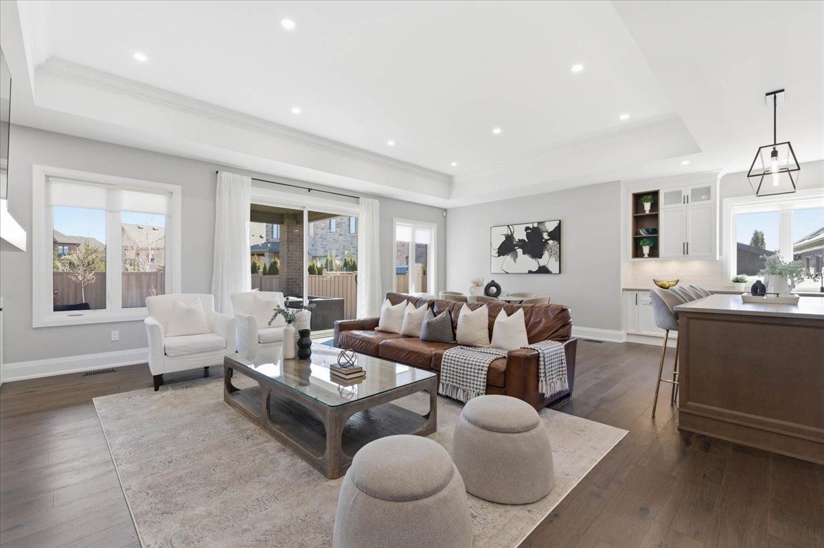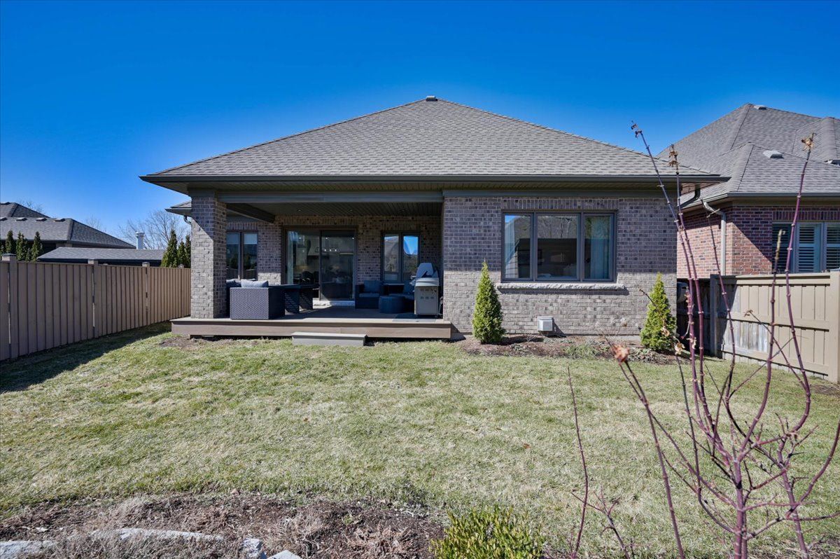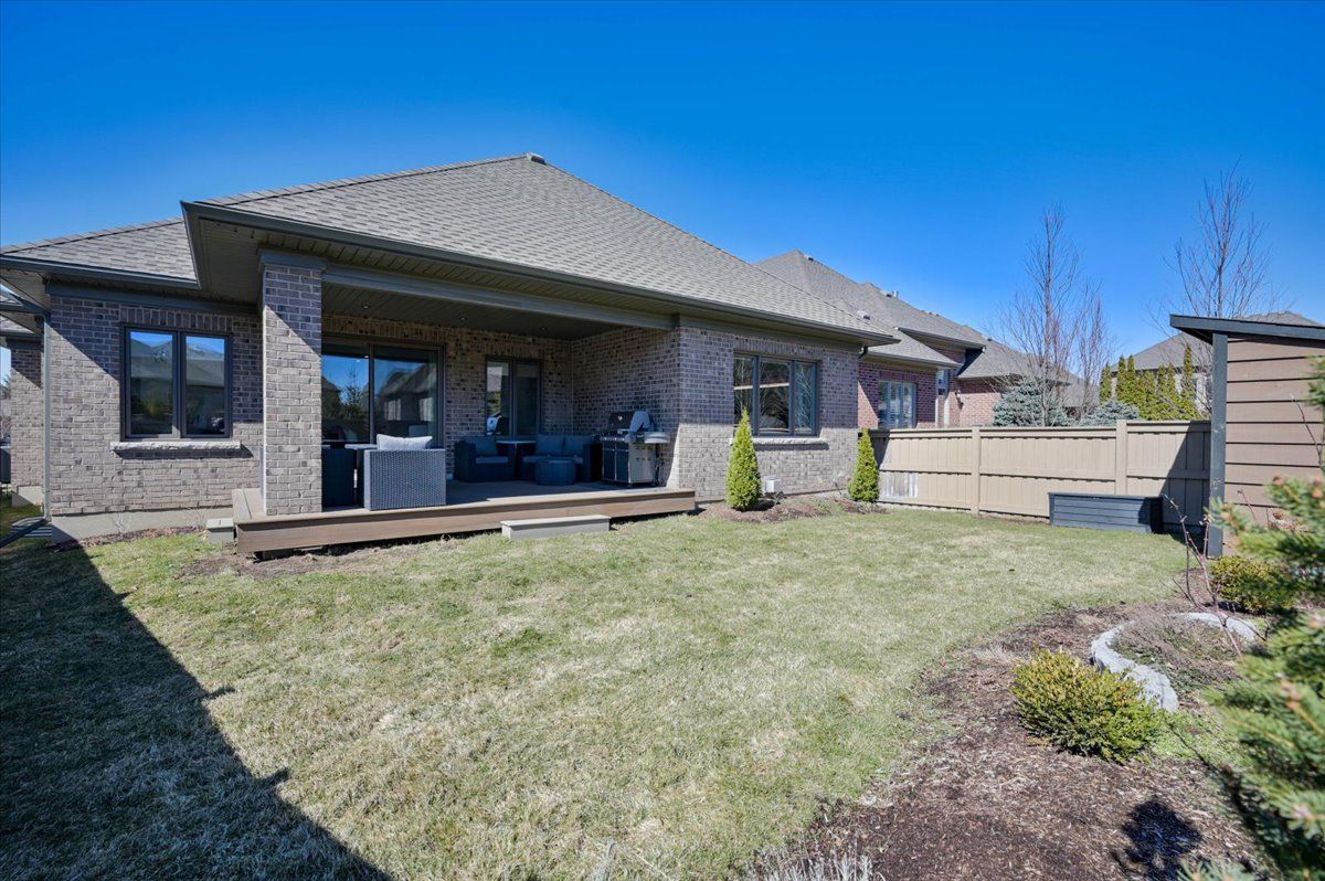Some homes are built to impress. This one was built to be lived in. Tucked into deer ridge estates, this grason-built bungalow carries a strong reputation, and it shows the moment you enter. Everything here feels intentional, with an elevated sense of luxury throughout. The main floor offers three bedrooms, including two with their own ensuites, along with a powder room finished with clean, refined details. The primary suite features double vanities, glass shower finishes, and modern lines that create a calm, retreat-like atmosphere. Hardwood floors, tray ceilings, and natural light enhance the space without sacrificing comfort. The kitchen is designed exactly how it should be, with two-tone cabinetry, an elegant, uniquely laid subway tile backsplash, quartz countertops, and custom lighting, all opening seamlessly into the main living area. With over 3,400 sq ft of finished living space across two levels, plus an additional 1,000 sq ft of storage, there is ample room for a growing family. The lower level continues with 9-foot ceilings, a fourth bedroom with walk-in closet, a full bathroom, and a spacious living area that feels like a true extension of the home. Outside, a covered porch leads to a private deck with pot lights, complemented by a new shed for added storage. Located steps from the walter bean grand river trail and minutes to the prestigious deer ridge golf club, this home is surrounded by nature, mature trees, and a highly sought-after neighbourhood known for its quiet streets and lasting appeal.