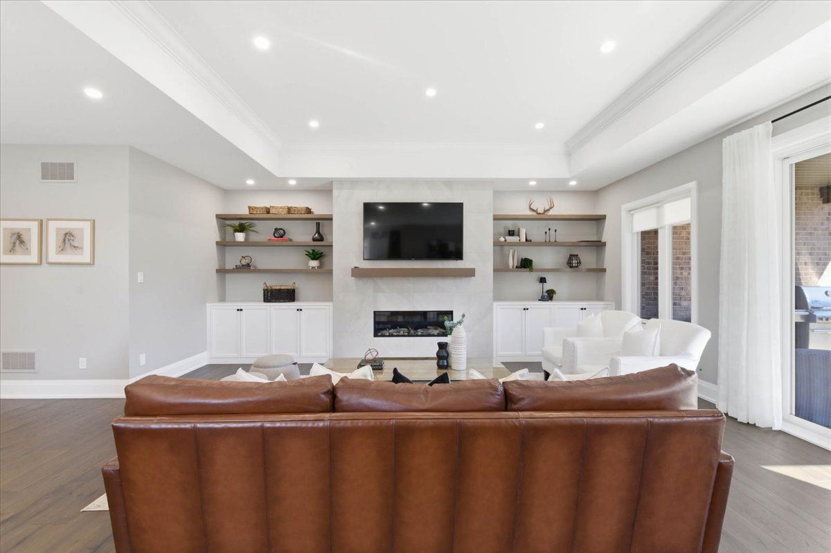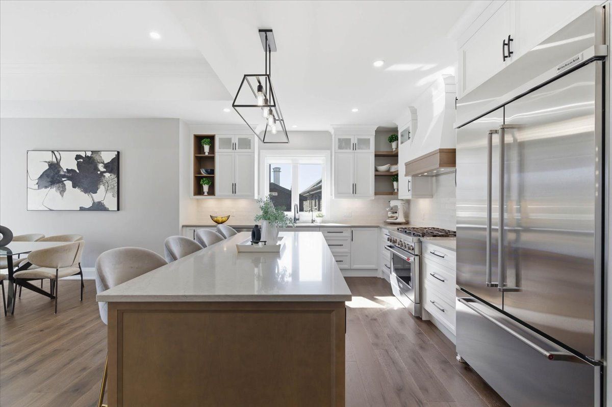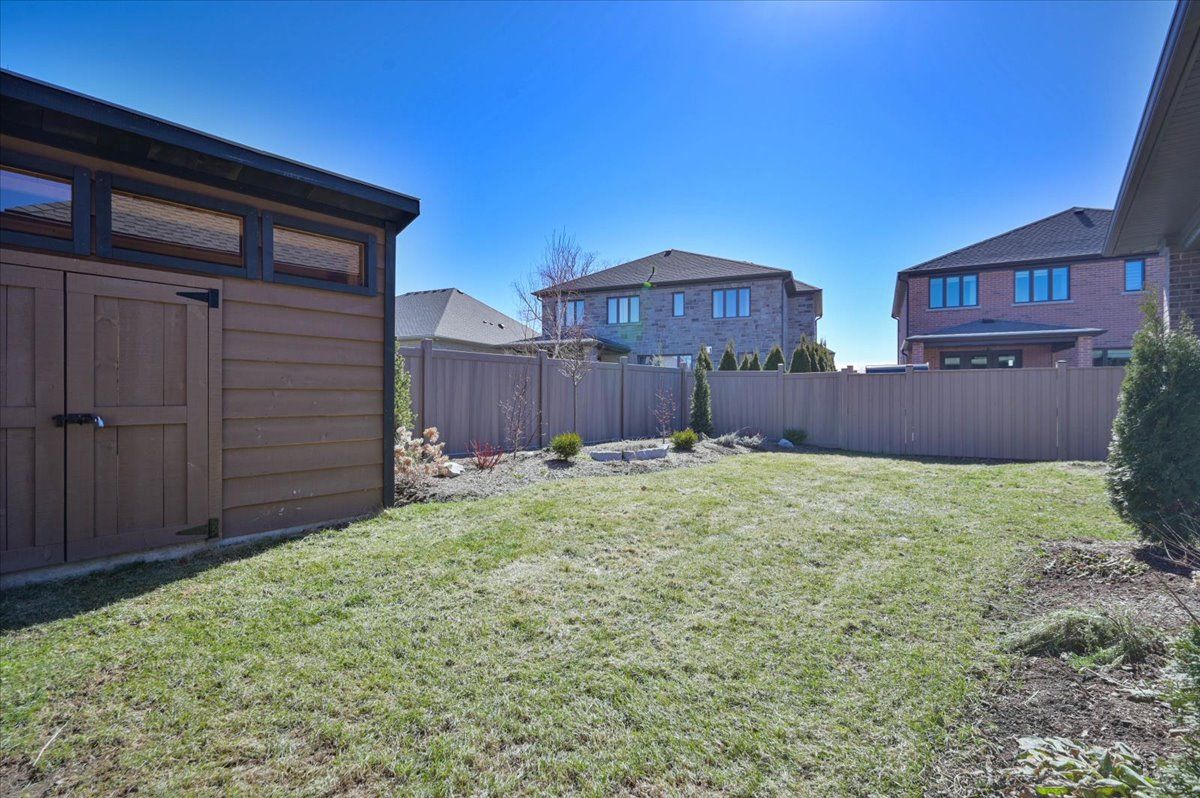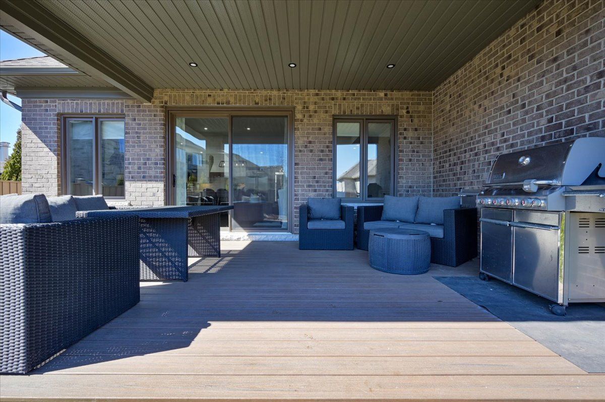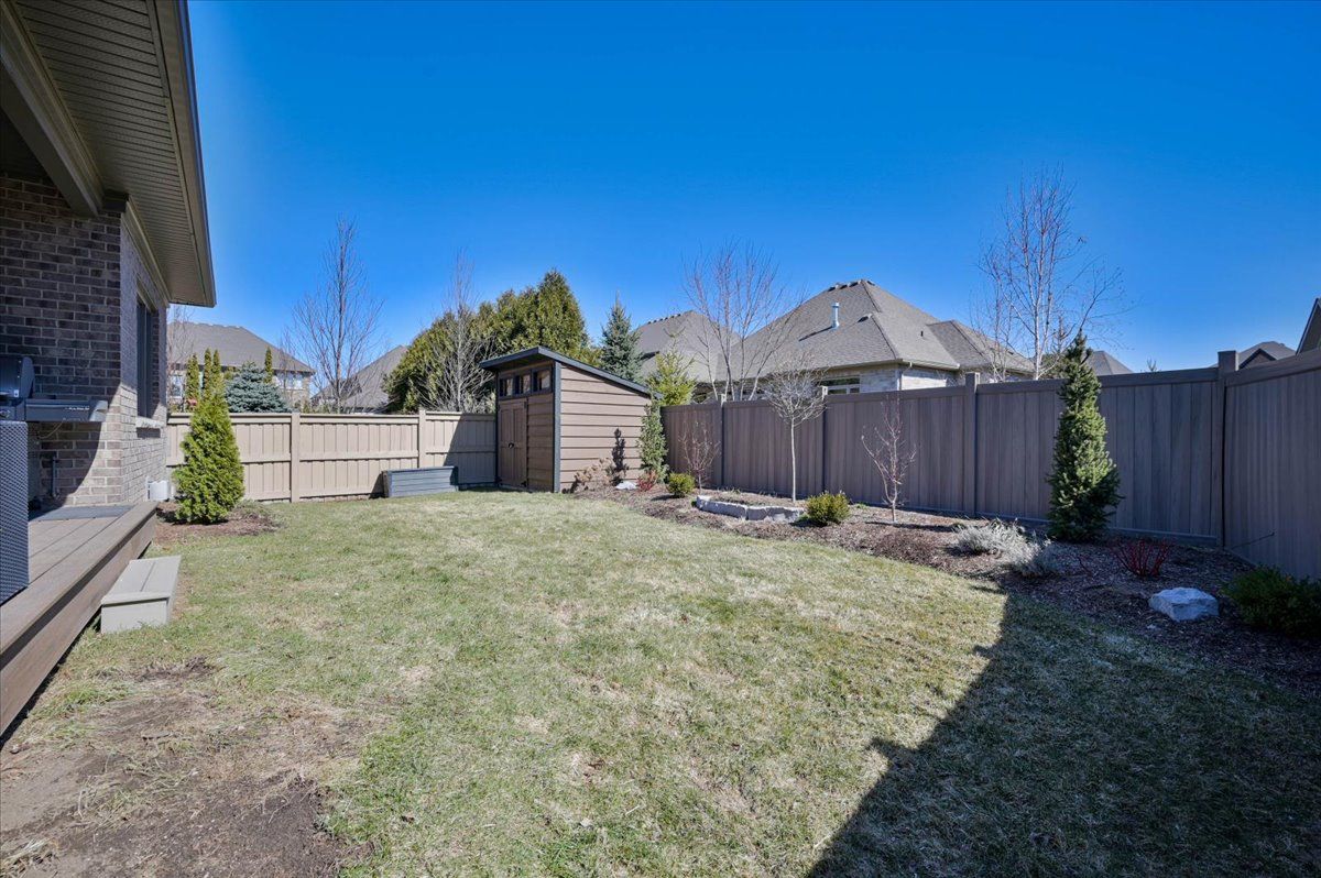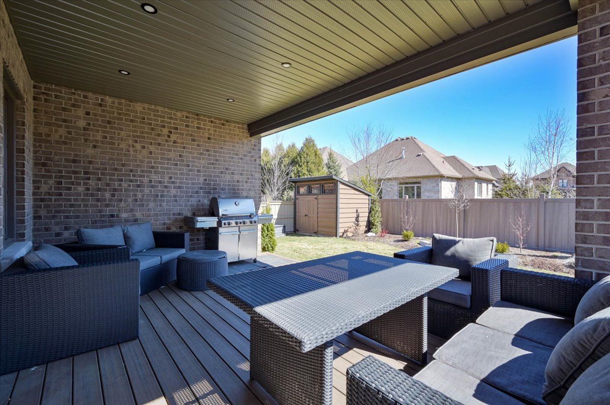 Some homes are built to impress. This one was built to be lived in. Tucked into deer ridge estates, this grason-built bungalow carries a strong reputation, and it shows the moment you enter. Everything here feels intentional, with an elevated sense of luxury throughout. The main floor offers three bedrooms, including two with their own ensuites, along with a powder room finished with clean, refined details. The primary suite features double vanities, glass shower finishes, and modern lines that create a calm, retreat-like atmosphere. Hardwood floors, tray ceilings, and natural light enhance the space without sacrificing comfort. The kitchen is designed exactly how it should be, with two-tone cabinetry, an elegant, uniquely laid subway tile backsplash, quartz countertops, and custom lighting, all opening seamlessly into the main living area. With over 3,400 sq ft of finished living space across two levels, plus an additional 1,000 sq ft of storage, there is ample room for a growing family. The lower level continues with 9-foot ceilings, a fourth bedroom with walk-in closet, a full bathroom, and a spacious living area that feels like a true extension of the home. Outside, a covered porch leads to a private deck with pot lights, complemented by a new shed for added storage. Located steps from the walter bean grand river trail and minutes to the prestigious deer ridge golf club, this home is surrounded by nature, mature trees, and a highly sought-after neighbourhood known for its quiet streets and lasting appeal.