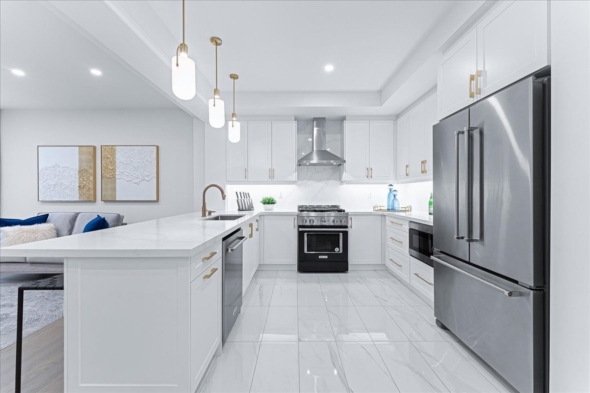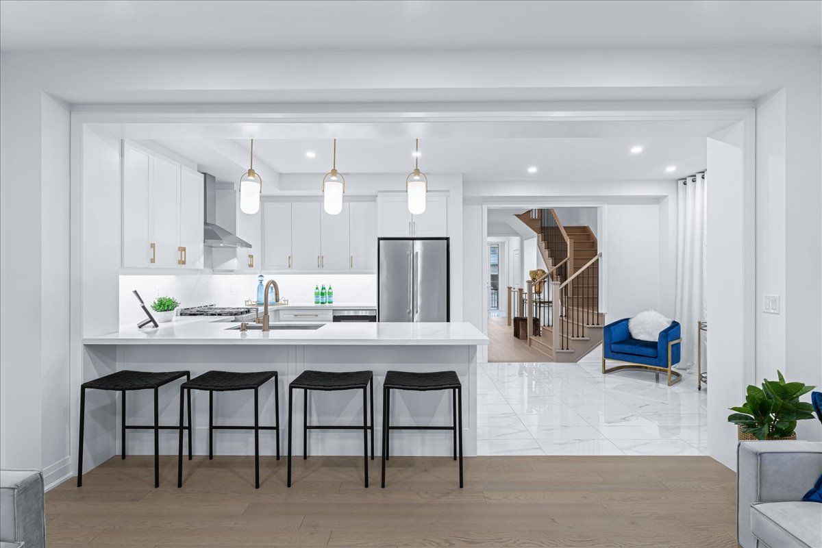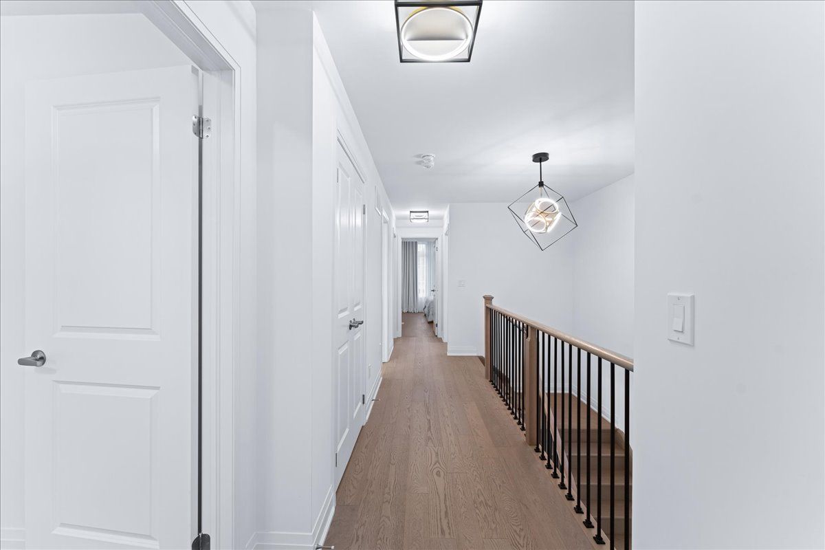 Your search ends here with this stunning 4-bedroom, 3-bathroom semi-detached gem that shows better than a model home. Situated in a highly sought-after neighbourhood, this residence features high-end upgrades including 9ft smooth ceilings, elegant crown moulding, and gleaming hardwood floors throughout. The heart of the home is the modern chef's kitchen, boasting granite countertops, stainless steel appliances, and a breakfast bar that walks out to a premium, fully fenced, 136ft deep lot perfect for outdoor entertaining and play. Relax in the spacious family room by the cozy fireplace, or retreat upstairs to the primary suite featuring custom closet built-ins and a spa-like 5-piece ensuite. With convenient second-floor laundry, pot lights, and a location steps away from schools, parks, and shopping, this home offers the perfect blend of style and luxury. Truly a must-see!