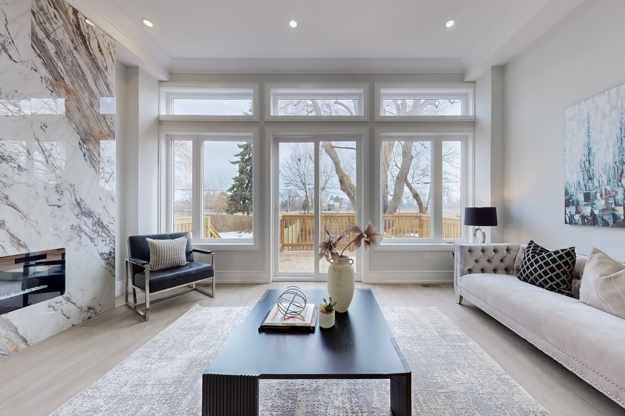 • Open concept design with 12ft ceilings and floor to ceiling windows.