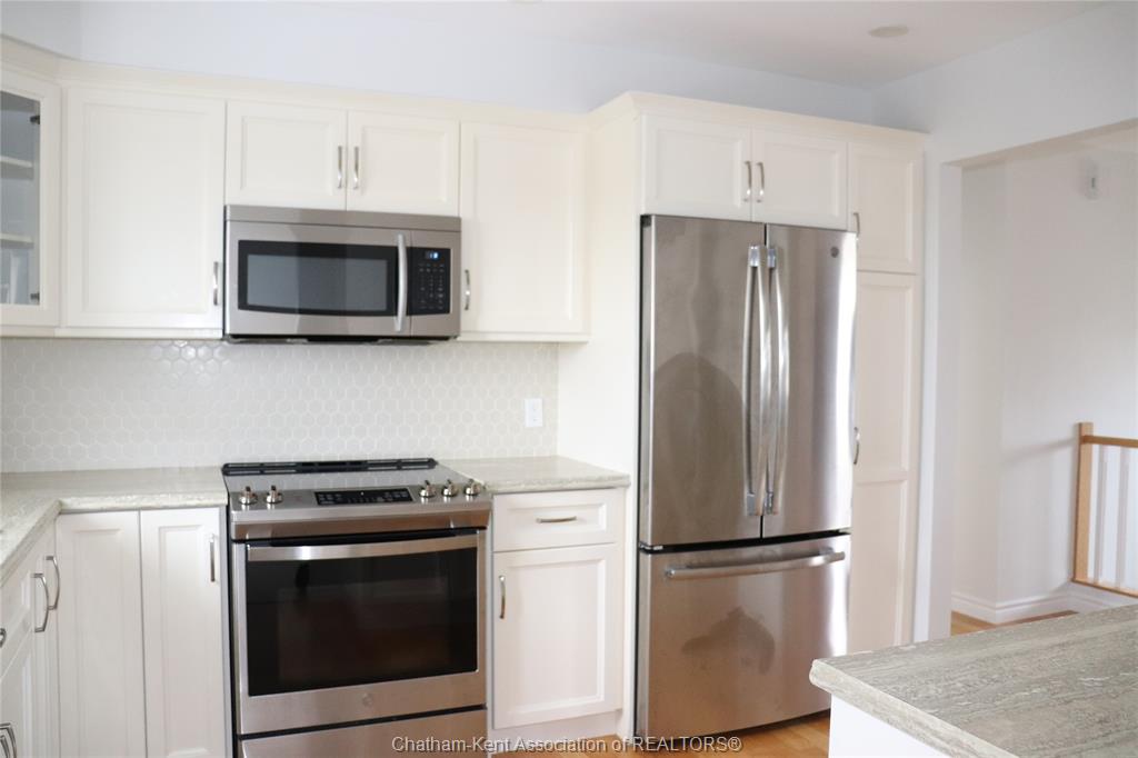This bi-level home is located in blenheim's east side alexander heights subdivision. Its a great neighbourhood for family as there is an adjacent park with children's play area and greenspace. The home is inviting and warm . Large foyer entrance leading up or down to 2 finished levels. Rooms are mostly a generous size. The lower family room has a gas fireplace and is bright with windows facing to the west. There is a two tiered deck at rear with a fully enclosed back yard for privacy. The yard backs to a farmers field. Sold as is. The buyers to confirm the cost of rental hvac and hot water heater.
