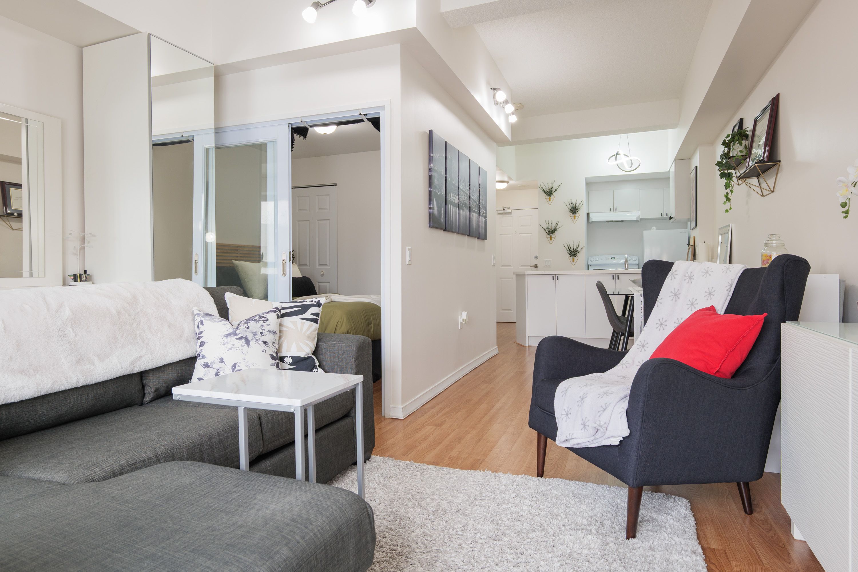 • Spacious open-concept layout with updated kitchen and quartz countertops.