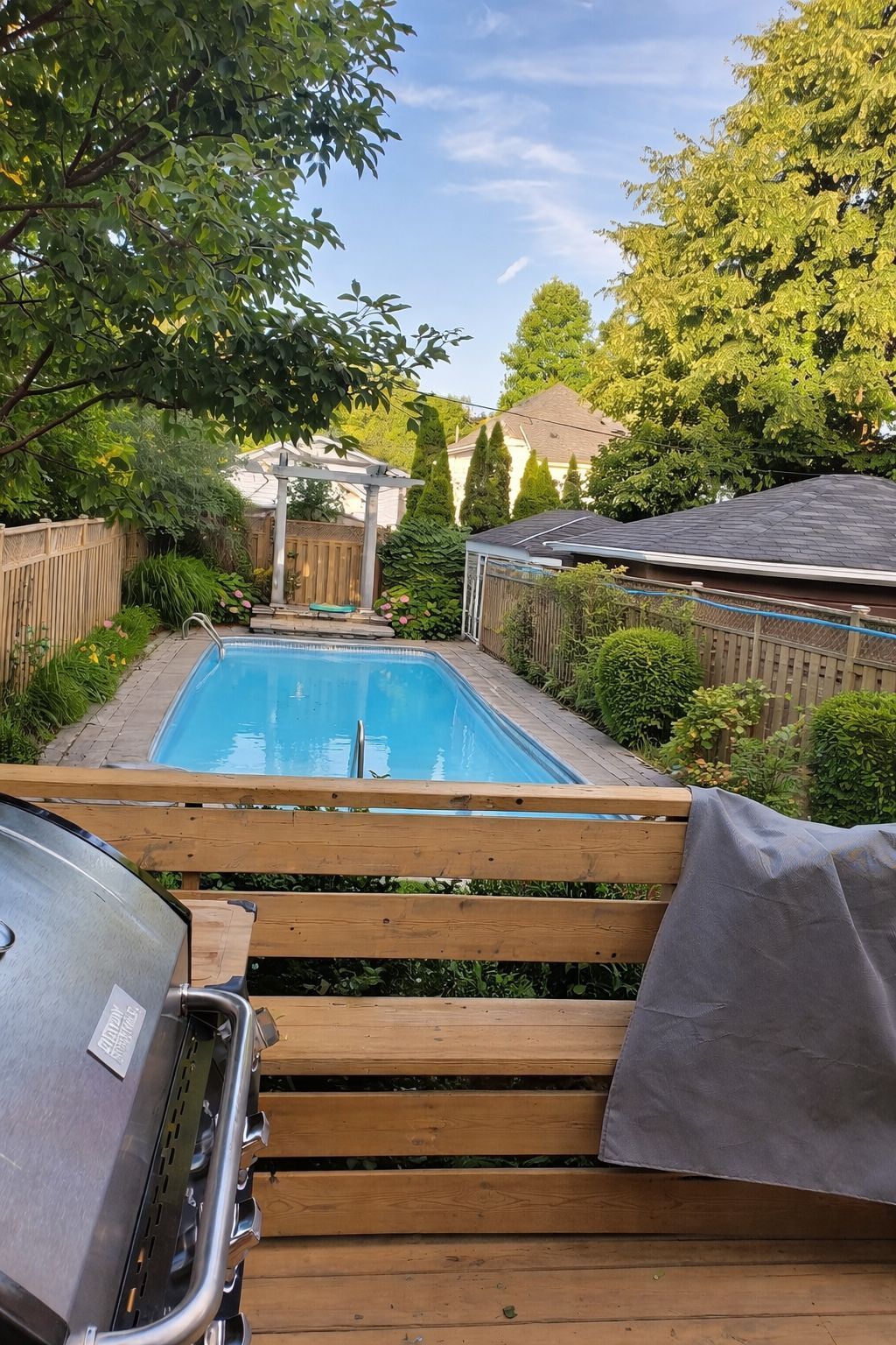 • Private backyard retreat featuring an in-ground pool and spacious deck.