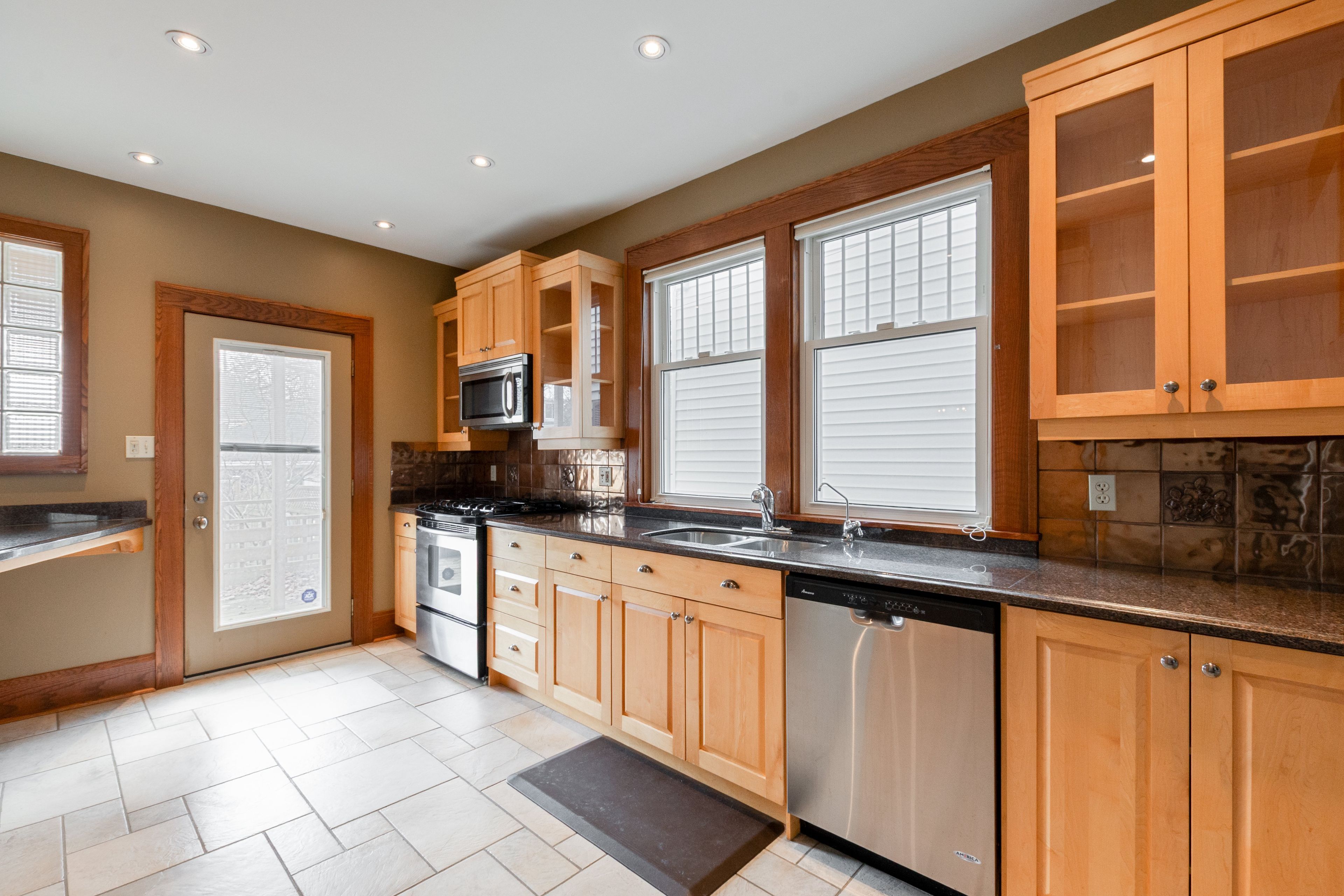 • Gourmet kitchen with custom cabinetry and granite countertops.