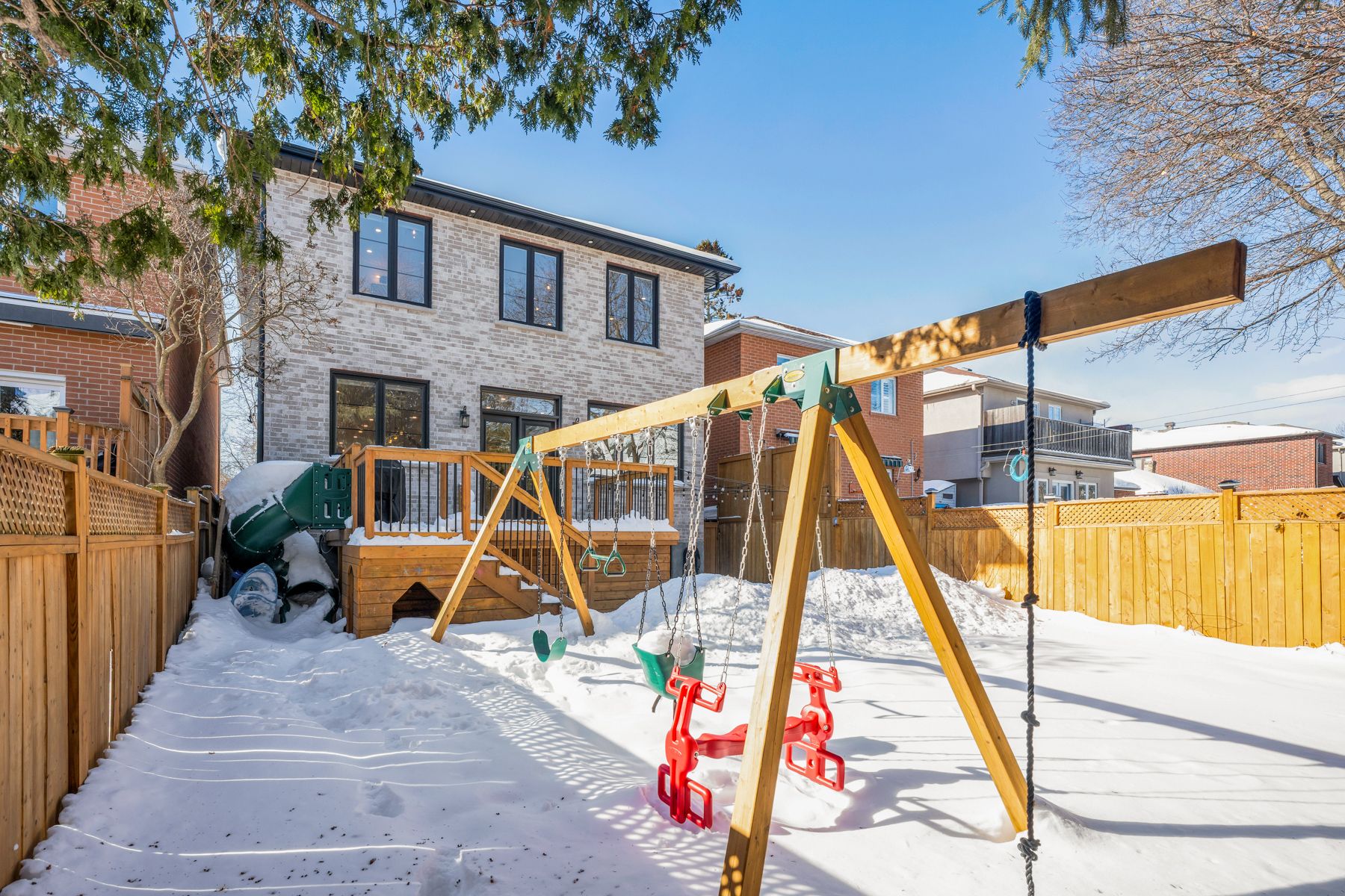 Beautifully finished 4+1 bedroom executive home, built in 2023, located on a quiet, sought-after street in prestigious parkview hills. This warm and welcoming residence offers exceptional space, abundant natural light, and an ideal layout for modern family living. The main level features expansive principal rooms and a stunning chef's kitchen with quartz countertops, stainless steel appliances, and a large centre island with breakfast bar, seamlessly connecting to inviting living and dining areas-perfect for everyday comfort and entertaining. The upper level is thoughtfully designed with three additional well-proportioned bedrooms and a spacious primary retreat featuring a walk-in closet and a luxurious 6-piece ensuite with heated floors, creating a private and comfortable space to unwind. The finished lower level provides flexible additional living space with an extra bedroom, ideal for guests, recreation, or a home office, and includes a bathroom with heated floors. Added comfort continues with heated flooring in the mudroom. Outdoors, enjoy a beautifully landscaped backyard with a generous deck, extending the living space for entertaining or relaxing. Situated directly across from the highly regarded presteign heights elementary school, this home enjoys a calm, low-traffic setting in one of toronto's most close-knit communities. Surrounded by ravines on three sides, parkview hills offers quiet, local-only traffic while remaining conveniently connected to city amenities. A turnkey home offering timeless appeal, thoughtful design, and exceptional livability.