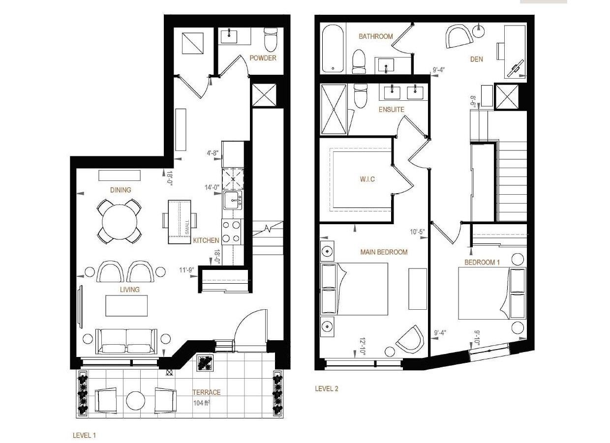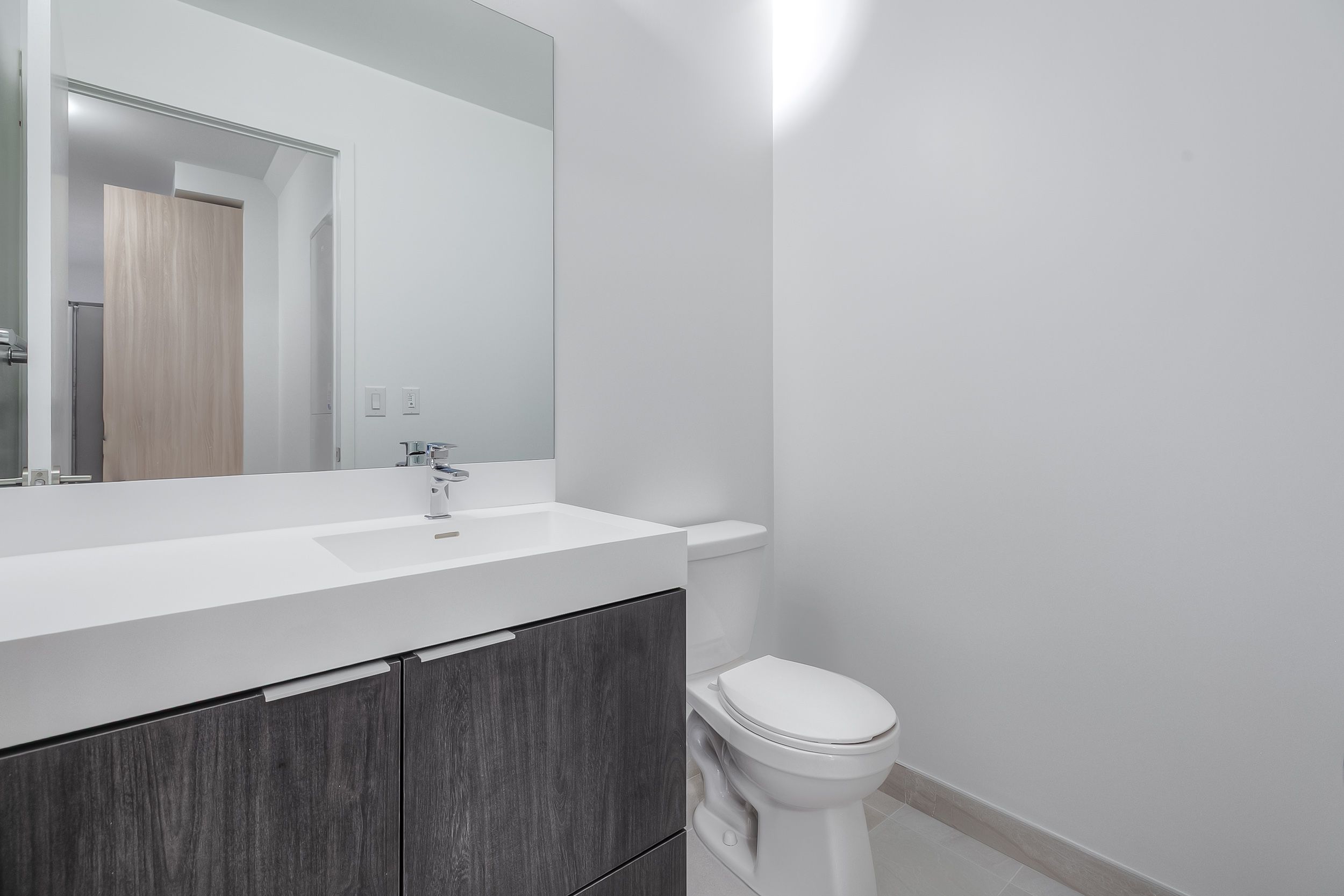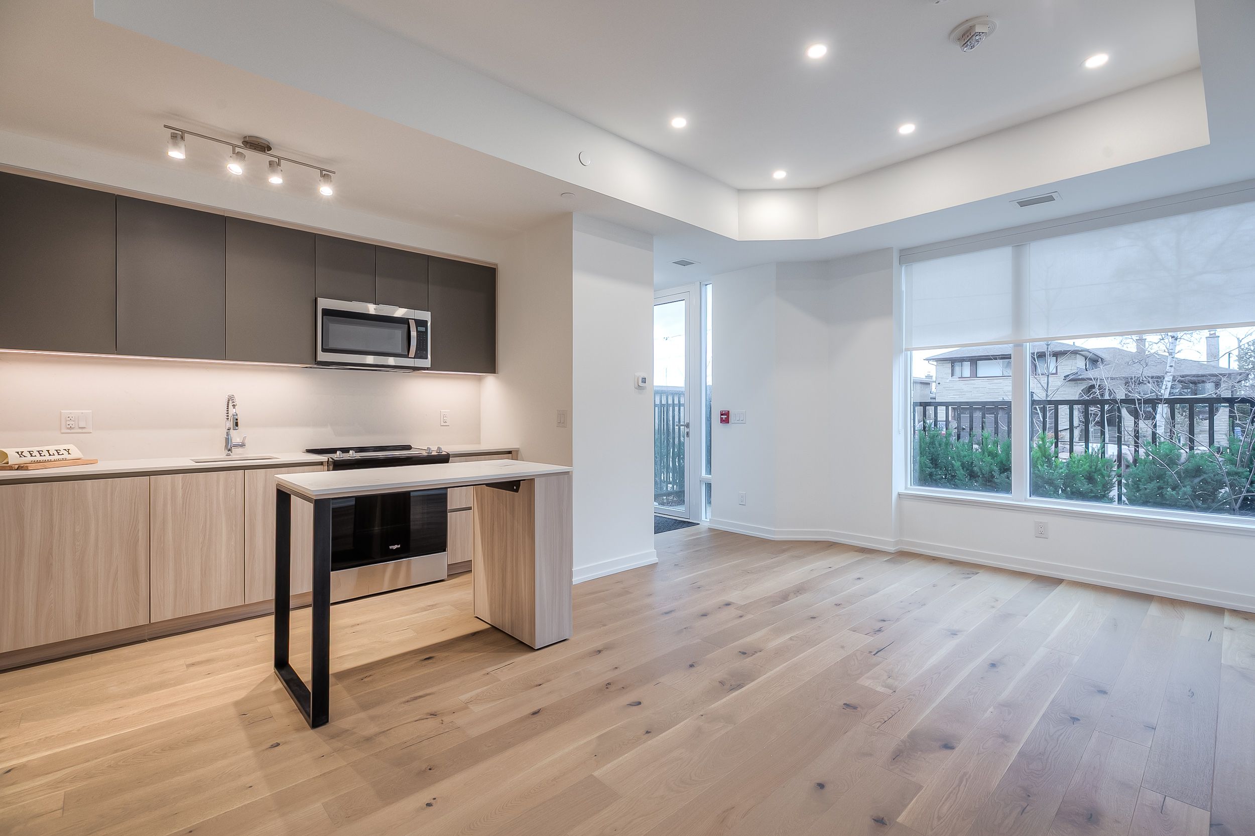 Vacant move in ready 1254sqft unfurnished professionally managed two-level townhouse-like 2-bedroom 2. 5 bathroom plus den suite in the keeley: a new development overlooking the lake of downsview park and walking distance to downsview train & subway stations (little as ~20 minutes to downtown)! Parking and locker included. Layout is uniquely two levels, with 9' height first-level consisting of open plan kitchen/living area walking out to street-facing patio/entry, 2pc washroom, and laundry. Second-level consisting of primary bedroom (with 4pc bath/his and hers sinks, walk in closet, street-facing floor to ceiling windows) and second bedroom (with built-in closet, street-facing view), and den/study across from 4pc bathroom. Floor plans among listing images and attached to listing. Features and finishes include: engineered wood flooring throughout, stone countertops, stone backsplash, whirlpool stainless steel appliances, blomberg laundry machines, two-tone kitchen cabinets, tiled tub & shower stalls, pot lights, and more! || appliances: fridge, electric range, range microwave, dishwasher, washer, dryer. All existing window coverings. All existing light fixtures. || building amenities: refer to listing images to see all! || utilities: metering of utilities by carma.