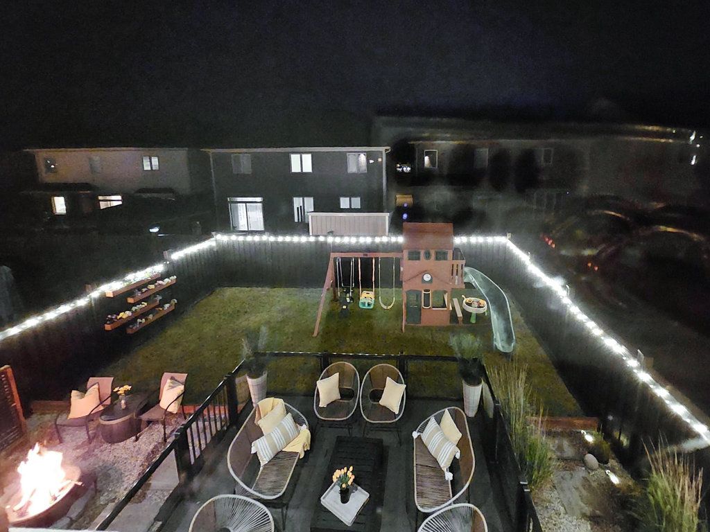 • Private backyard with a play area, firepit, and stylish deck for gatherings.