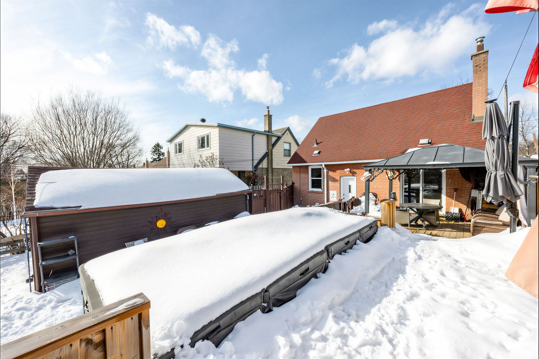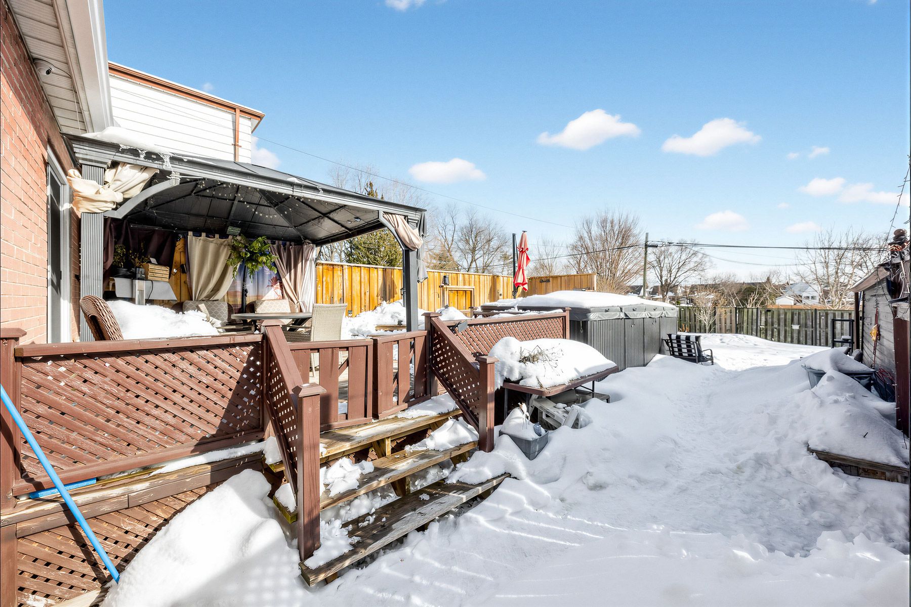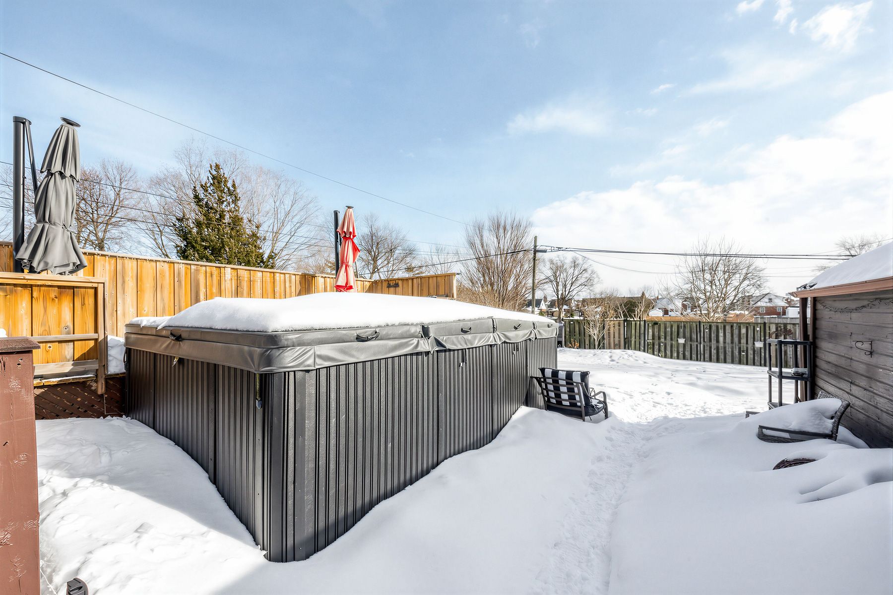 • Spacious fenced backyard with a swim spa pool and deck.