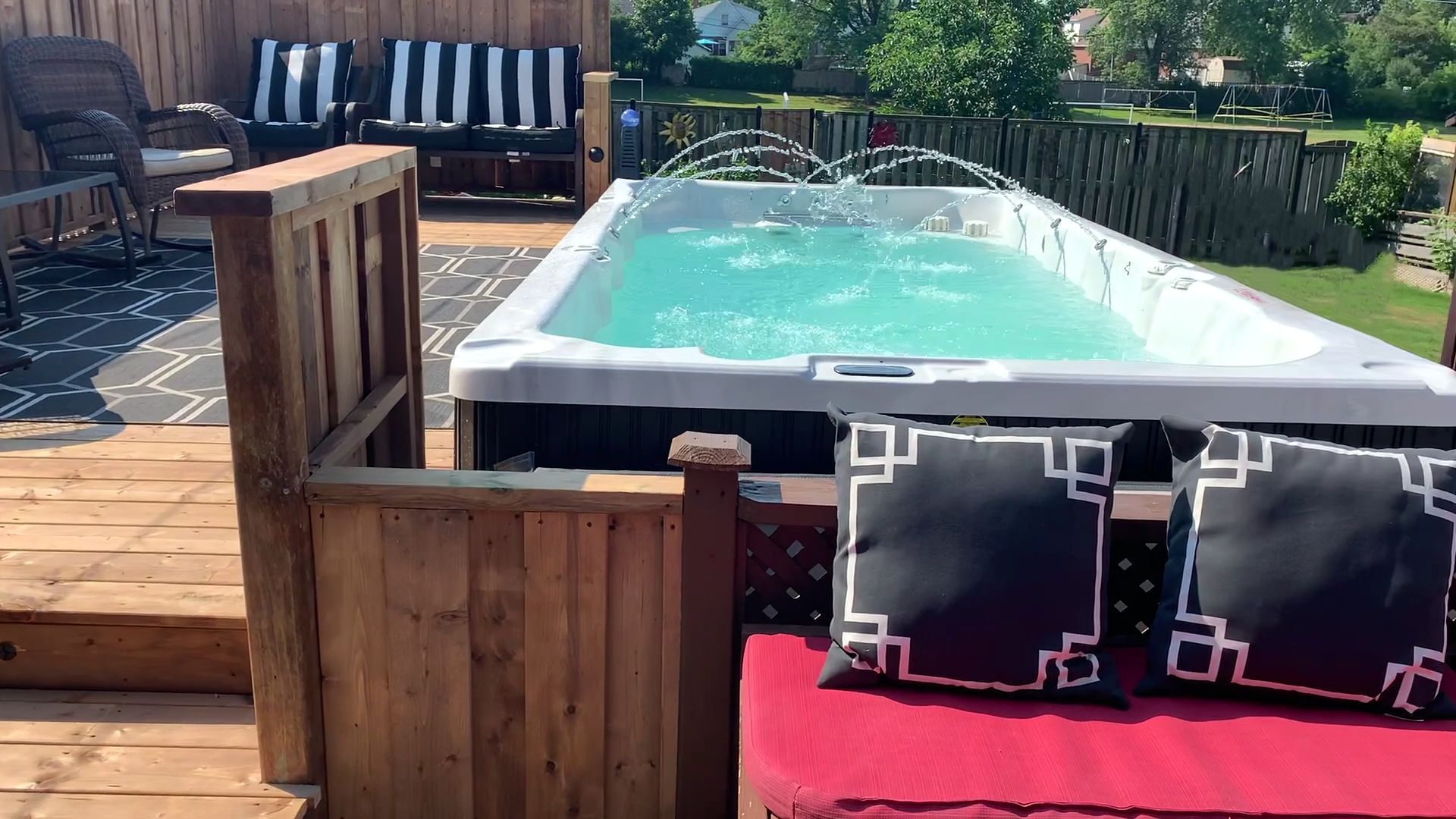 • Spacious fenced backyard features a swim spa pool and outdoor deck.