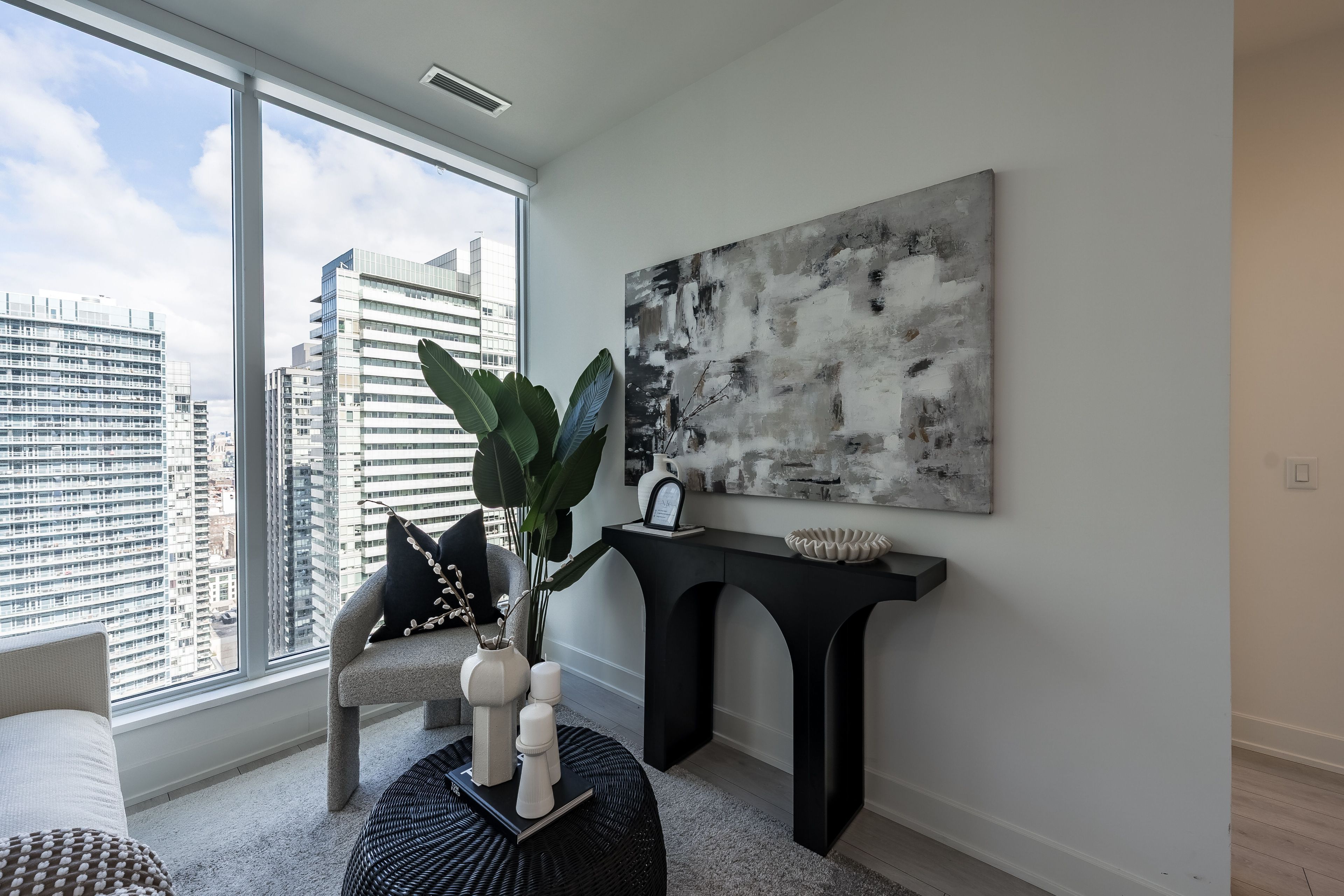 • Sleek 2-bedroom + den suite with stunning city views from the 35th floor.