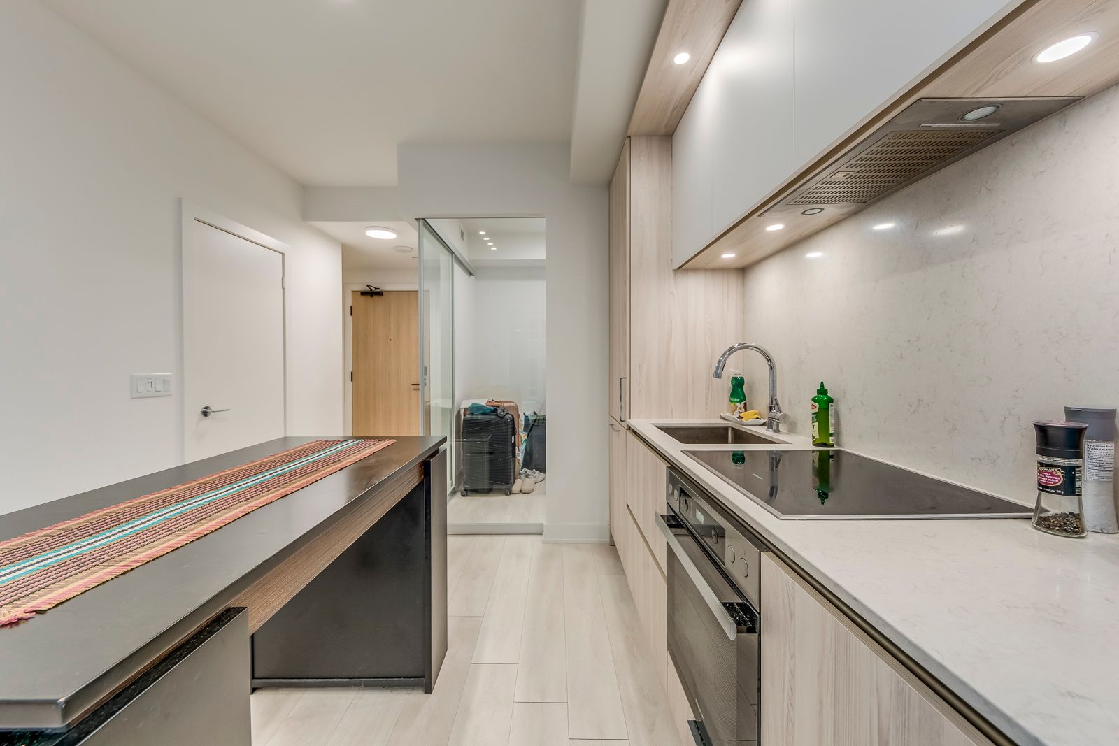 Welcome to nobu residences-an internationally renowned address synonymous with luxury and sophistication. This beautifully designed suite showcases a sleek, contemporary aesthetic with clean lines and elegant finishes throughout. Thoughtfully designed and exceptionally spacious, this 1-bedroom plus den layout features two full bathrooms and offers the flexibility to function as a true 2-bedroom, with a generously sized den that can easily serve as a second bedroom. The open-concept floor plan is complemented by soaring ceilings, creating a bright, airy ambiance. Residents of nobu residences enjoy access to an impressive selection of world-class amenities, including a 24-hour concierge, state-of-the-art fitness centre, hot tub, sauna, steam and massage rooms, business and conference facilities, games room, private screening room, elegant dining spaces, and outdoor bbq and lounge areas. Ideally located in the heart of downtown toronto's vibrant king west neighbourhood, this residence offers unparalleled convenience, connectivity, and lifestyle. Experience elevated living at nobu residences.