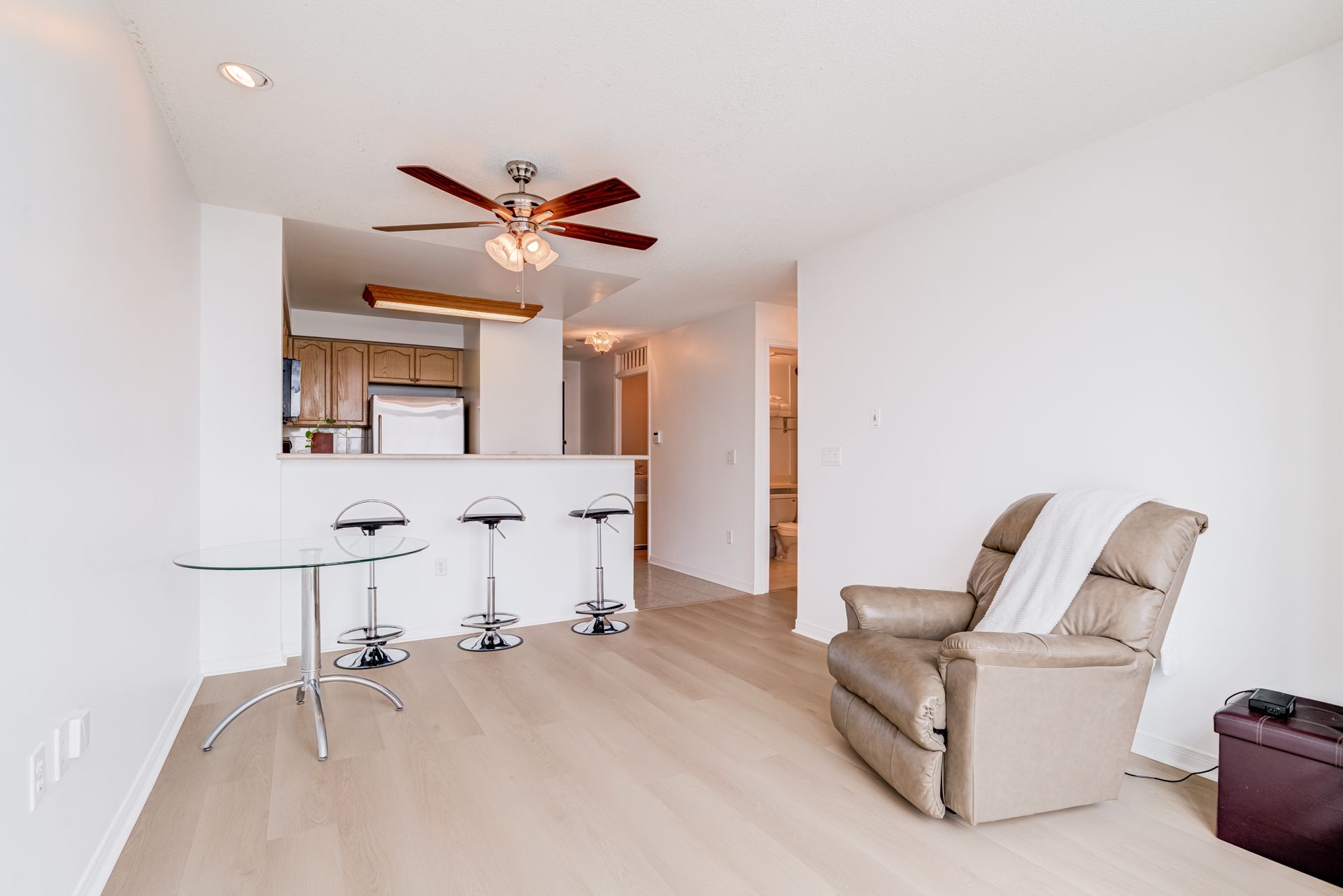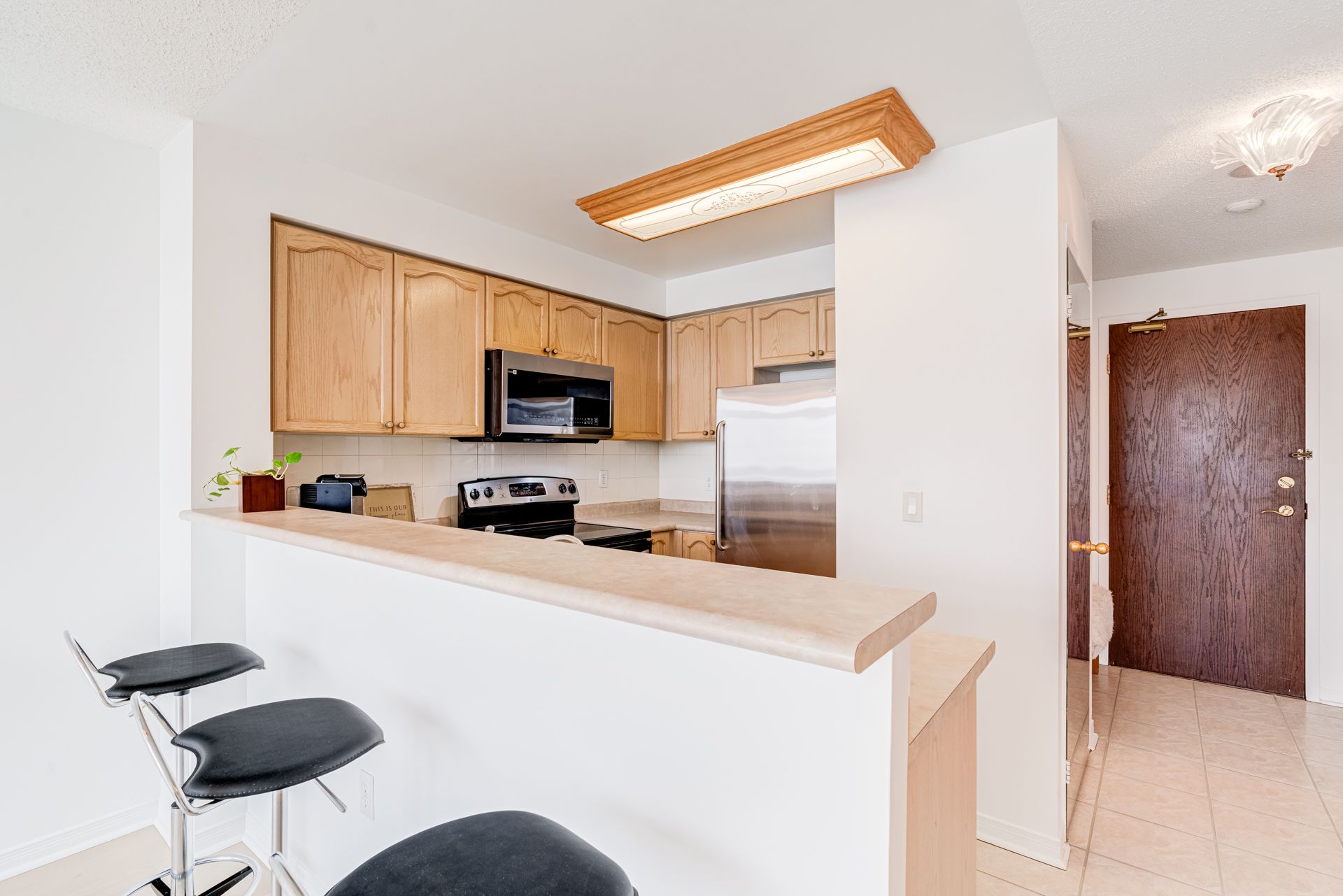 **rare penthouse offering with 2 parking spaces** enjoy the ultimate in privacy with no one above in this bright & well-designed 625 sqft suite. Thoughtfully laid out open concept floor plan maximizes space & function, while large windows fill the unit with natural light. Smart, functional living space featuring a seamless flow between living, dining & kitchen areas. Includes a spacious bedroom, plus a versatile den that can easily be used as a home office, guest space or second bedroom. Walk out to your private balcony to enjoy fresh air & elevated views. Ideally located just minutes to islington subway station or to kipling go station, and easy access to hwy 427 & qew. Close to shopping, restaurants & everyday amenities. Security controlled gate access for the entire complex. Building features a convenient disposal room for larger items such as furniture & appliances. **a rare combination of penthouse living, 2 parking spaces & unbeatable convenience-an opportunity not to be missed!**