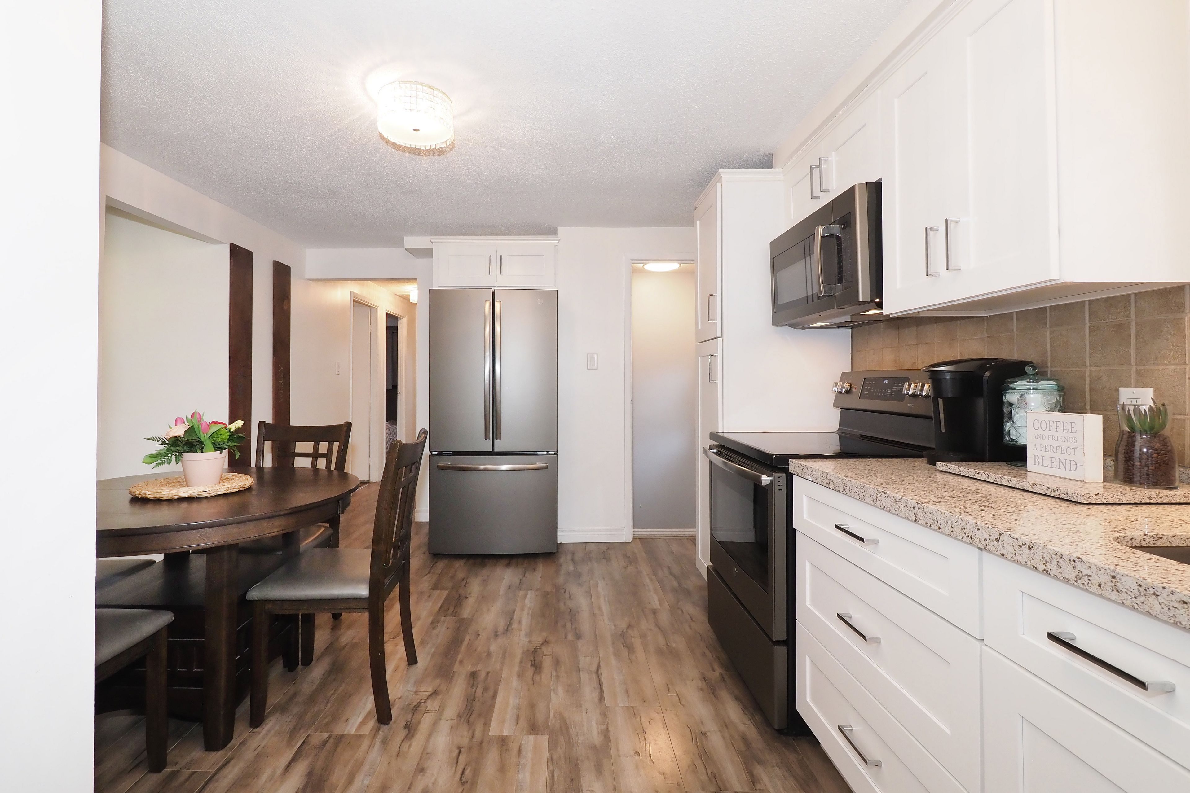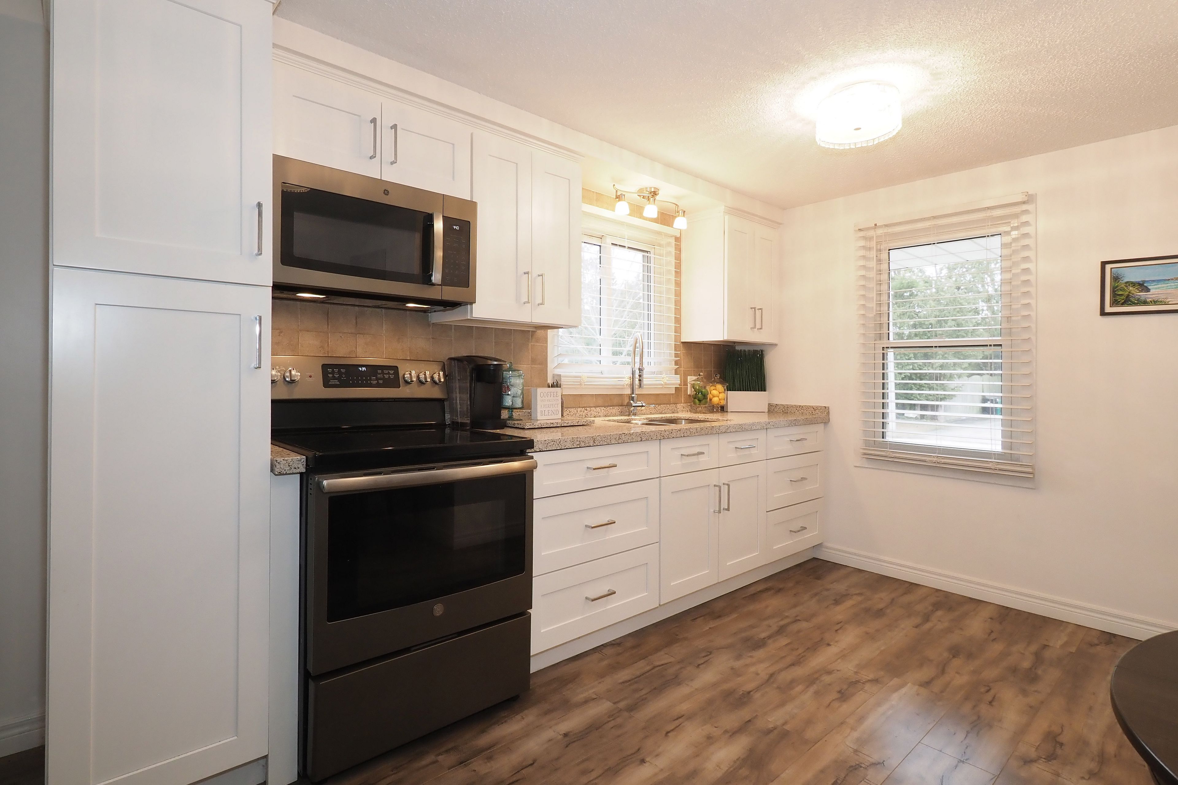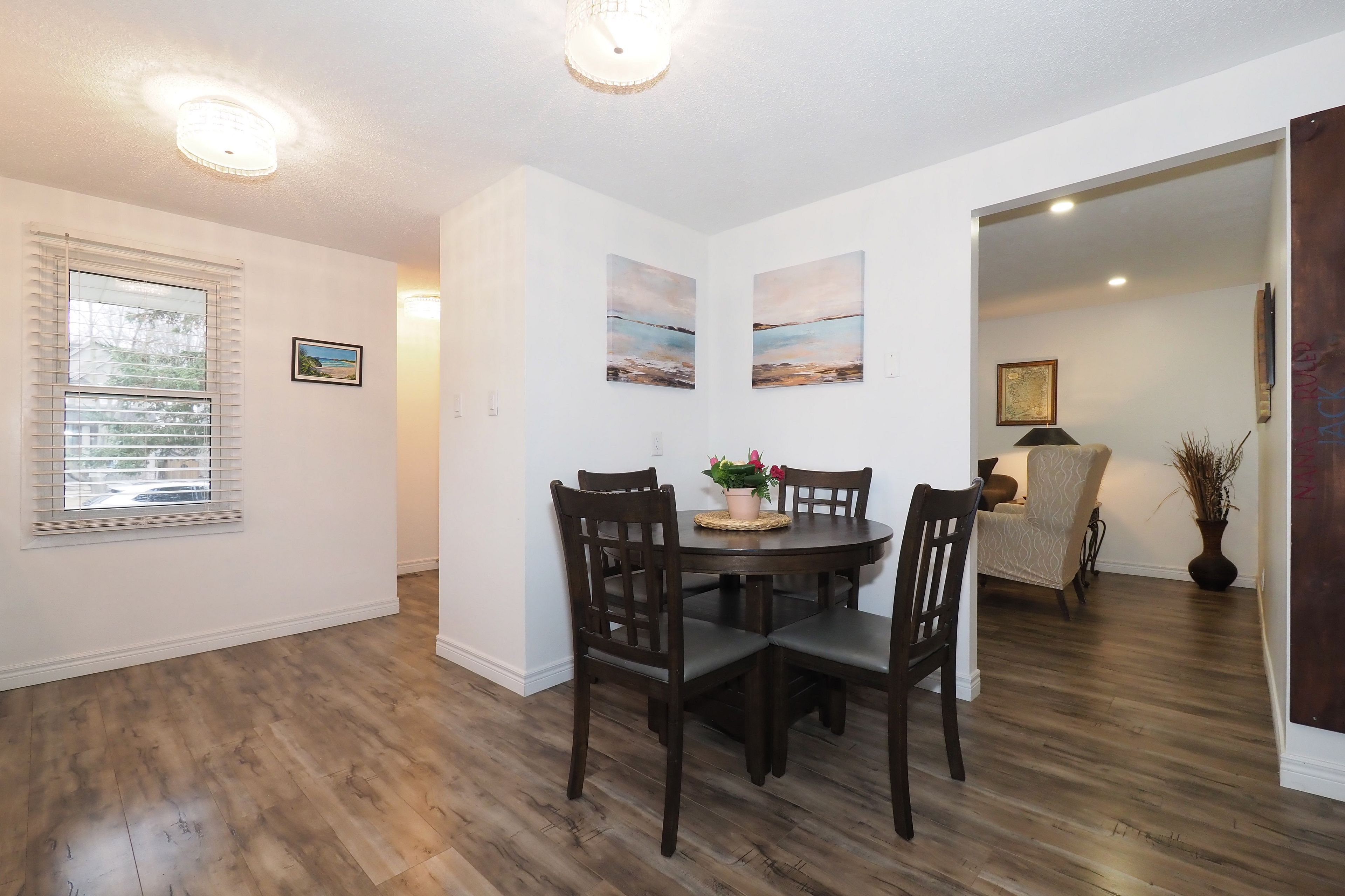 • Bright living room, three bedrooms, and inviting eat-in kitchen updated in 2019.