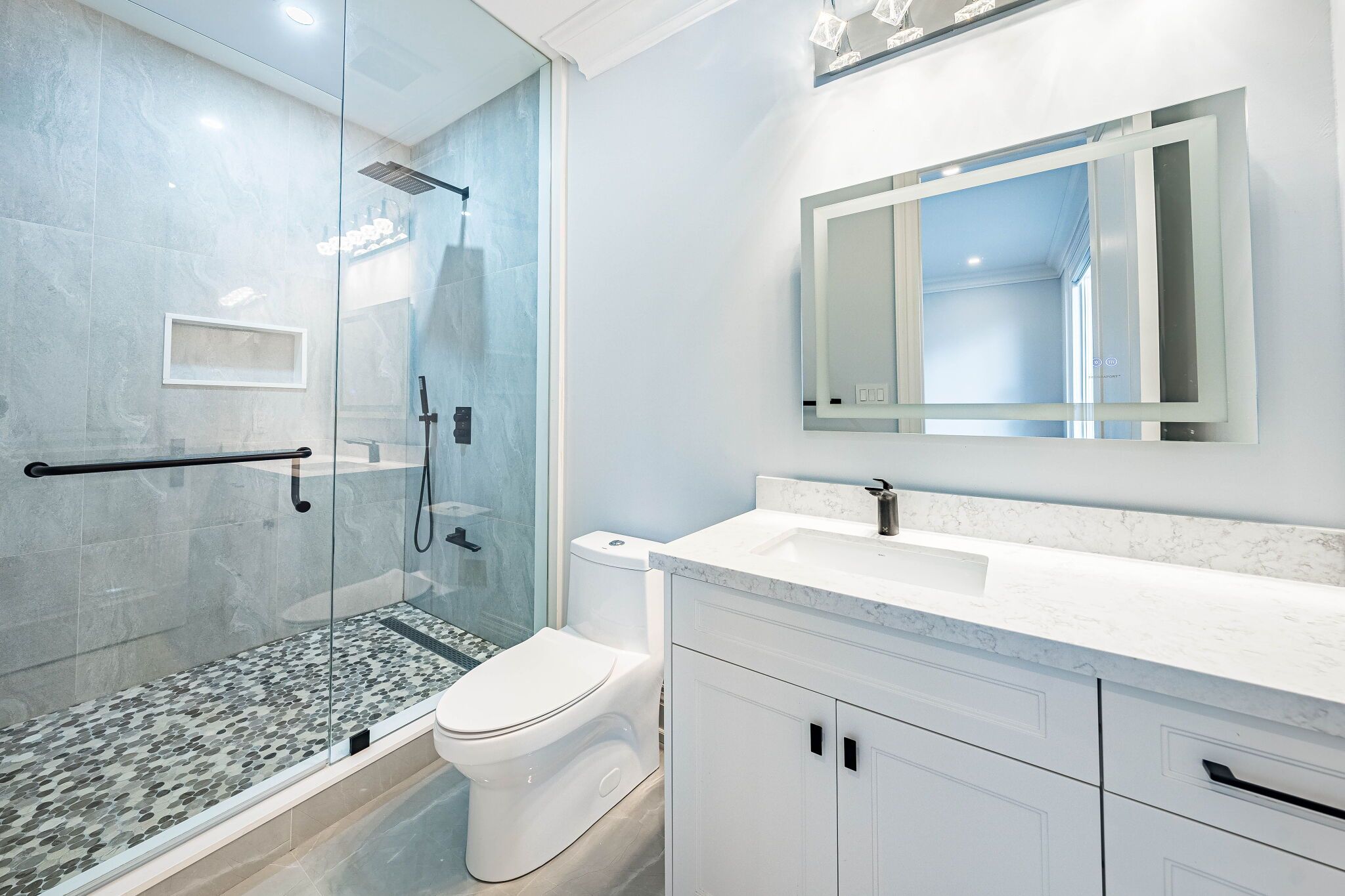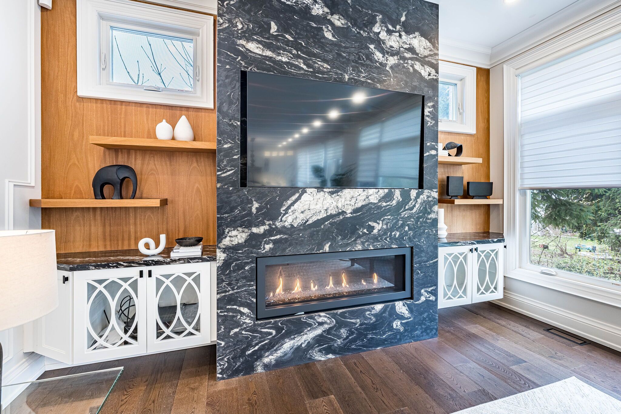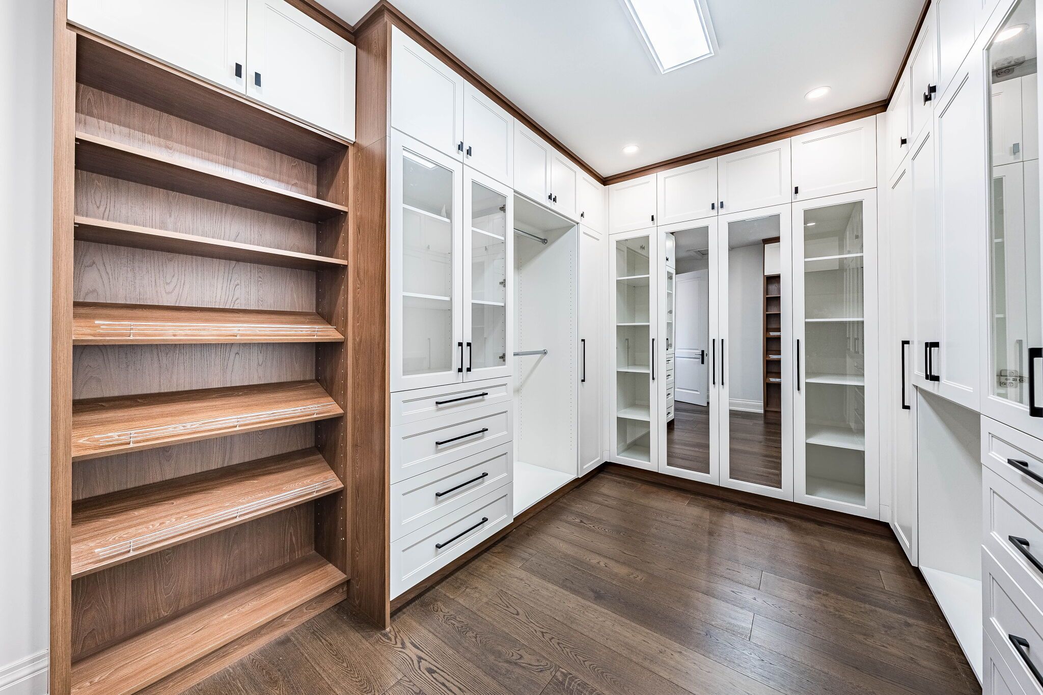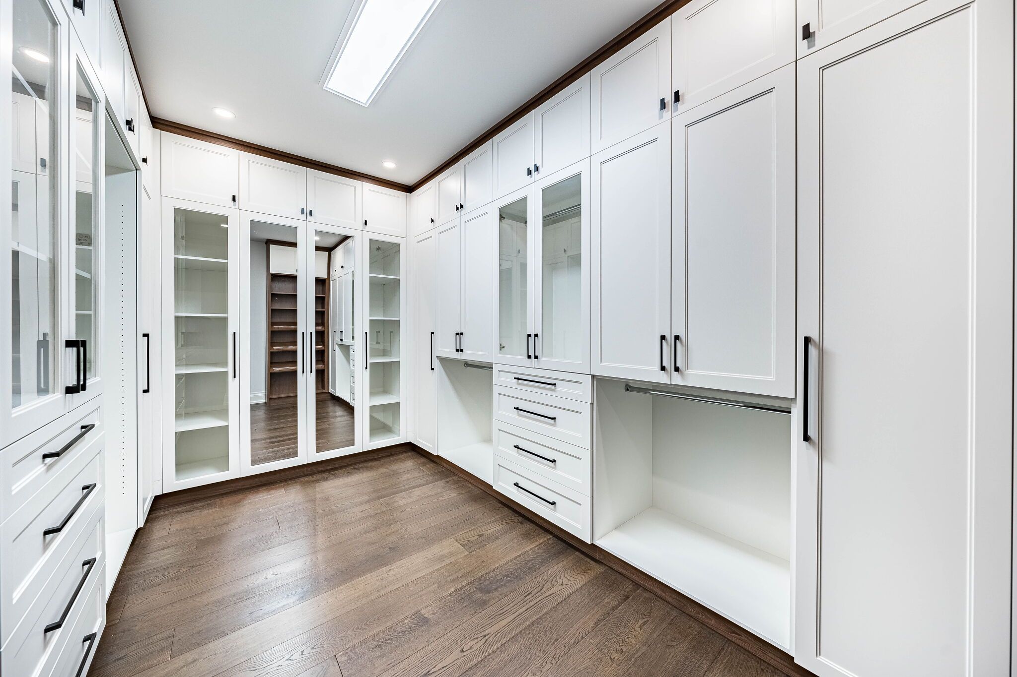 An exceptional custom-built masterpiece in prestigious newtonbrook east. Welcome to this remarkable custom-built (2022) residence set on a rare irregular lot with 65 ft frontage expanding to 124 ft deep. Offering approx. 7,000 sq. Ft. Of total living space, this home blends timeless elegance with modern luxury. A striking indiana stone façade, grand precast entrance, and custom double doors create a commanding presence, complemented by a double-car garage and an extended driveway accommodating up to 6 vehicles. Inside, a breathtaking 20-ft foyer and soaring 10-ft ceilings on the main and second floors (9-ft in basement) create a grand, airy atmosphere. An in-home elevator provides seamless access to all levels, enhancing both convenience and long-term comfort. Exquisite craftsmanship is showcased throughout with full panelled walls, extensive wainscoting, and detailed trim work. The main floor offers a refined walnut-paneled library-ideal for a private office or study. This home is equipped with a fully integrated control4 smart home system featuring an 8-zone audio amplifier, allowing effortless control of lighting, climate, alarm, audio, garage doors, and smart locks directly from your phone or tablet. The chef-inspired kitchen boasts premium custom cabinetry, a separate pantry, and elegant calacatta quartz countertops and backsplash, complemented by top-of-the-line sub-zero and miele appliances. The space flows seamlessly into expansive living and family areas with designer fireplaces and custom wall units-perfect for both everyday living and entertaining. Oversized rear doors open to a spacious deck, creating a seamless indoor-outdoor experience. Upstairs, the primary suite offers a luxurious retreat with a custom makeup station and an expansive walk-in dressing room with built-ins. The spa-inspired ensuite features heated flooring and high-end finishes, while all additional bedrooms include their own ensuite bathrooms and ample closet space