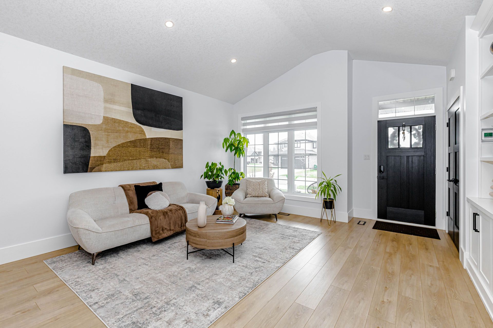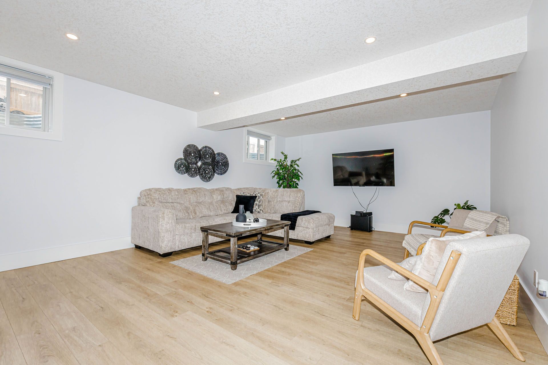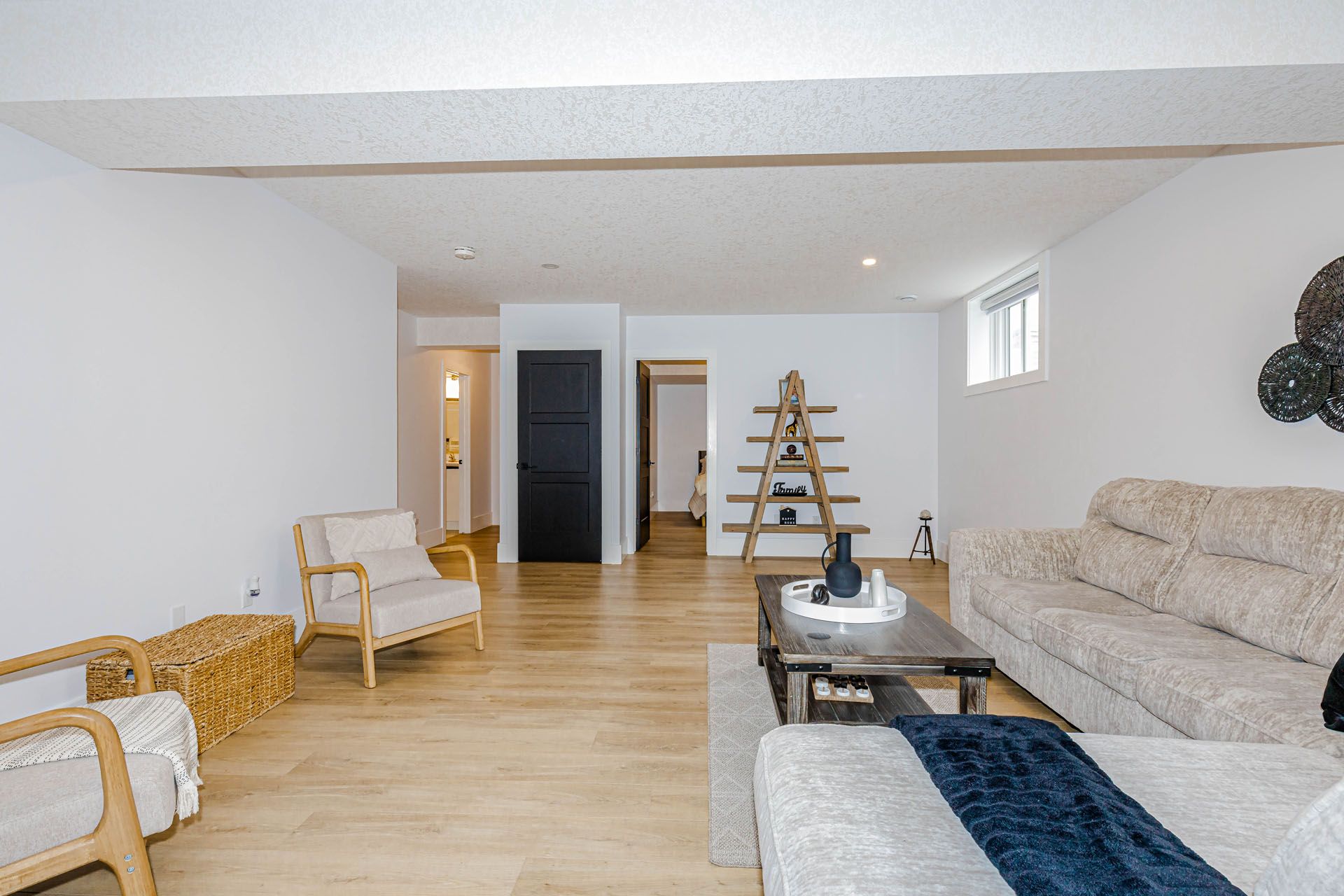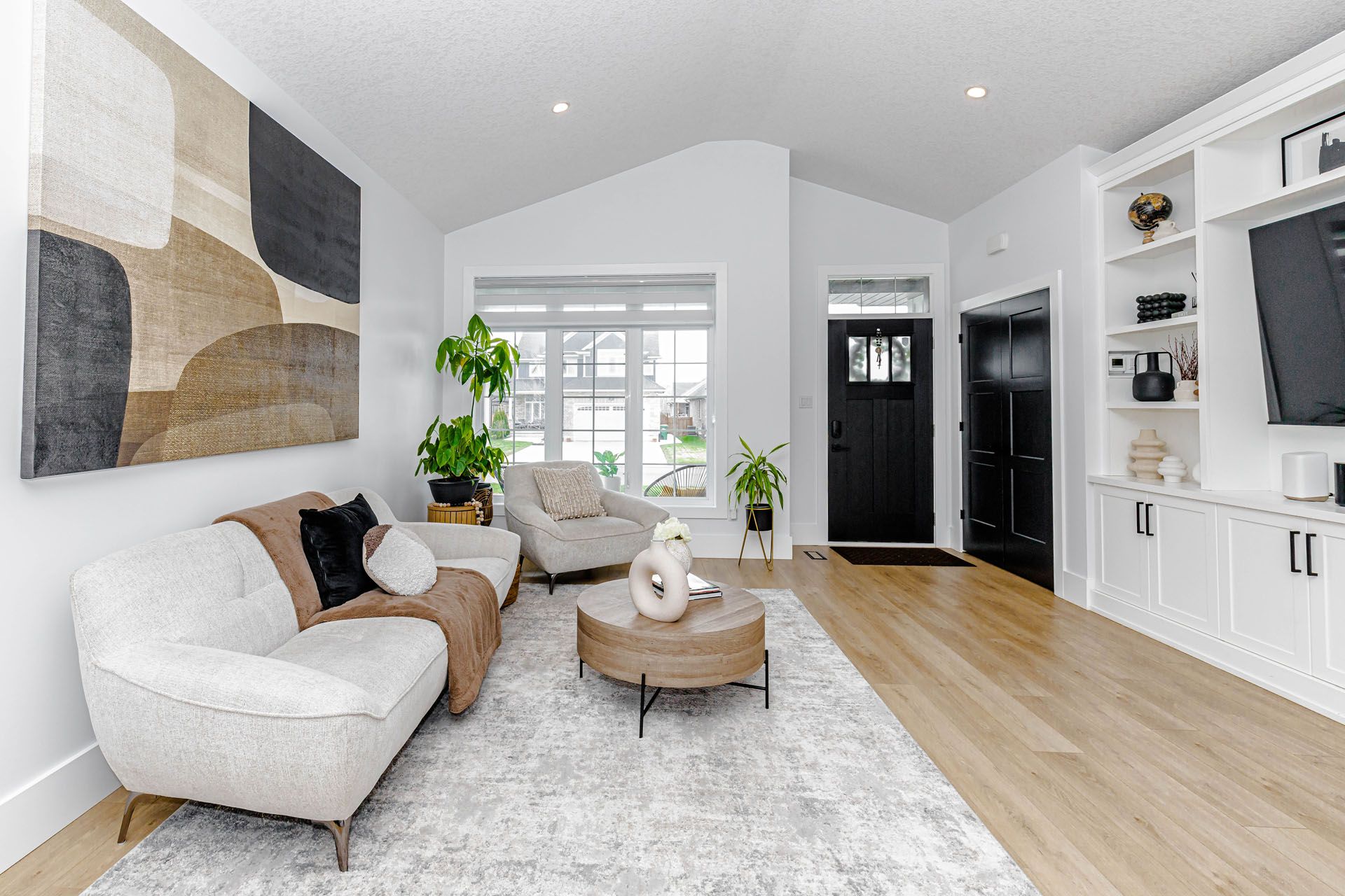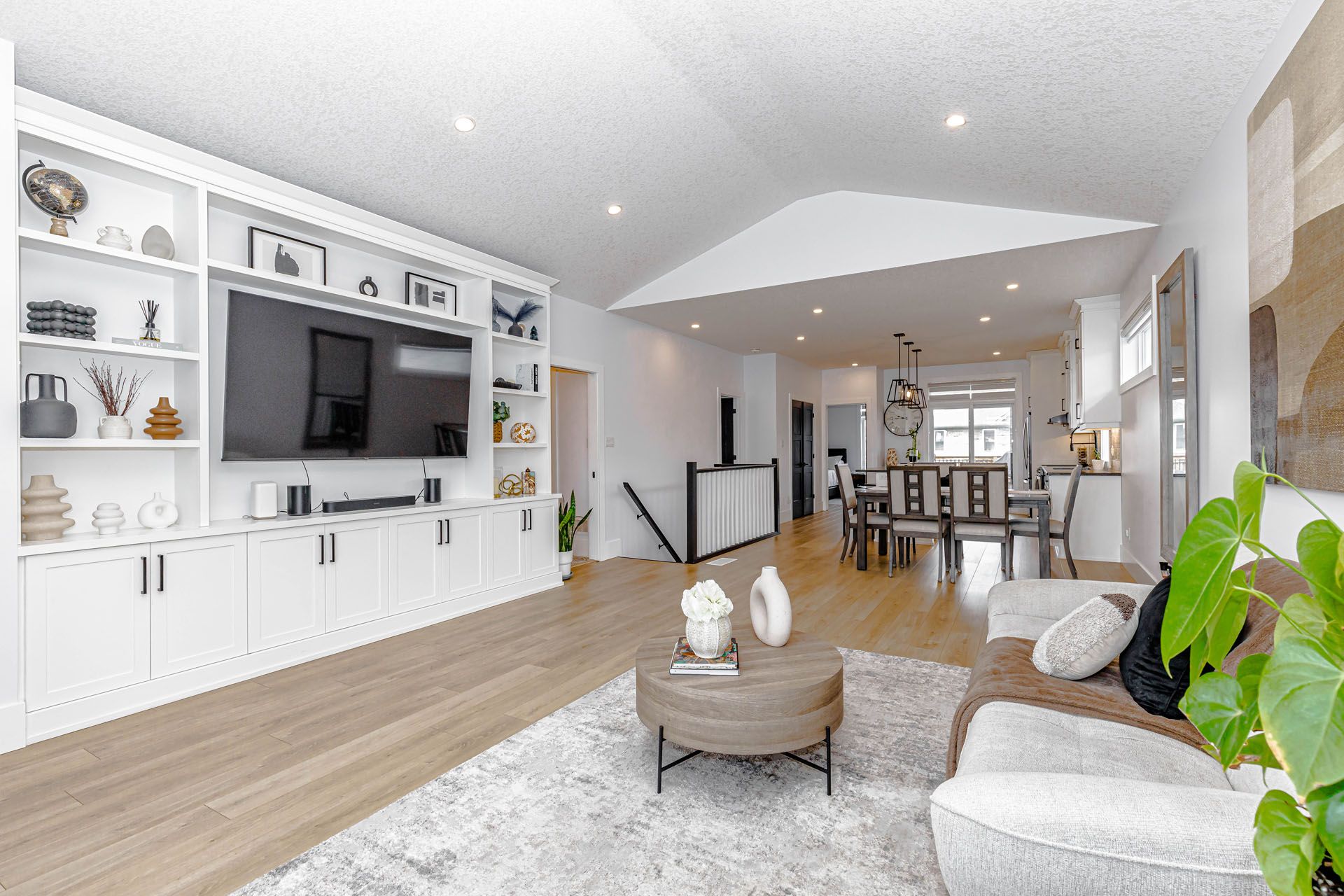 Discover the perfect blend of style, comfort, and convenience in this beautifully maintained 5-year-old bungalow, located in a rapidly growing neighbourhood. From the moment you arrive, the concrete driveway and elegant stained wood front door set the tone for the modern design found throughout. Step inside to a bright, open-concept layout featuring carpet free floors that flow seamlessly from the living room into the kitchen and entire house. The living space is filled with natural light from transom windows and enhanced with built-in cabinetry, creating a warm and inviting atmosphere. The upgraded kitchen is a true highlight, offering a spacious pantry, upgraded countertops, and a sleek microwave drawer-perfect for everyday living and entertaining. This home features a functional 2+2 bedroom layout with 4 generously sized bedrooms, including two with walk-in closets. The primary suite offers a private retreat complete with a stylish 4-piece ensuite and tiled walk-in shower. Two additional bathrooms provide comfort and convenience for family and guests. The lower level includes a spacious rec room along with unfinished space, offering endless potential for customization. Added features such as a heat recovery ventilation system and tankless hot water heater provide energy efficiency and year-round comfort. Step outside to a large deck through patio doors off the kitchen, overlooking a fully fenced backyard with a storage shed. Whether relaxing under the covered deck or entertaining in the open space, this backyard is perfect for any occasion. This home truly combines modern finishes, functional design, and a welcoming atmosphere-ready for you to move in and enjoy.