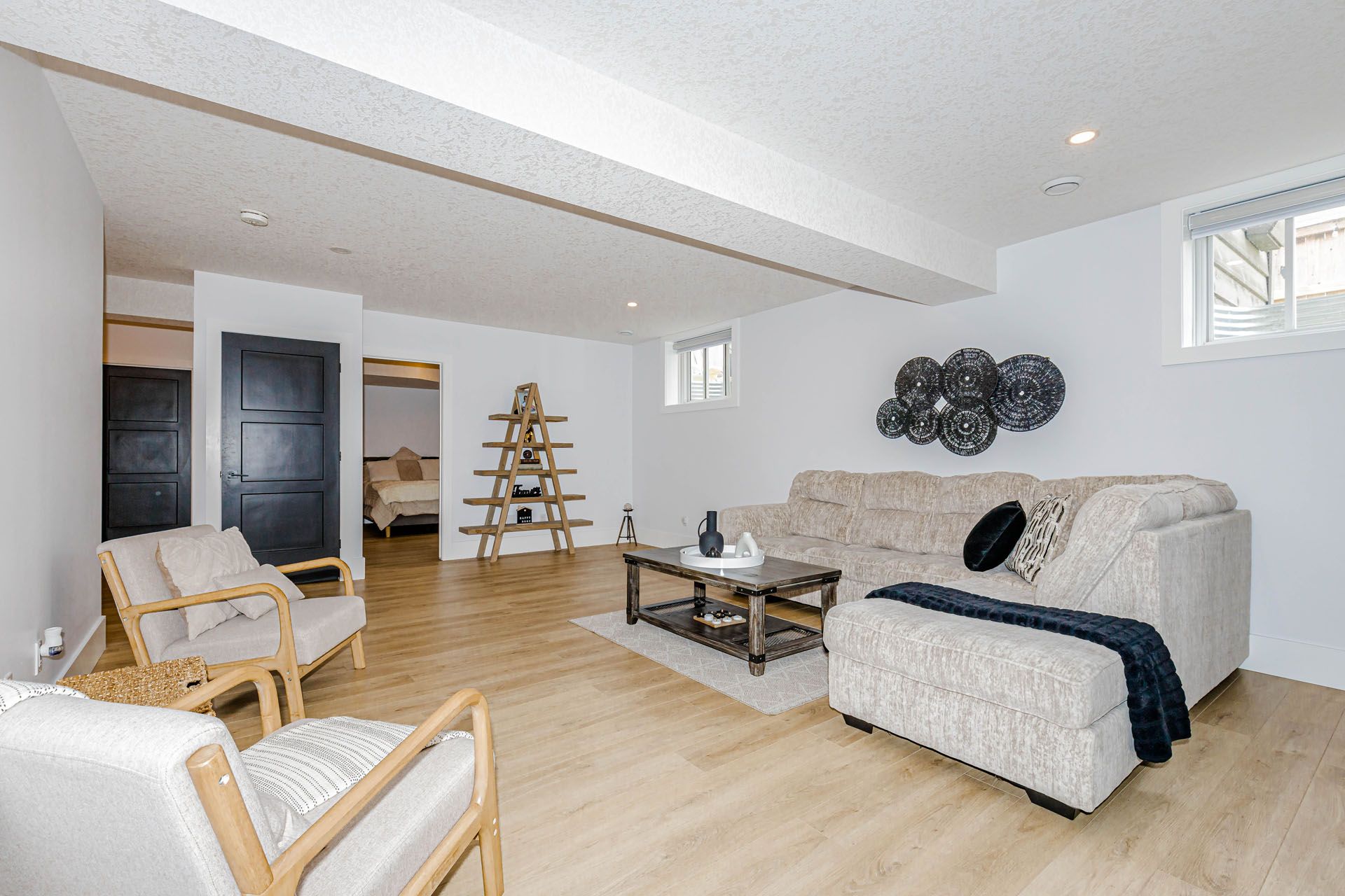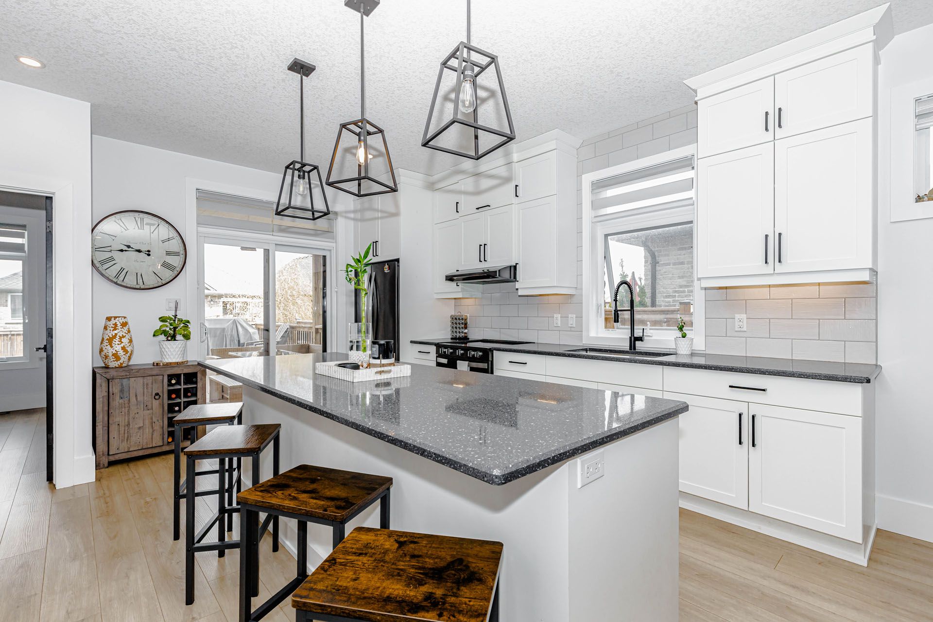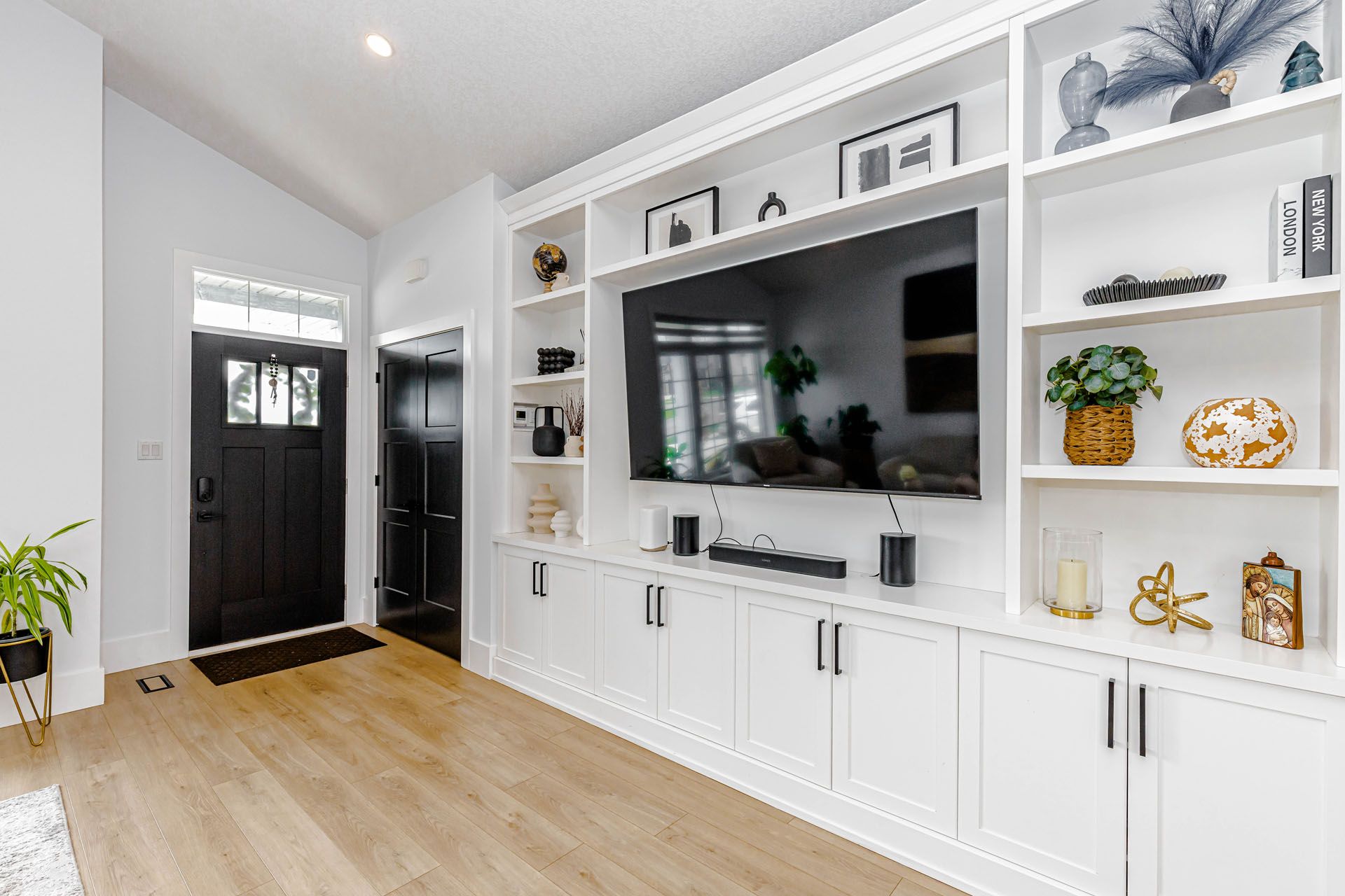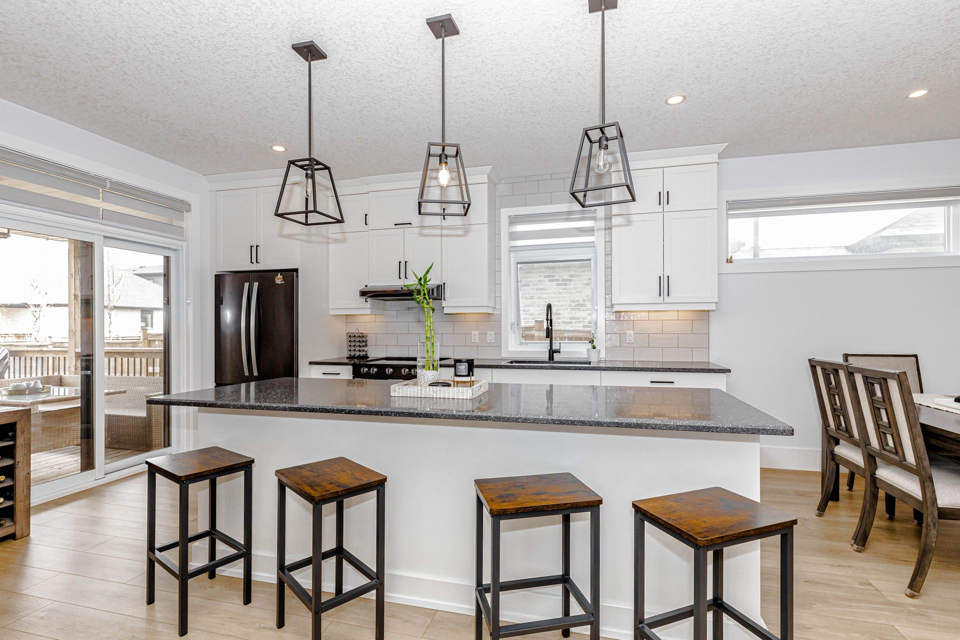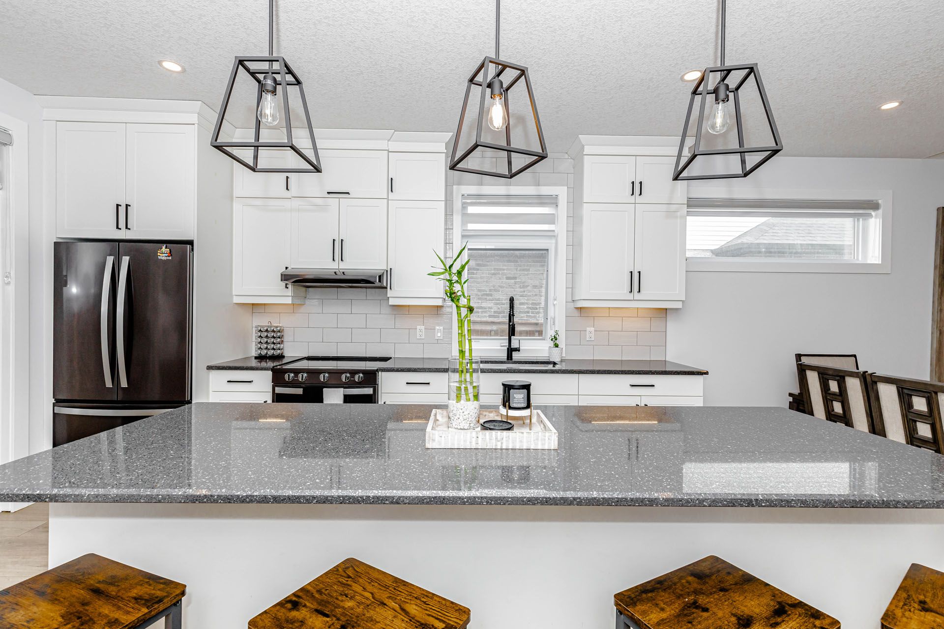 Discover the perfect blend of style, comfort, and convenience in this beautifully maintained 5-year-old bungalow, located in a rapidly growing neighbourhood. From the moment you arrive, the concrete driveway and elegant stained wood front door set the tone for the modern design found throughout. Step inside to a bright, open-concept layout featuring carpet free floors that flow seamlessly from the living room into the kitchen and entire house. The living space is filled with natural light from transom windows and enhanced with built-in cabinetry, creating a warm and inviting atmosphere. The upgraded kitchen is a true highlight, offering a spacious pantry, upgraded countertops, and a sleek microwave drawer-perfect for everyday living and entertaining. This home features a functional 2+2 bedroom layout with 4 generously sized bedrooms, including two with walk-in closets. The primary suite offers a private retreat complete with a stylish 4-piece ensuite and tiled walk-in shower. Two additional bathrooms provide comfort and convenience for family and guests. The lower level includes a spacious rec room along with unfinished space, offering endless potential for customization. Added features such as a heat recovery ventilation system and tankless hot water heater provide energy efficiency and year-round comfort. Step outside to a large deck through patio doors off the kitchen, overlooking a fully fenced backyard with a storage shed. Whether relaxing under the covered deck or entertaining in the open space, this backyard is perfect for any occasion. This home truly combines modern finishes, functional design, and a welcoming atmosphere-ready for you to move in and enjoy.
