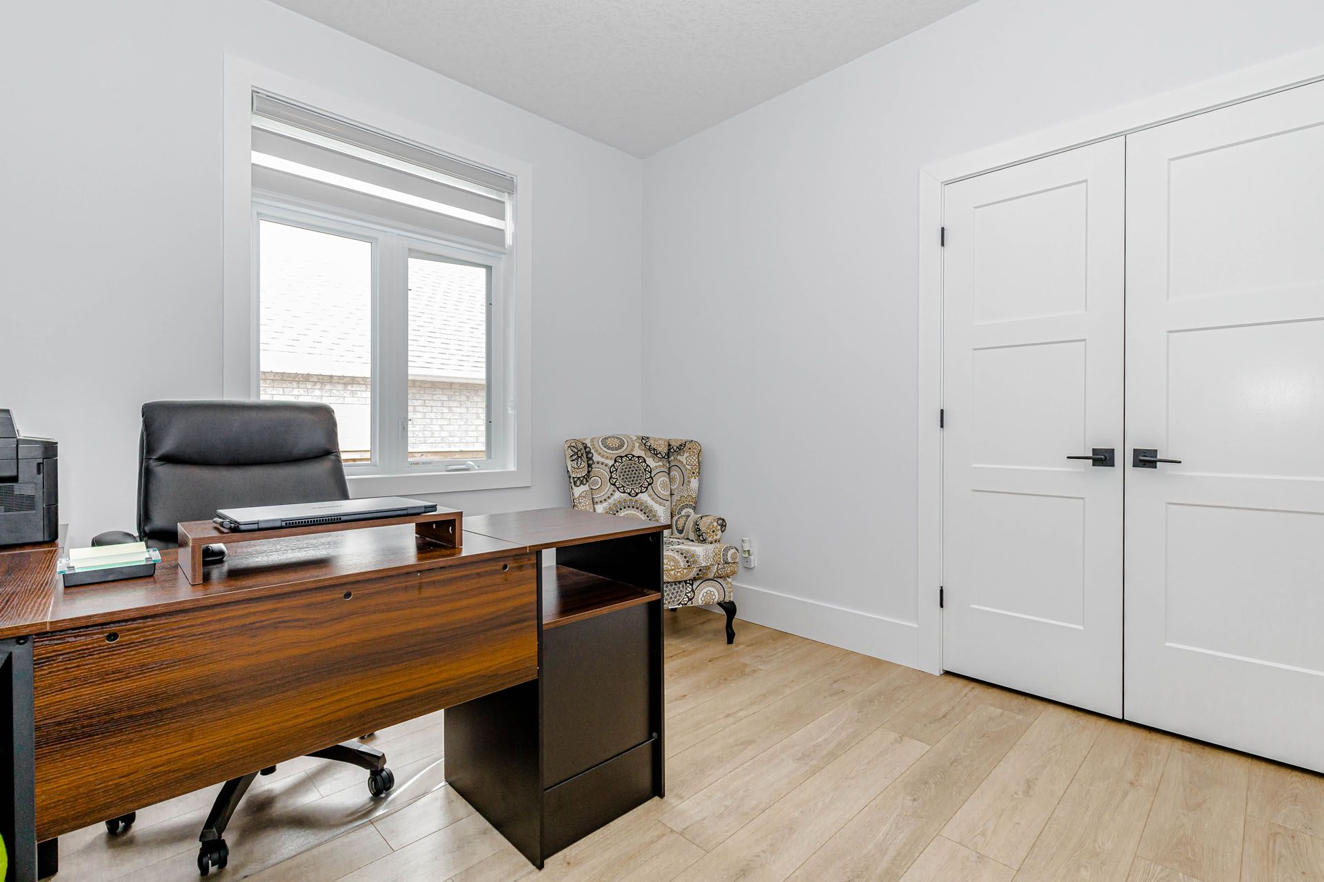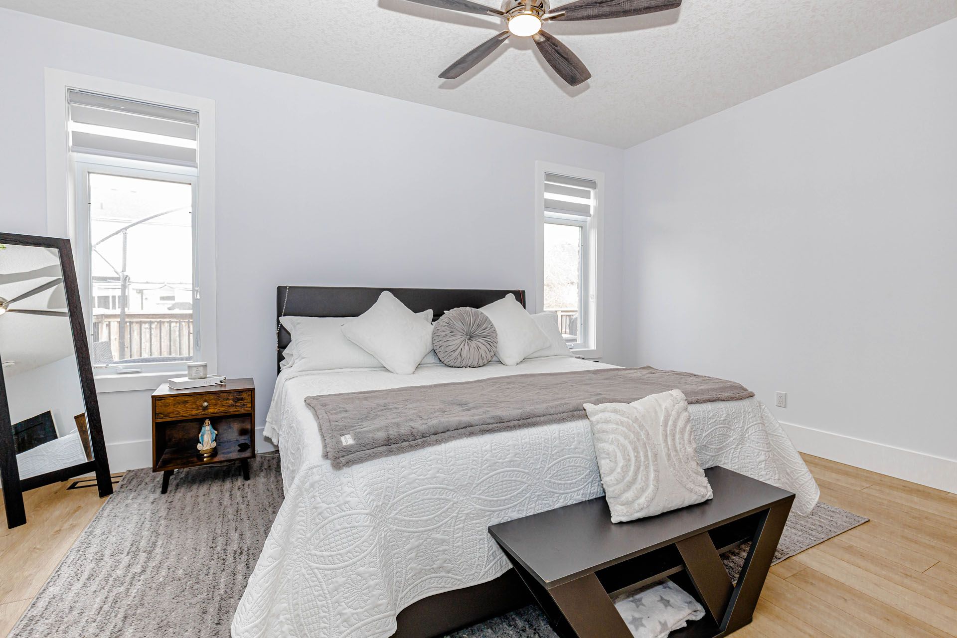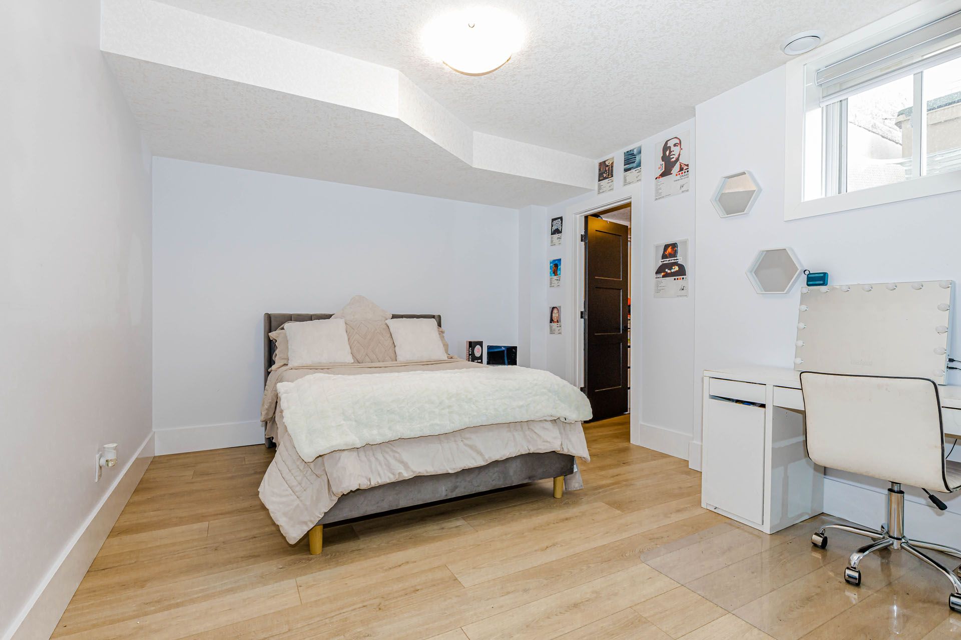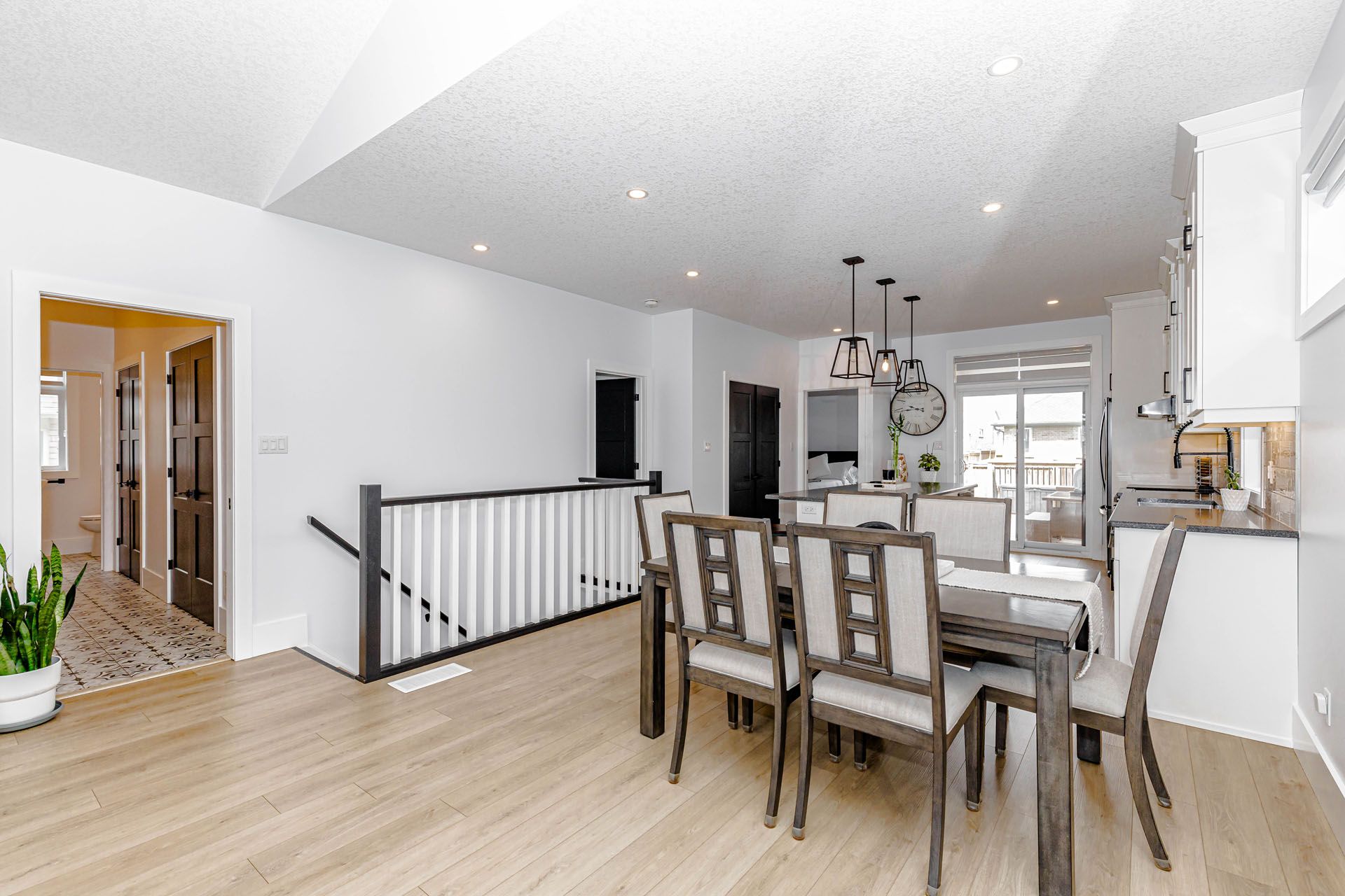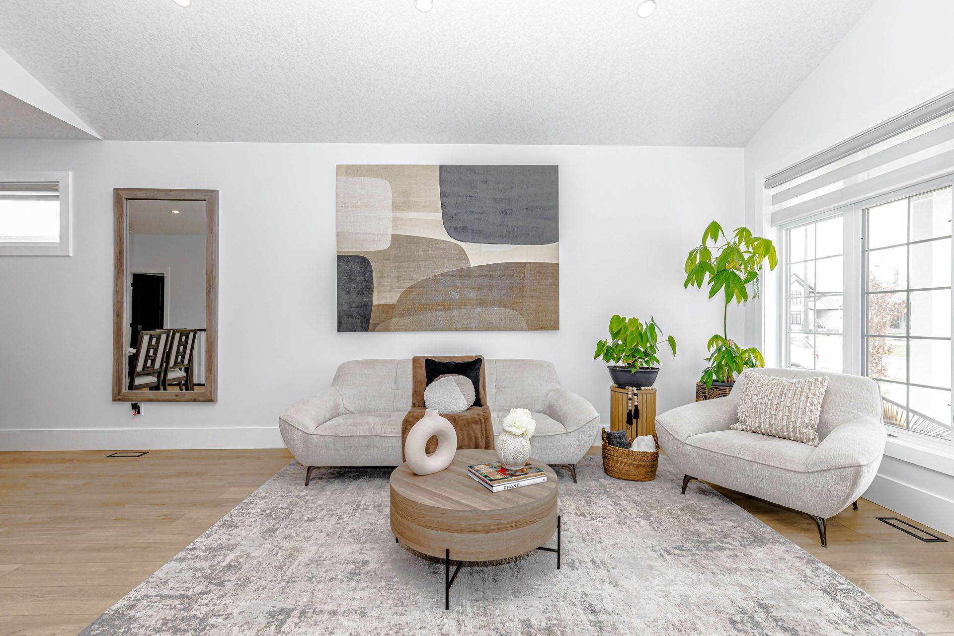 Discover the perfect blend of style, comfort, and convenience in this beautifully maintained 5-year-old bungalow, located in a rapidly growing neighbourhood. From the moment you arrive, the concrete driveway and elegant stained wood front door set the tone for the modern design found throughout. Step inside to a bright, open-concept layout featuring carpet free floors that flow seamlessly from the living room into the kitchen and entire house. The living space is filled with natural light from transom windows and enhanced with built-in cabinetry, creating a warm and inviting atmosphere. The upgraded kitchen is a true highlight, offering a spacious pantry, upgraded countertops, and a sleek microwave drawer-perfect for everyday living and entertaining. This home features a functional 2+2 bedroom layout with 4 generously sized bedrooms, including two with walk-in closets. The primary suite offers a private retreat complete with a stylish 4-piece ensuite and tiled walk-in shower. Two additional bathrooms provide comfort and convenience for family and guests. The lower level includes a spacious rec room along with unfinished space, offering endless potential for customization. Added features such as a heat recovery ventilation system and tankless hot water heater provide energy efficiency and year-round comfort. Step outside to a large deck through patio doors off the kitchen, overlooking a fully fenced backyard with a storage shed. Whether relaxing under the covered deck or entertaining in the open space, this backyard is perfect for any occasion. This home truly combines modern finishes, functional design, and a welcoming atmosphere-ready for you to move in and enjoy.