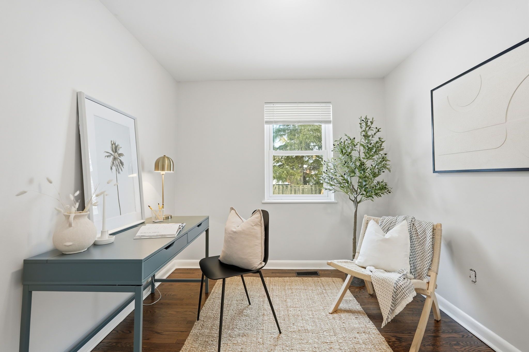 • Original hardwood floors and beautiful ceiling details add warmth.