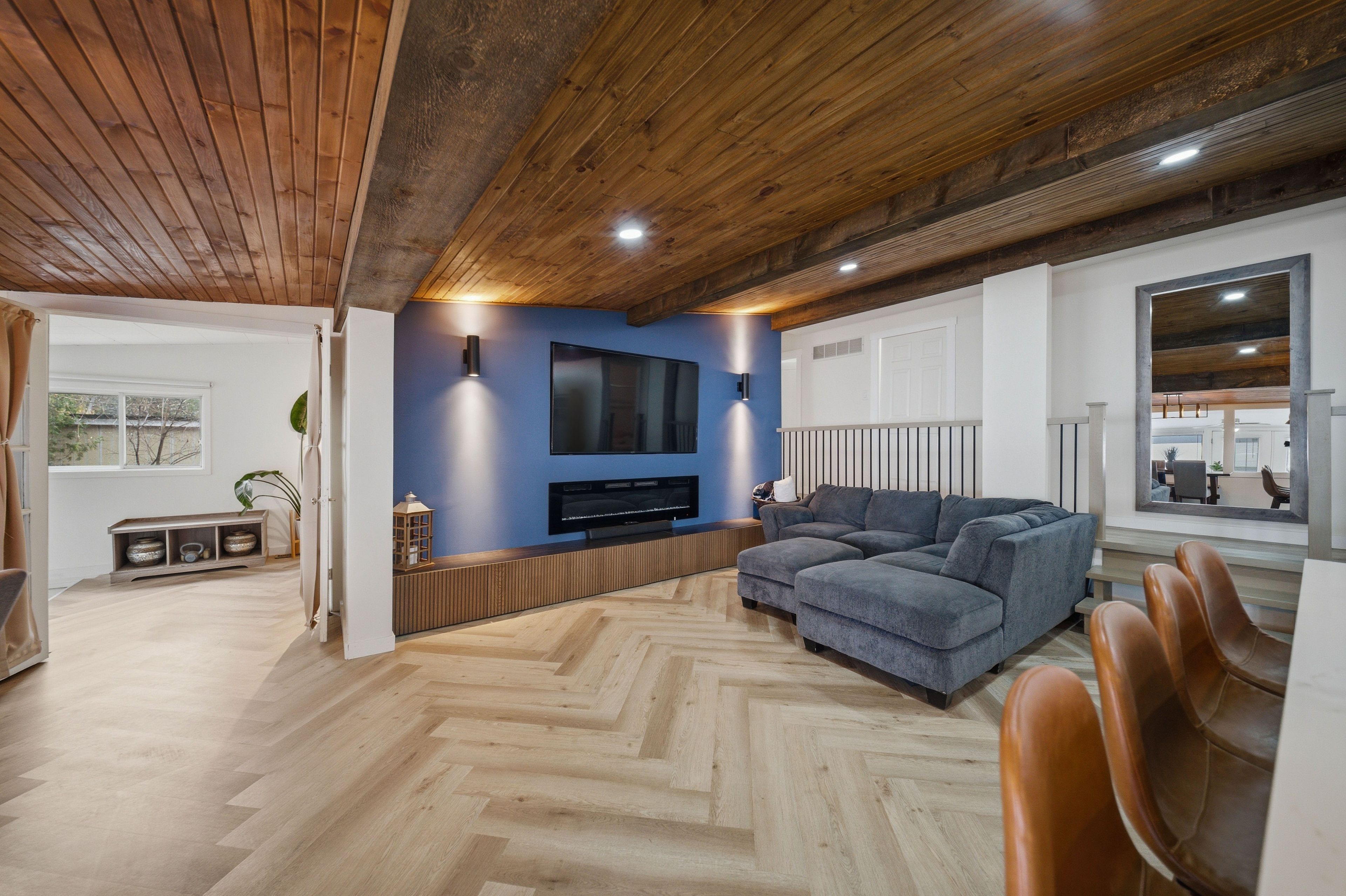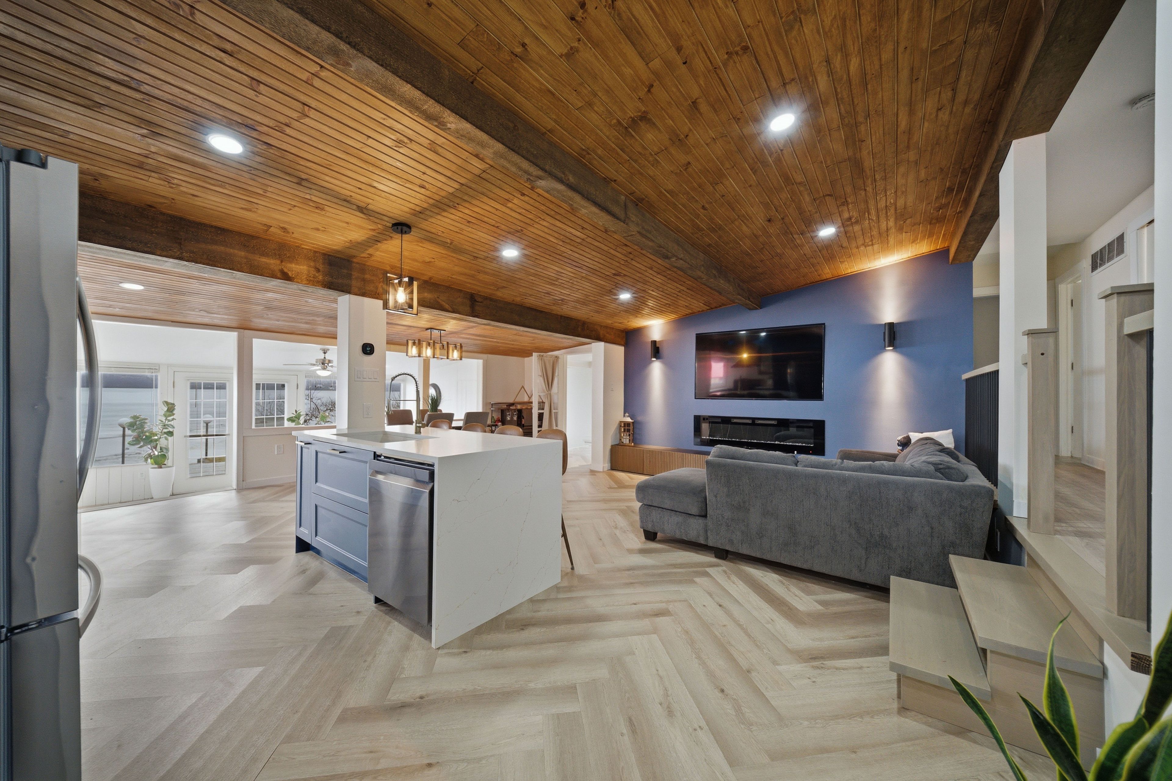 Welcome to 15 neely street, a rare waterfront bungalow fully renovated from top to bottom with standout upgrades and features not commonly found. Set along the water with stunning views, this property includes a professionally built retaining wall, making it one of the few insurable homes for flood protection in the area. Inside, a bright open concept main level awaits where modern design meets comfort. The redesigned layout features new flooring, a beautiful kitchen with 2025 appliances, sleek cabinetry, a spacious island, and an electric fireplace flowing into the living and dining areas, all framed by large windows overlooking the water. Warm wood ceilings add character and elevate the space. The main level offers 3 bedrooms including a newly added room, along with a fully updated bathroom completed in 2025. Major system upgrades include all new water and drain lines, a new water softener, and a new hot water tank installed in 2025. The lower level provides additional living space, a second full bathroom, and flexible use options for guests, work, or recreation. Extensive structural improvements include a lifted foundation, updated roof and trusses, and a reinforced cement foundation strip, providing long term stability and peace of mind. Outside, enjoy a private setting with a new shed built in 2025 featuring a sauna. The lot offers direct access to the shoreline, perfect for swimming, boating, or relaxing by the water. Located within the kanata school board and just a short drive to the city, this property offers a rare combination of waterfront living, modern upgrades, and long term value.