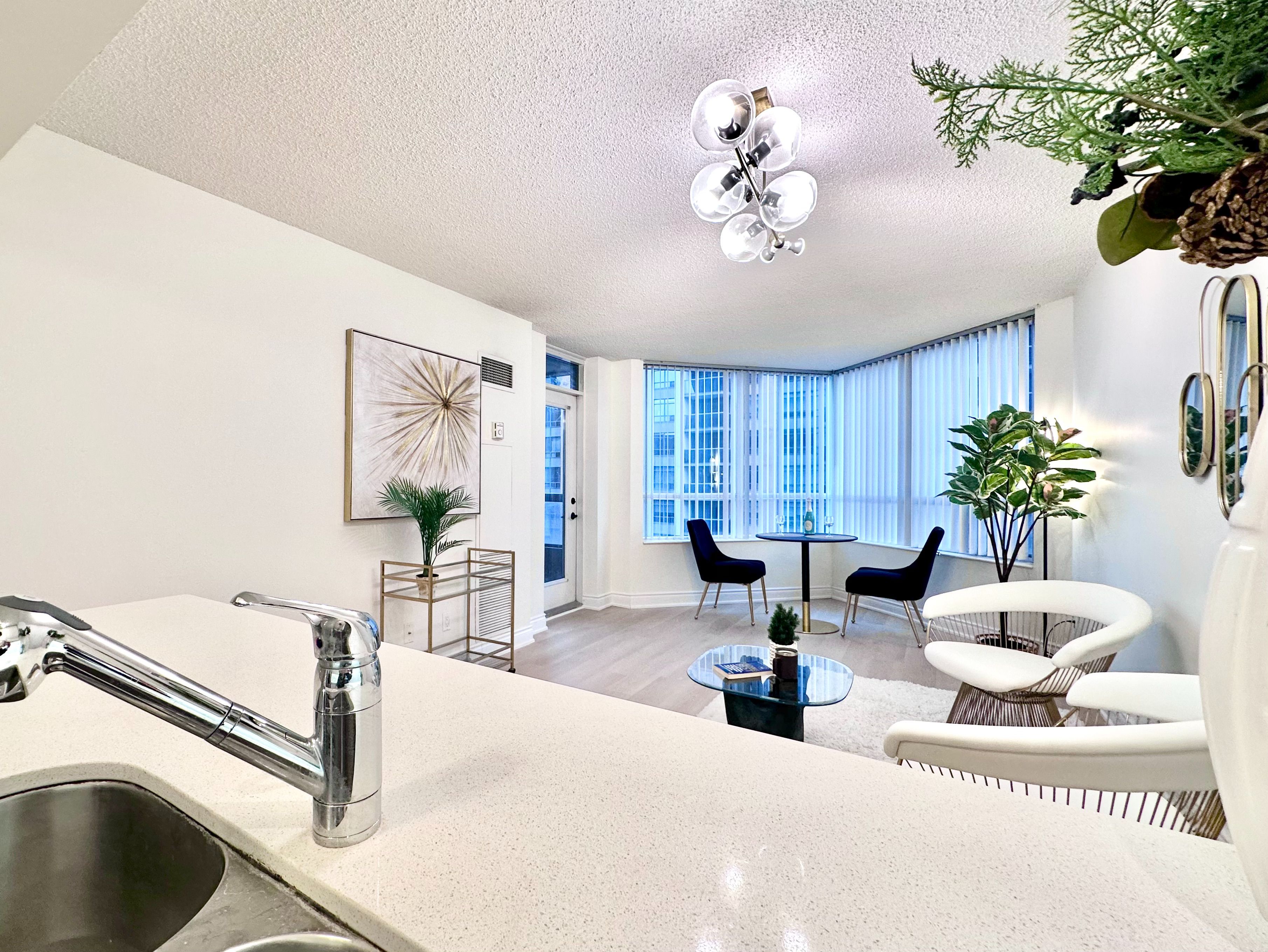 Tridel-built luxury condominium offering an exceptional range of amenities, including a rooftop tennis court, bowling alley, indoor swimming pool, and a fully equipped fitness room. Direct underground access to metro grocery provides unmatched everyday convenience. Ideally situated just off yonge street, with an excellent selection of restaurants, cafes, and services nearby. Walking distance to ttc subway, viva and go transit, offering easy access to downtown toronto and the gta. Convenient access to hwy 401 for drivers. This spacious and bright 1+den suite features a highly functional layout with a separate, livable den and a dedicated dining area by large double windows. Recent updates include brand new luxury vinyl flooring throughout, a larger lg front-loading stacked washer and dryer (2025). Stainless steel over-the-range microwave with higher cfm exhaust fan (2022), updated light fixtures, quartz kitchen countertops with breakfast bar, and an updated bathroom vanity quartz top. All basic utilities are included in the maintenance fees, providing excellent value and predictable monthly costs. Includes one owned underground parking space. One underground bicycle storage spot currently reserved with building management. Well maintained and move-in ready. A great opportunity in a sought-after tridel building.