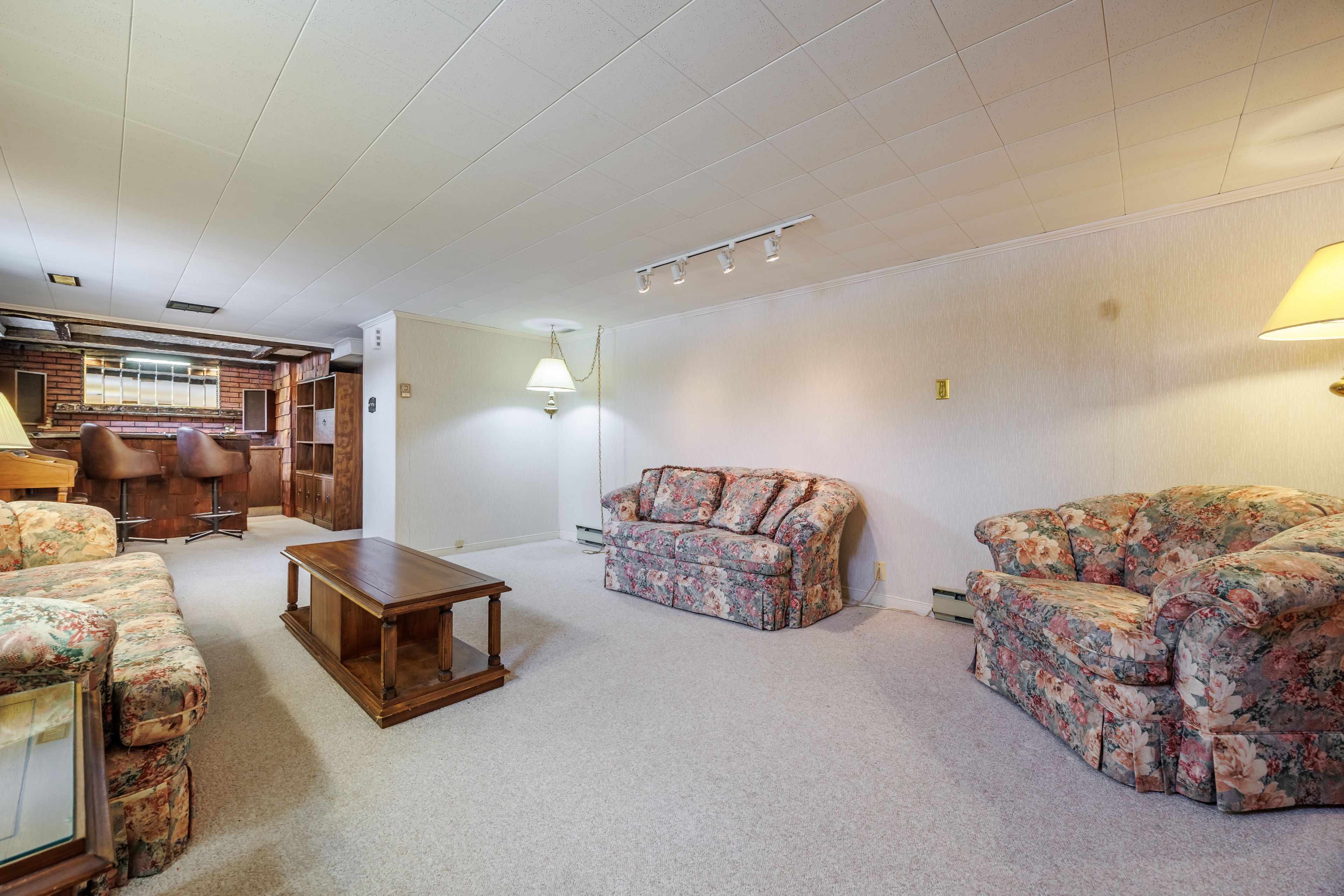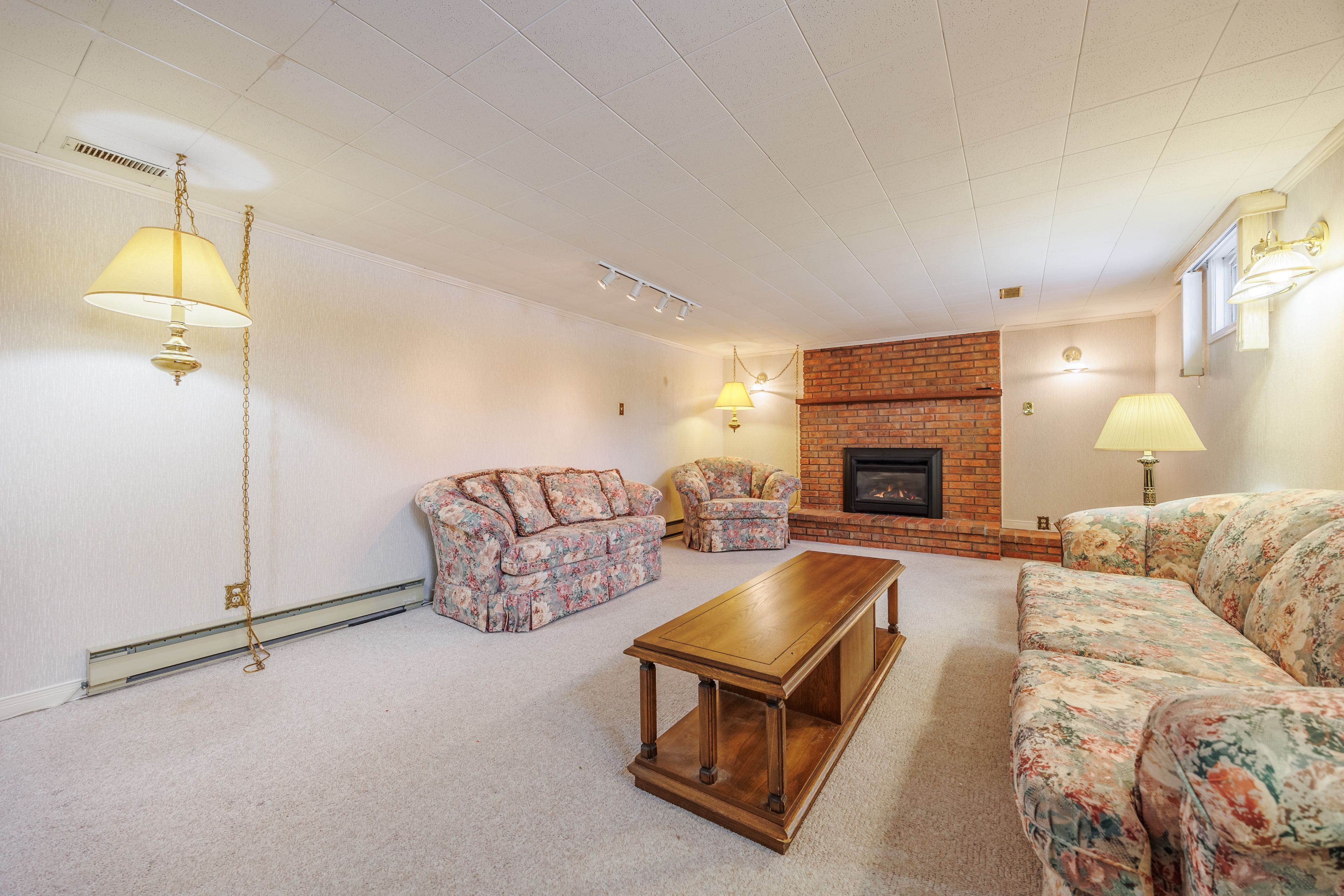 • Partially finished lower level with a cozy gas fireplace and wet bar.